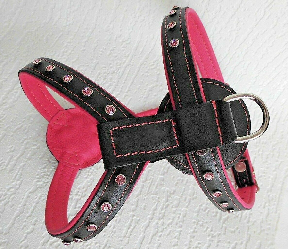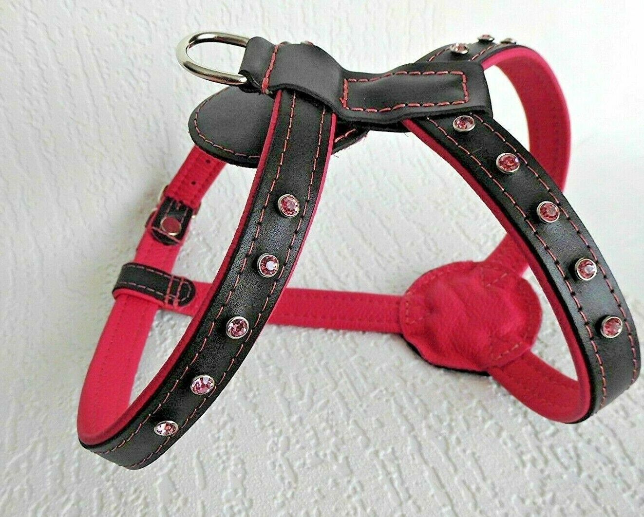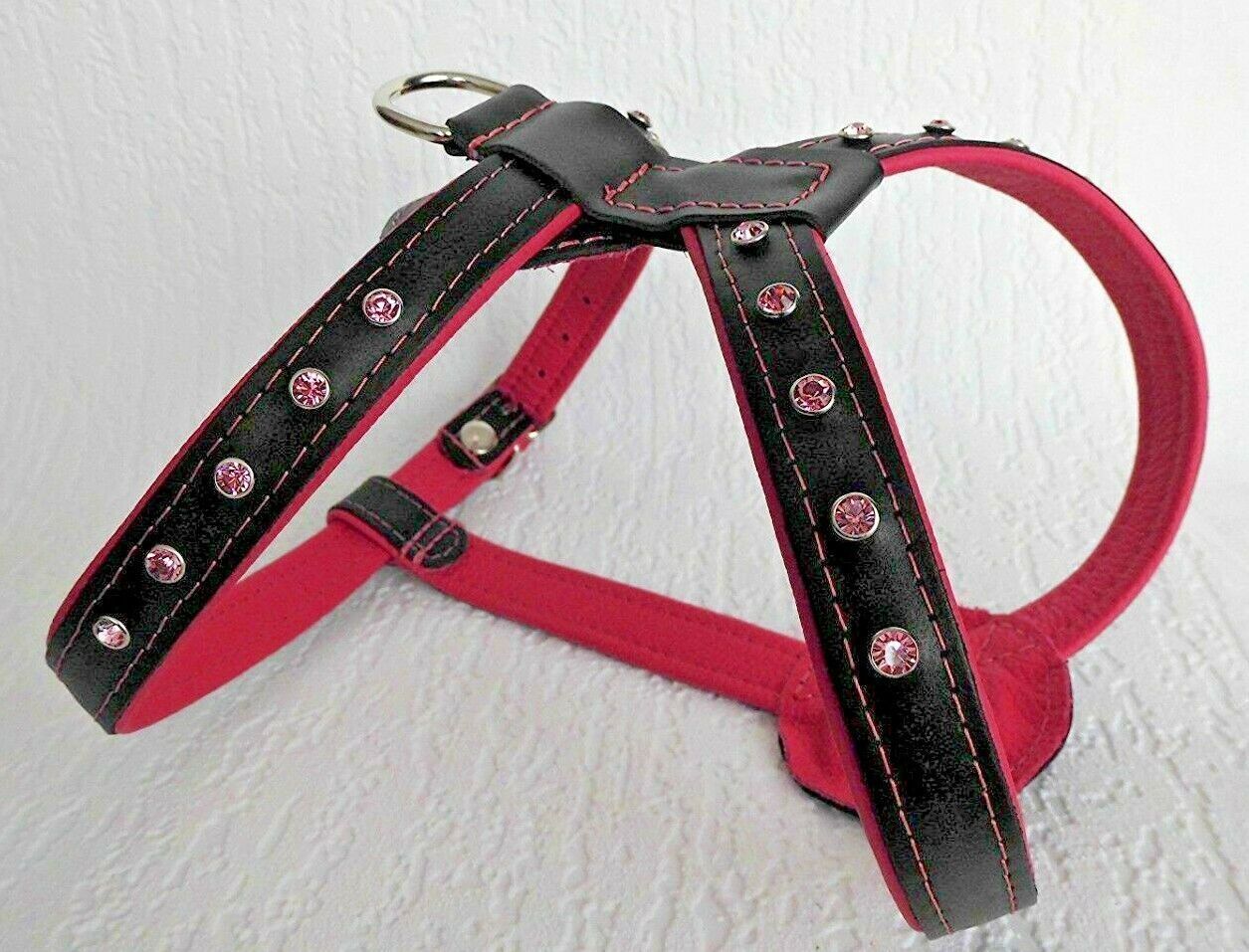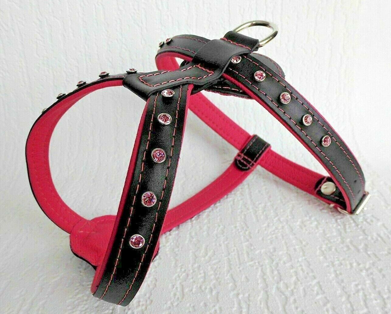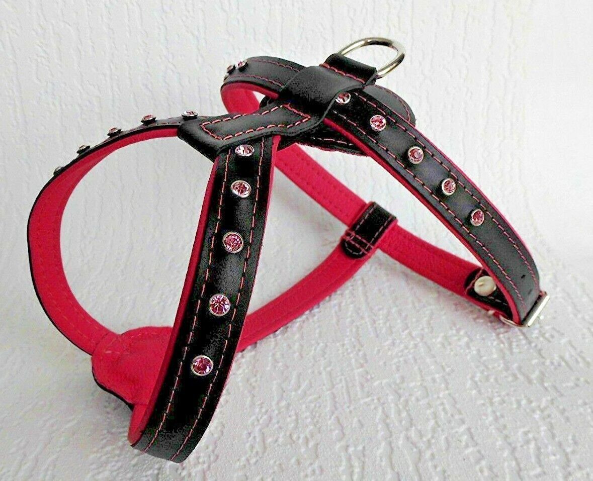Hundegeschirr - Geschirr, Brustkorb 41-48cm Kristallen Leder + Pink (1-07-1203)