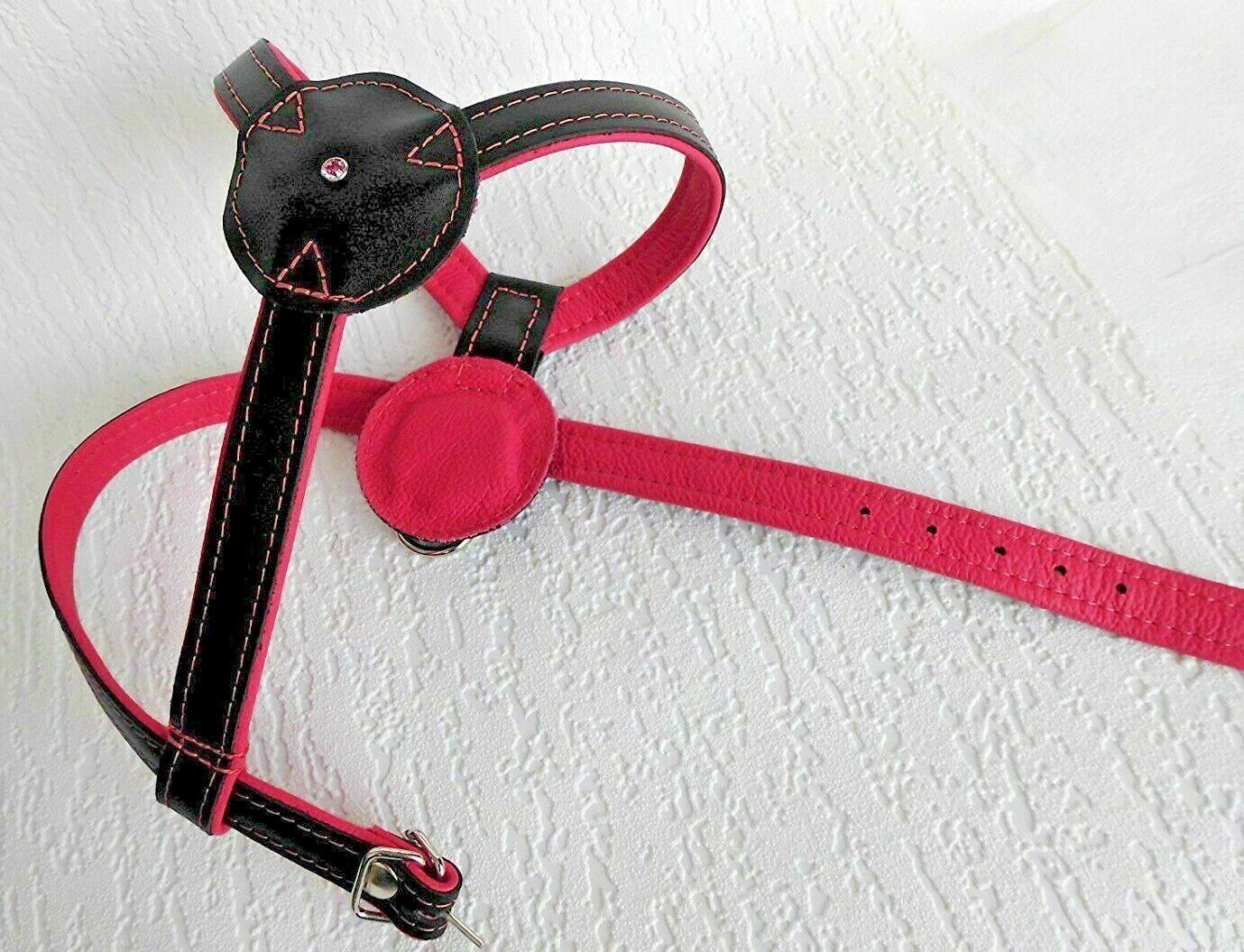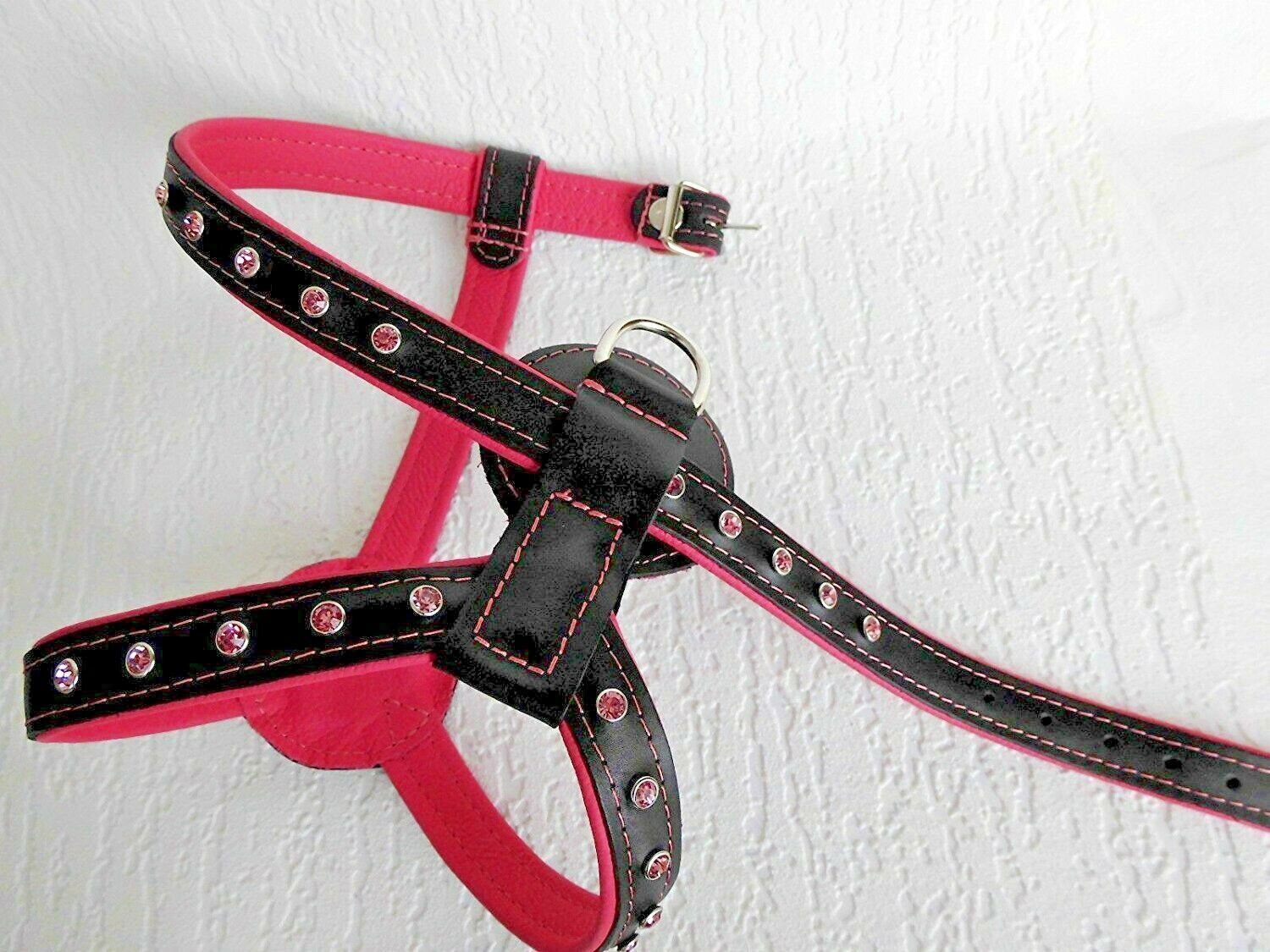 Hunde Leder Geschirr mit Kristallen Brustumfang 41 - 48 cm *** PINK *** Maße: Gesamtlänge 53 cm Brustumfang 41 - 48 cm (erste und letzte Loch) Bitte messen Sie den Brustumfang (NICHT BAUCHUMFANG) - gleich hinten Vorderpfoten - Ihres Hundes vor dem Kauf . Wenn Hund sitzt muss man ca 1-2 cm dazu rechn