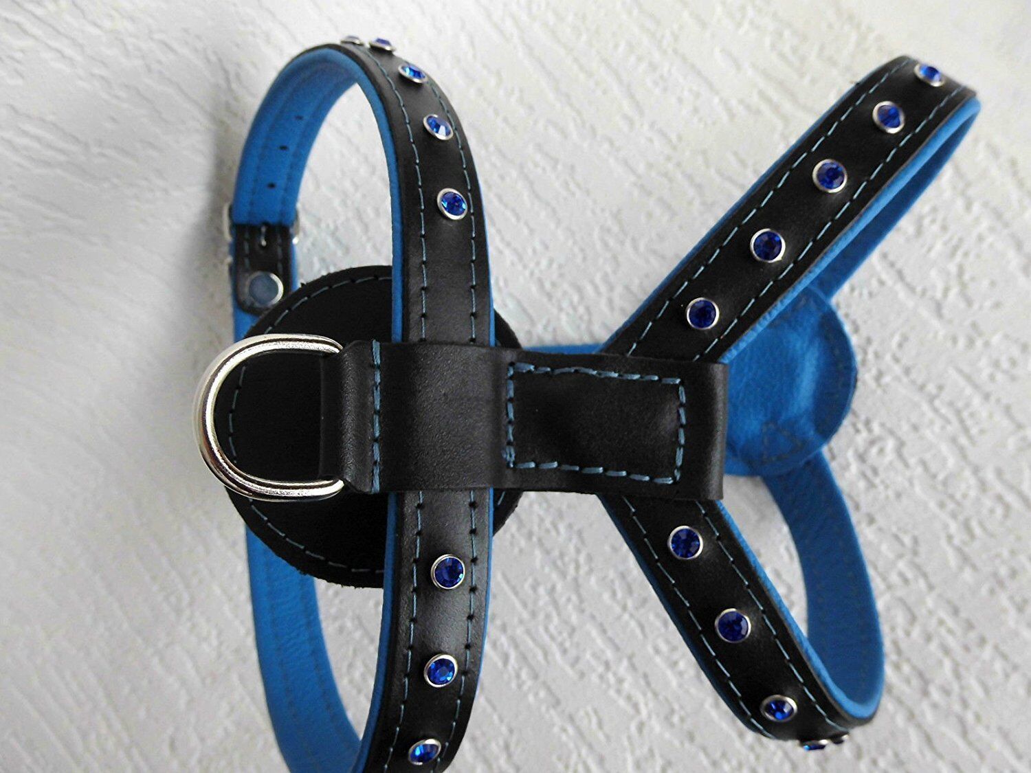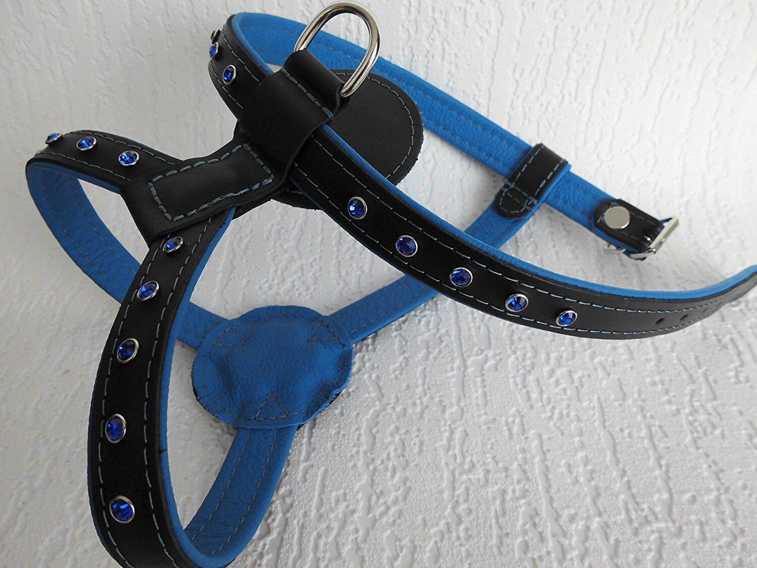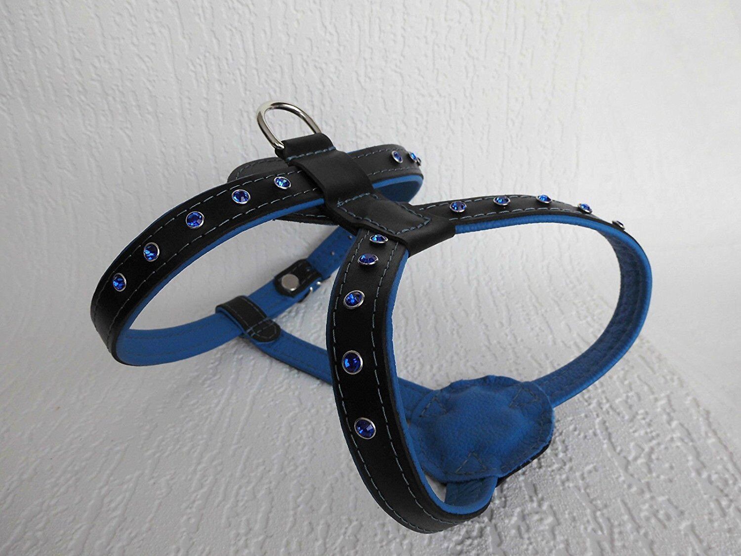 Hundegeschirr - Geschirr, Brustkorb 68-77 cm Kristallen Leder + BLAU (5-03-21-48)