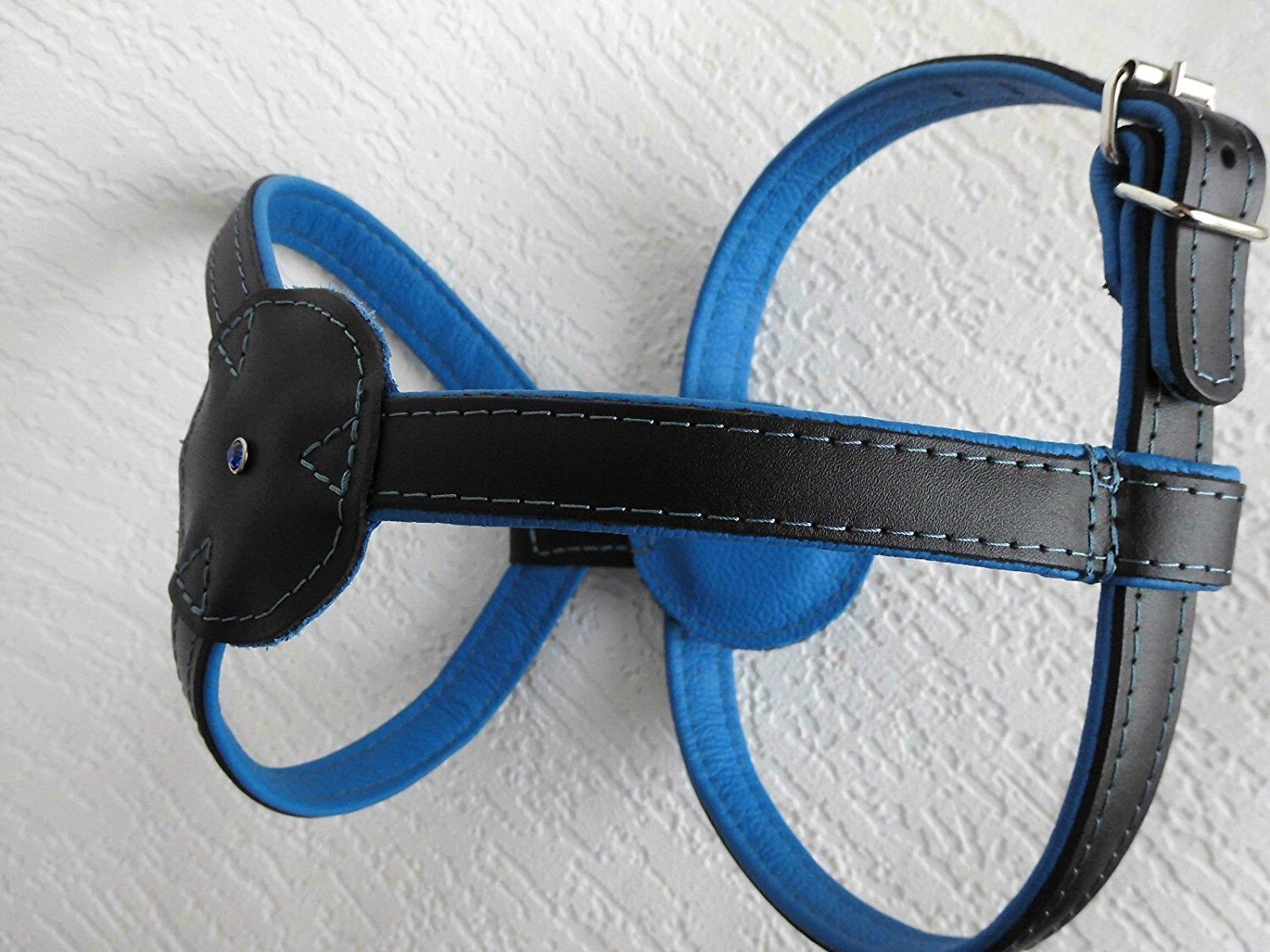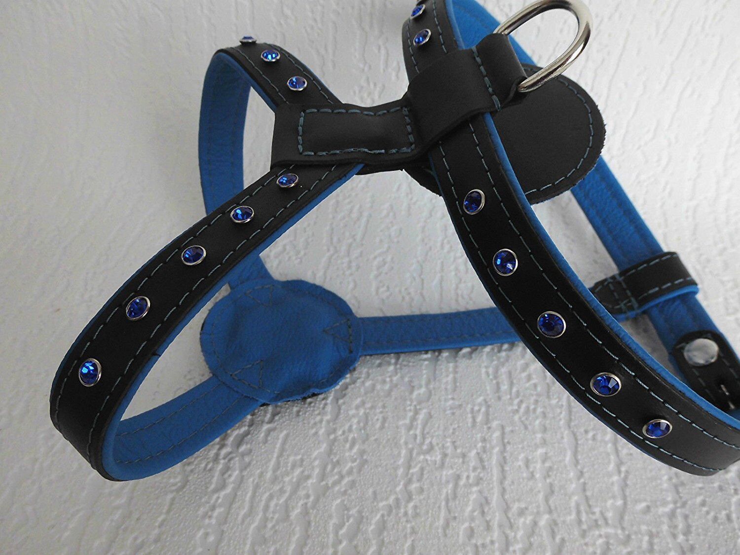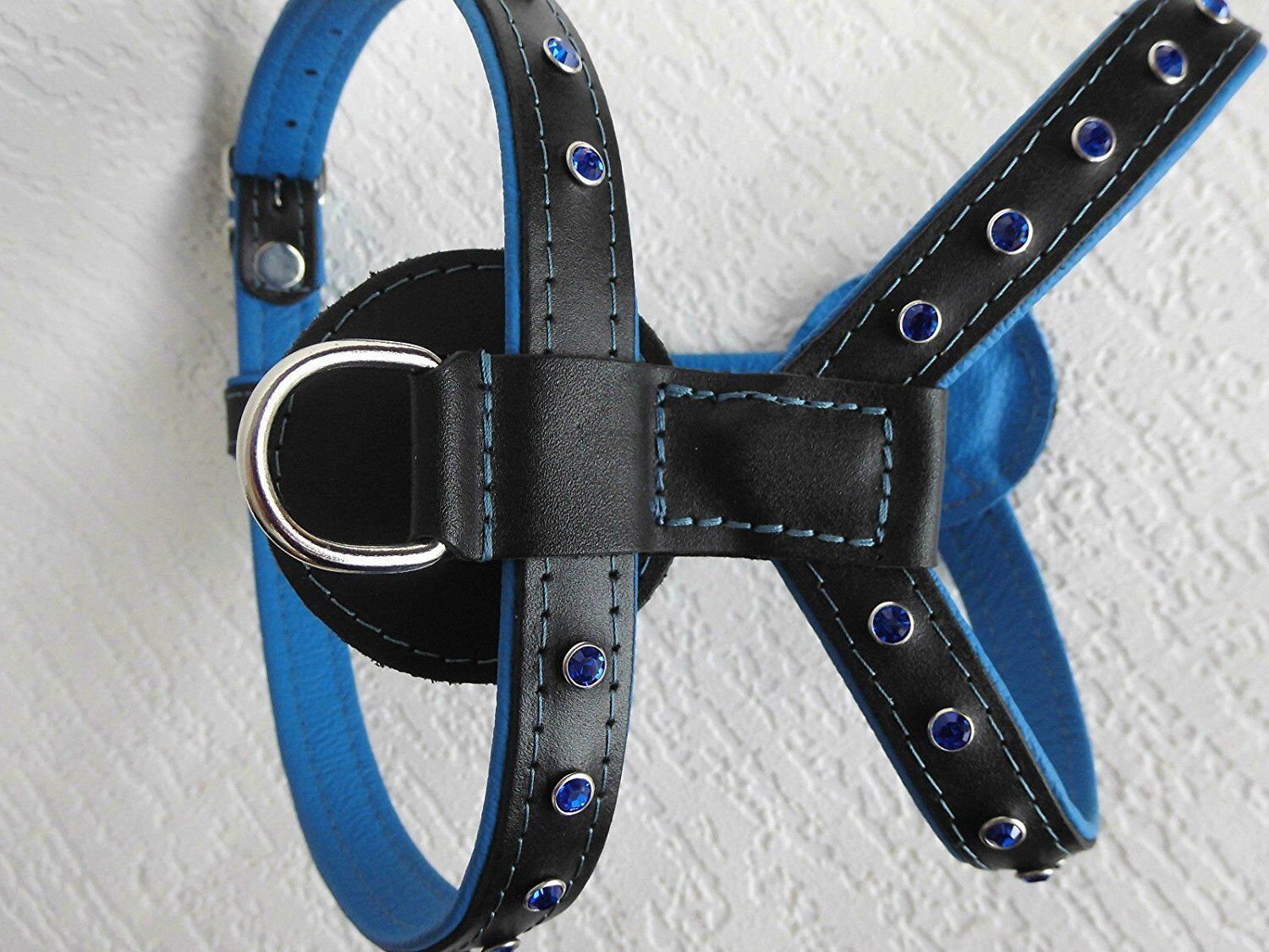 Hundegeschirr - Geschirr, Brustkorb 68-77 cm Kristallen Leder + BLAU (5-03-21-48)