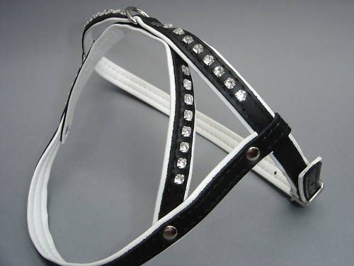 Hundegeschirr - Geschirr, Strass + Leder, Brustkorb 33-41cm; Neu Schwarz-Weiß