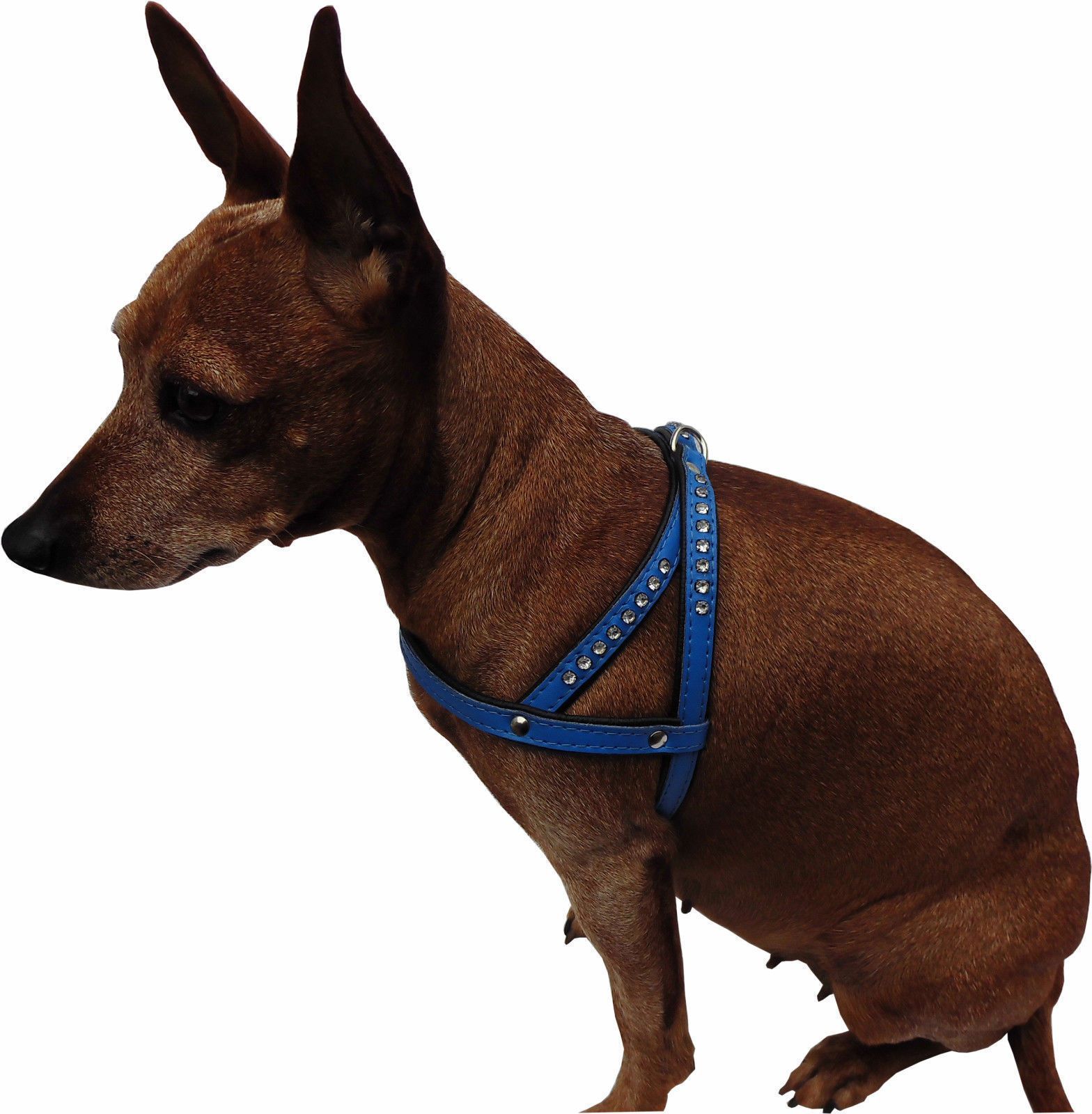 Hunde Leder Geschirr mit Strass-Steinen Brustkorb 33 - 41 cm Maße: Gesamtlänge 45 cm Brustumfang 33 - 41 cm Die Ledergürtel haben Breit von 1,4 cm. Bitte messen Sie den Brustumfang(Brustkorb) Ihres Hundes vor dem Kauf - gleich hinten Vorderpfoten und wenn der Hund sitzt muss man ca 1-2 cm dazu rechn