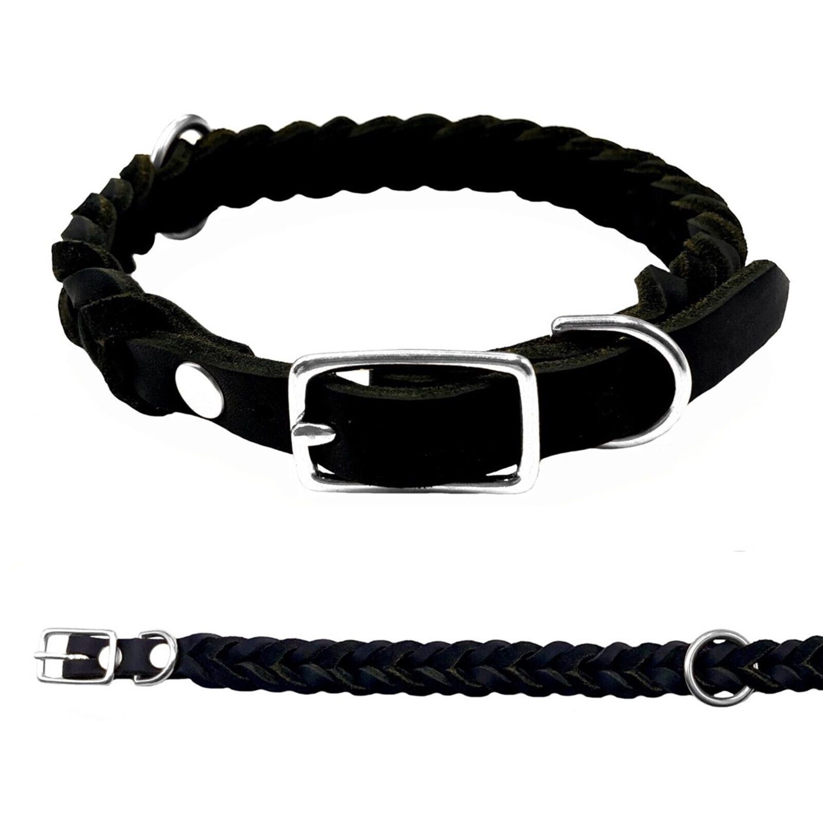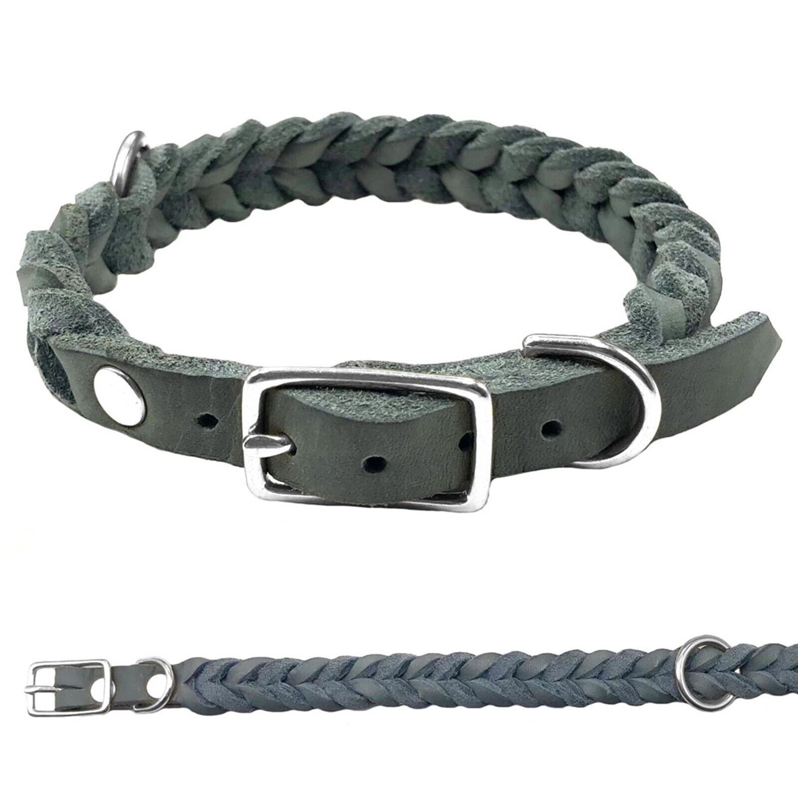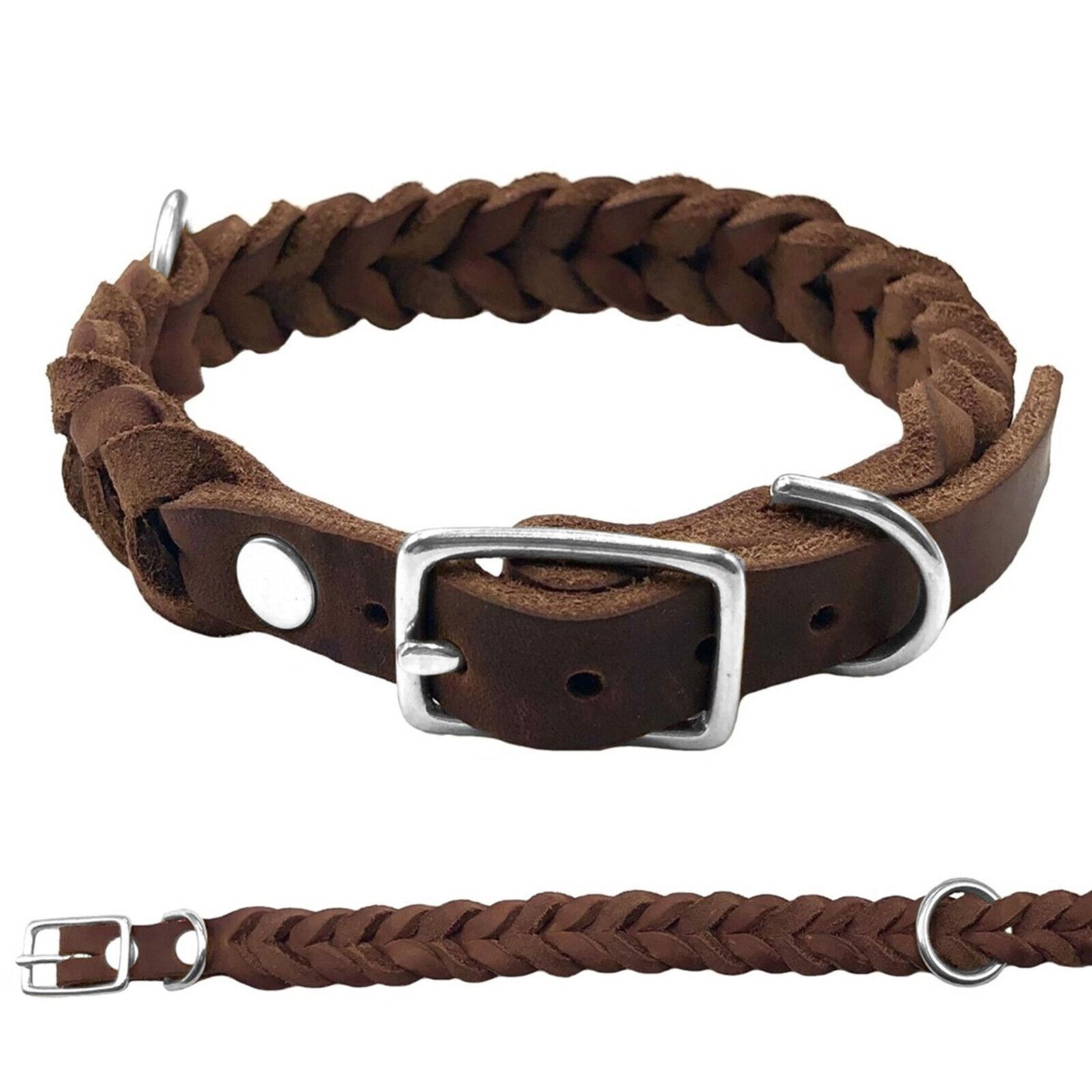Hundehalsband Fettleder kleine Hunde / große Hunde verstellbar handgeflochten