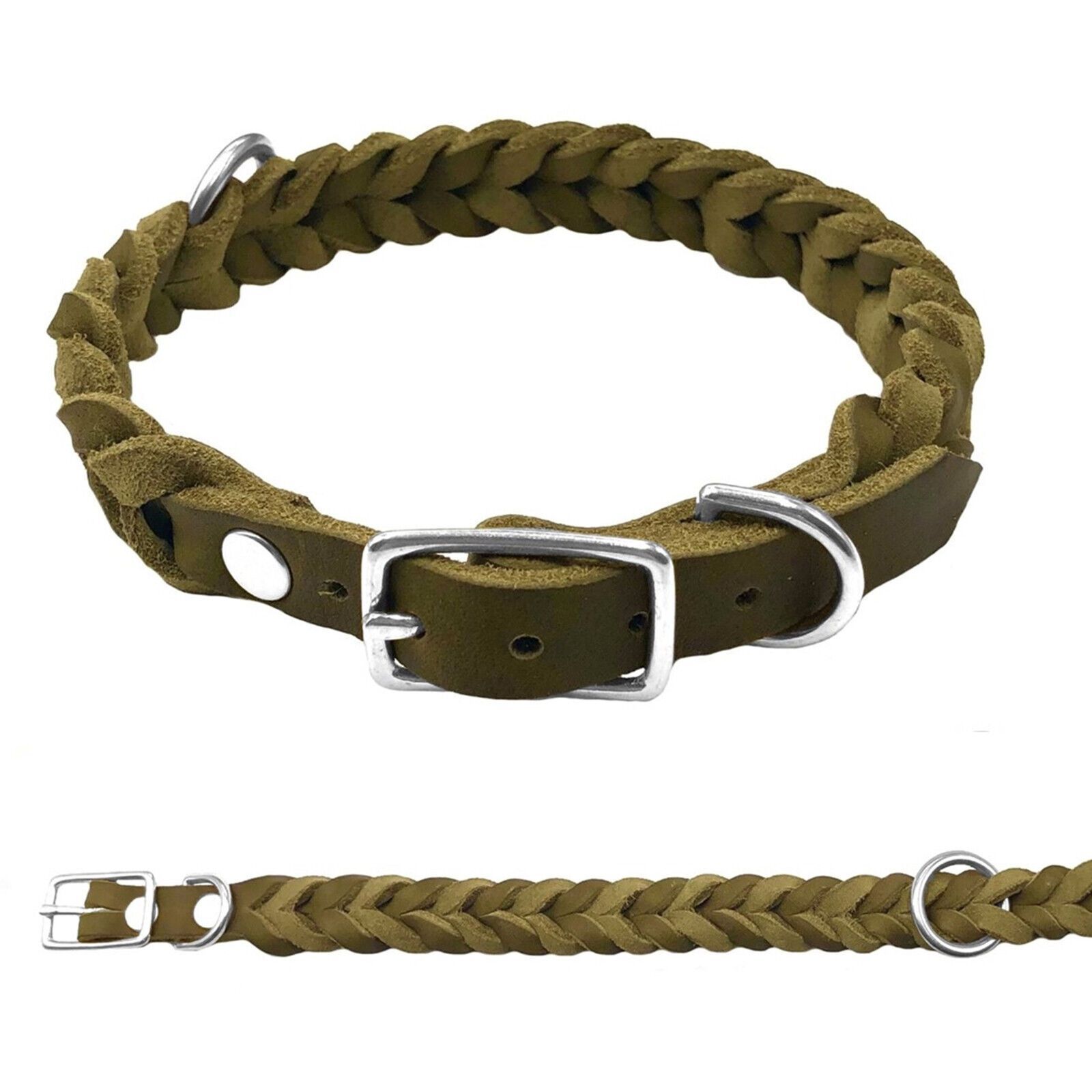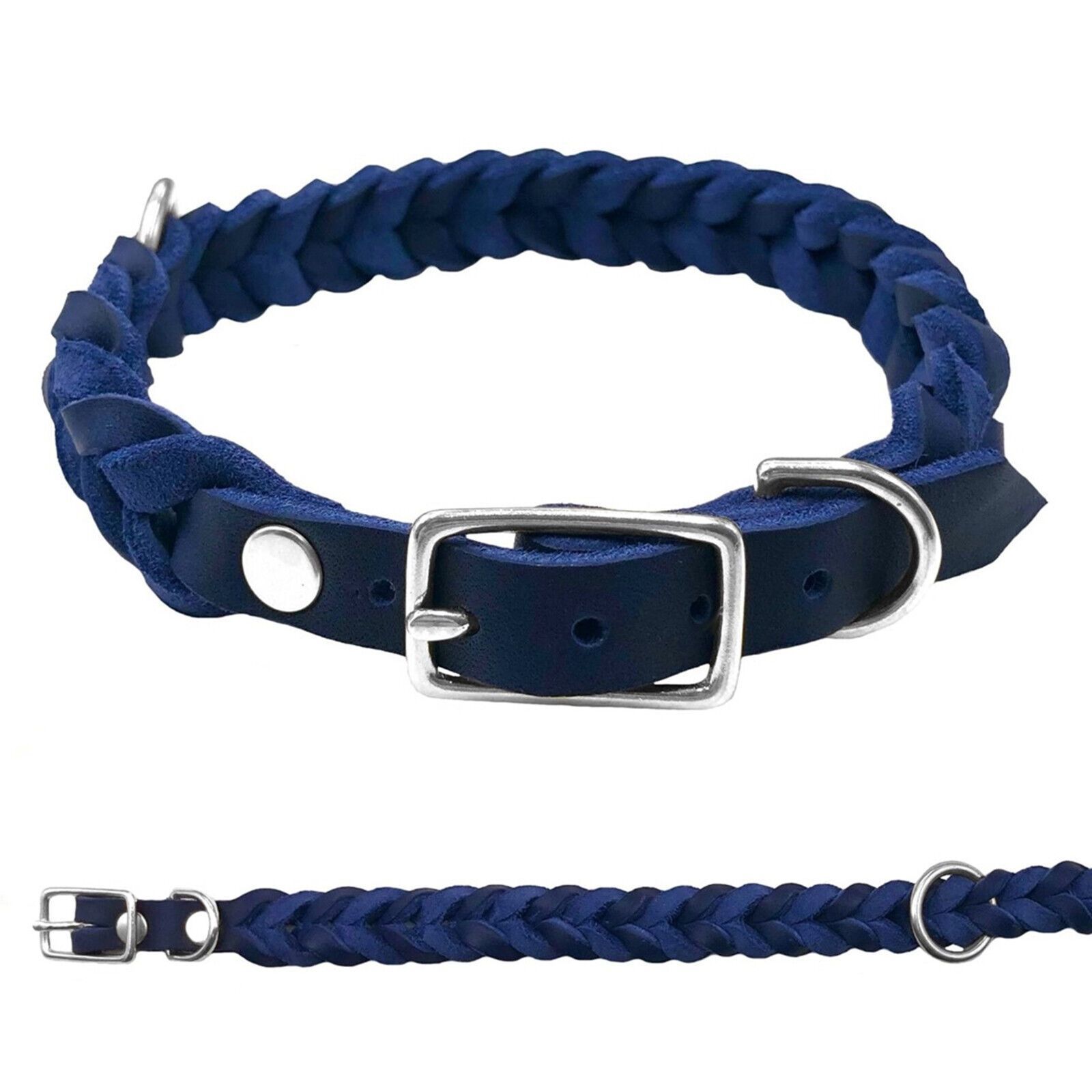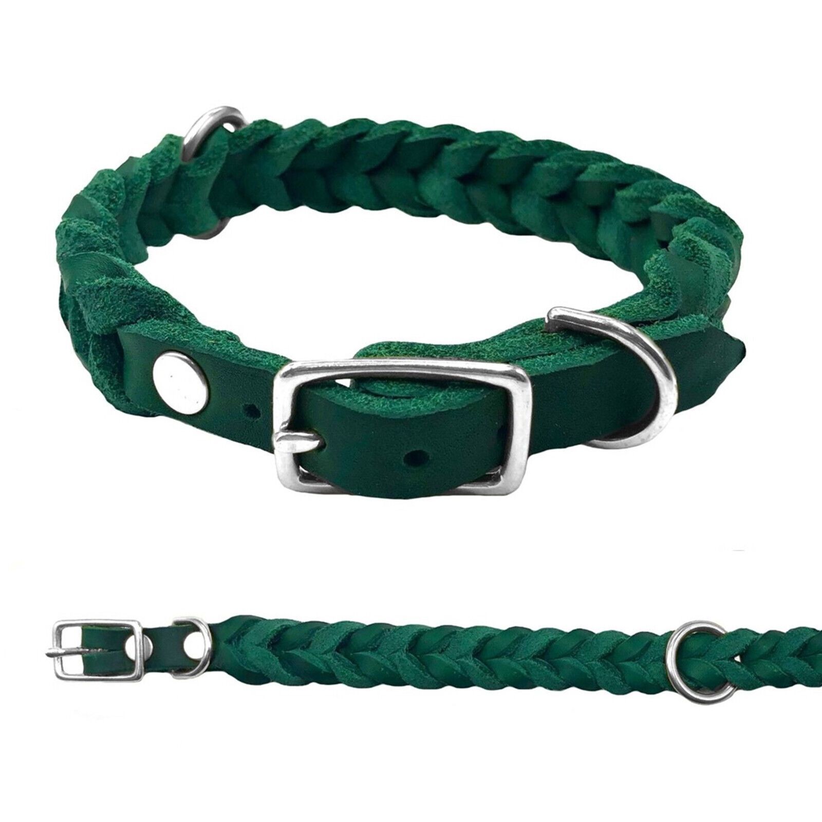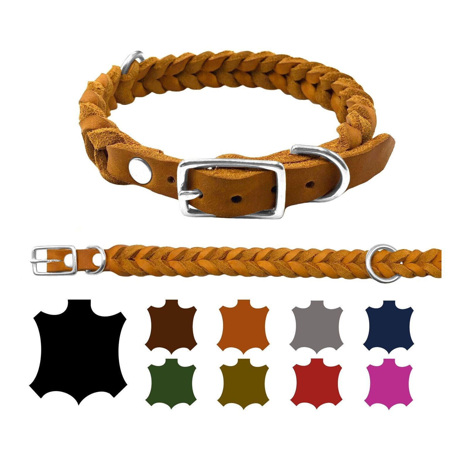 Hundehalsband Fettleder kleine Hunde / große Hunde verstellbar handgeflochten