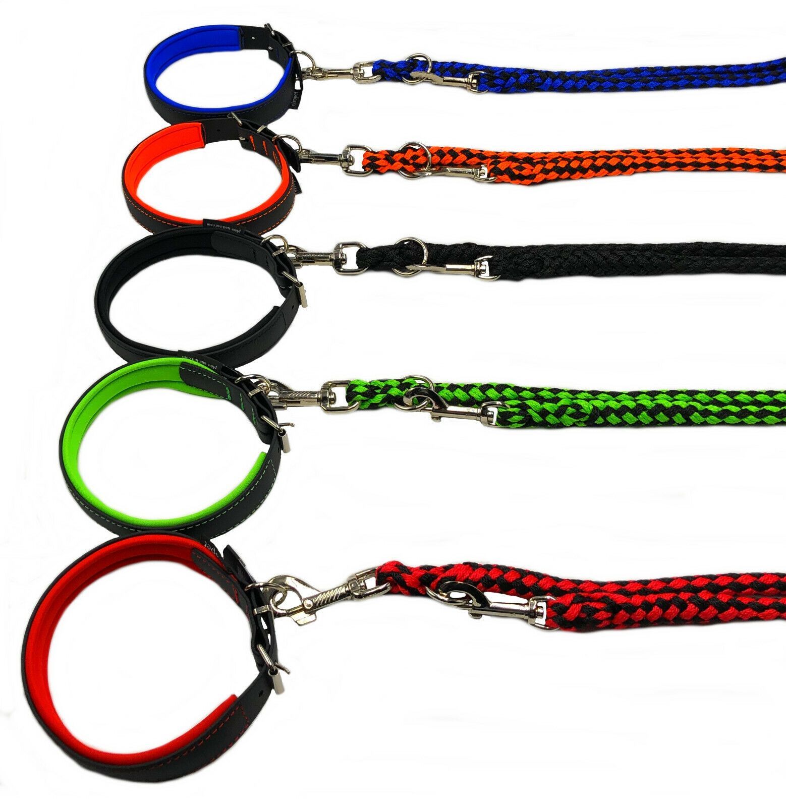 Hundehalsband Hundeleine Biothane Doppelleine rund 2,00m, 2,40m, 2,80m Set