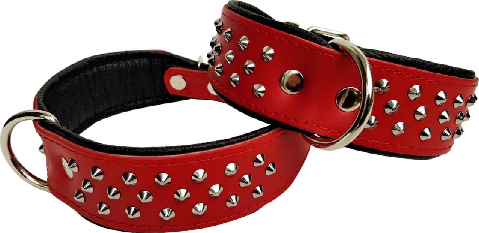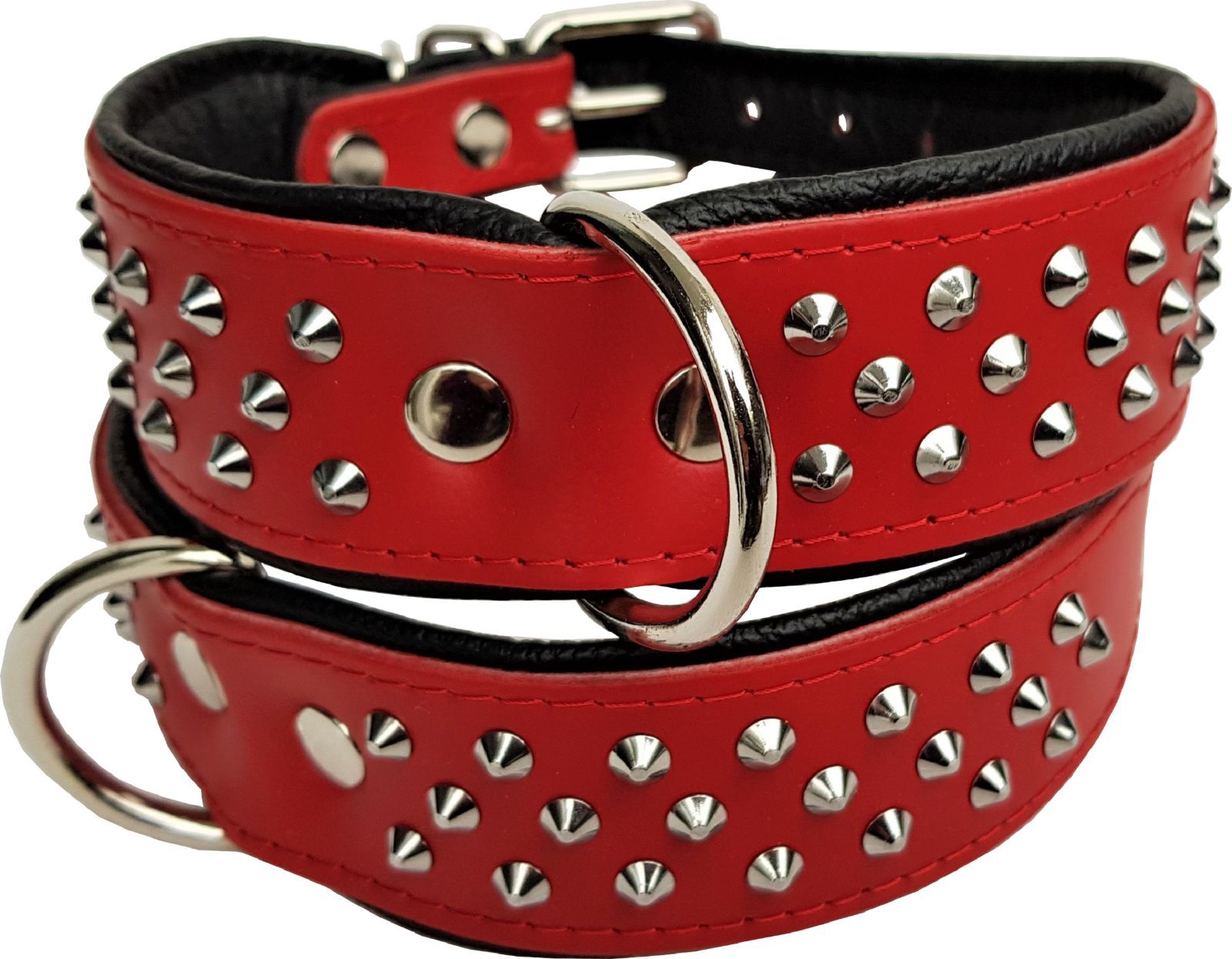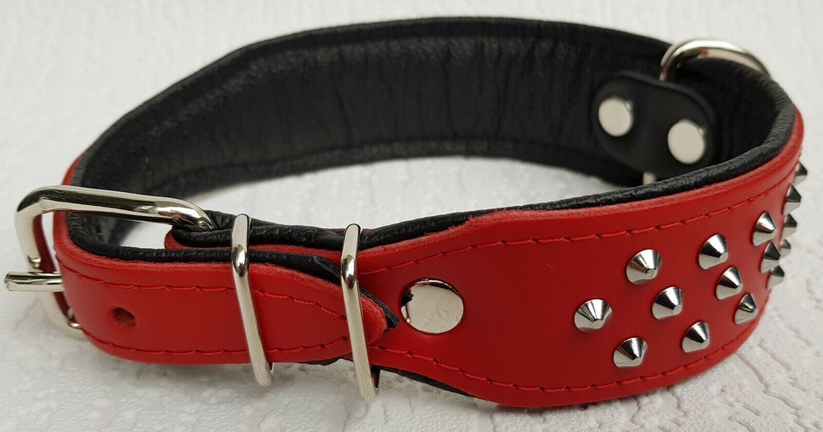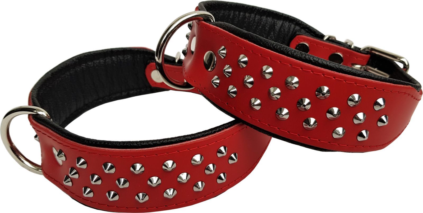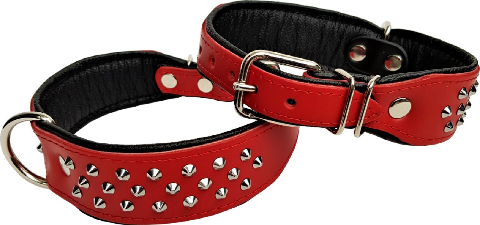 Hundehalsband, NIETEN, Halsumfang 38-46cm, Rot-Schwarz NEU LEDER (10-32)