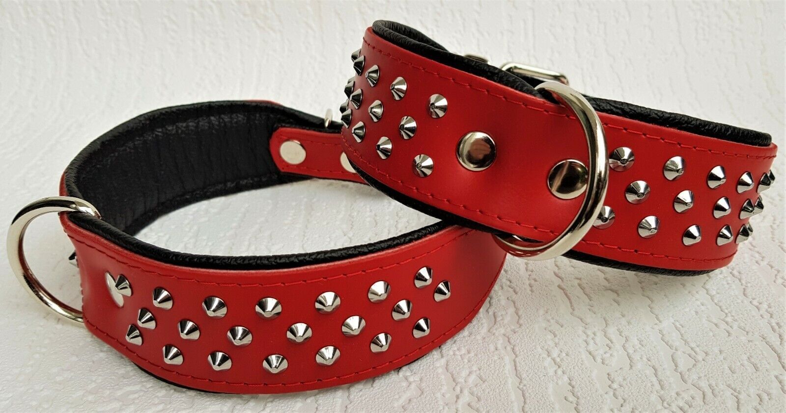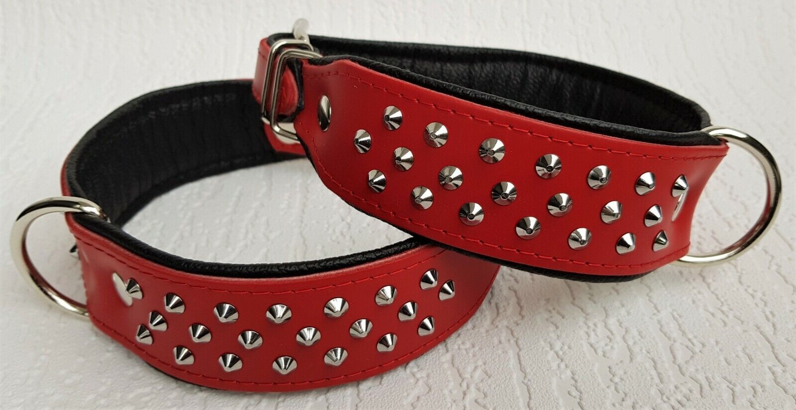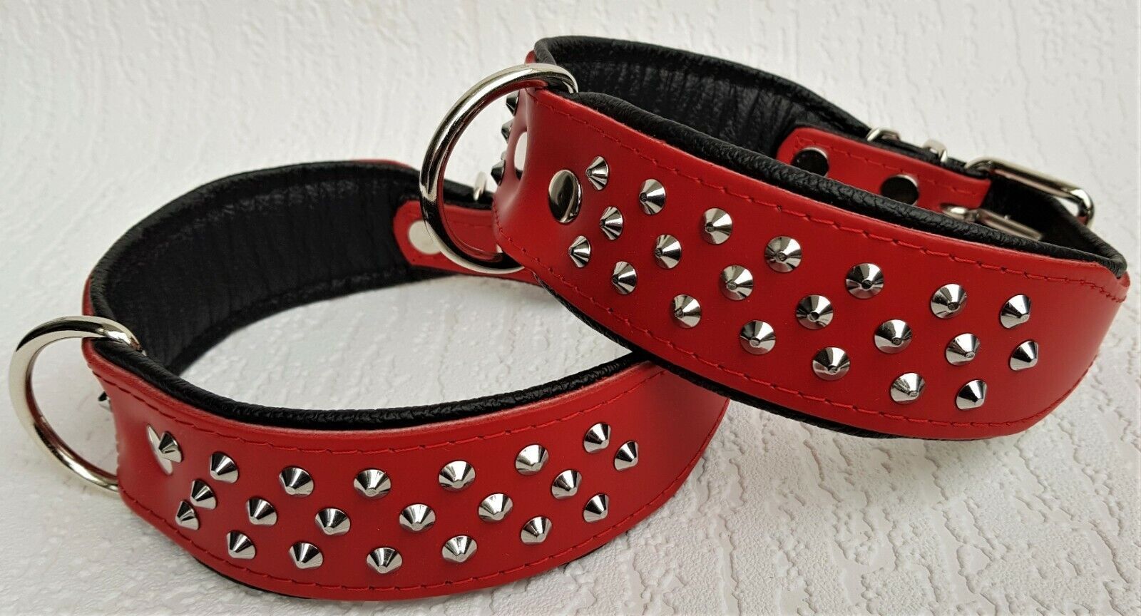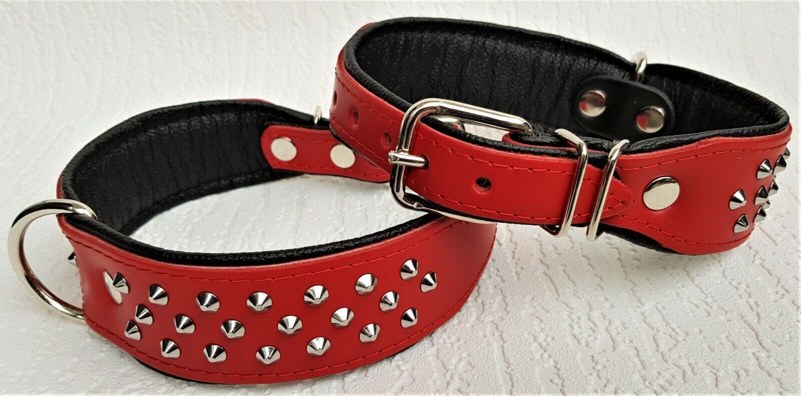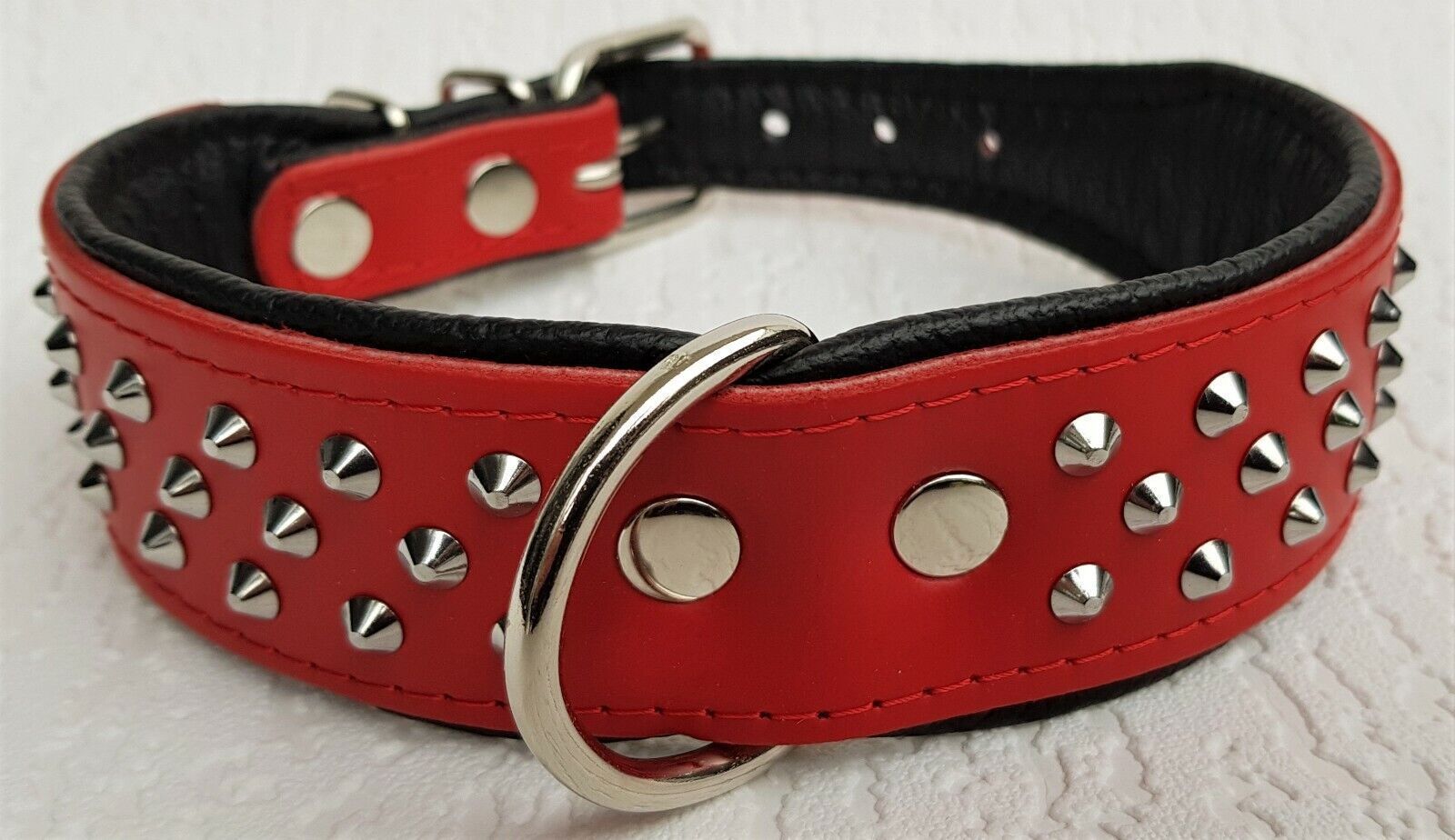 Hundehalsband, NIETEN, Halsumfang 38-46cm, Rot-Schwarz NEU LEDER (10-32)