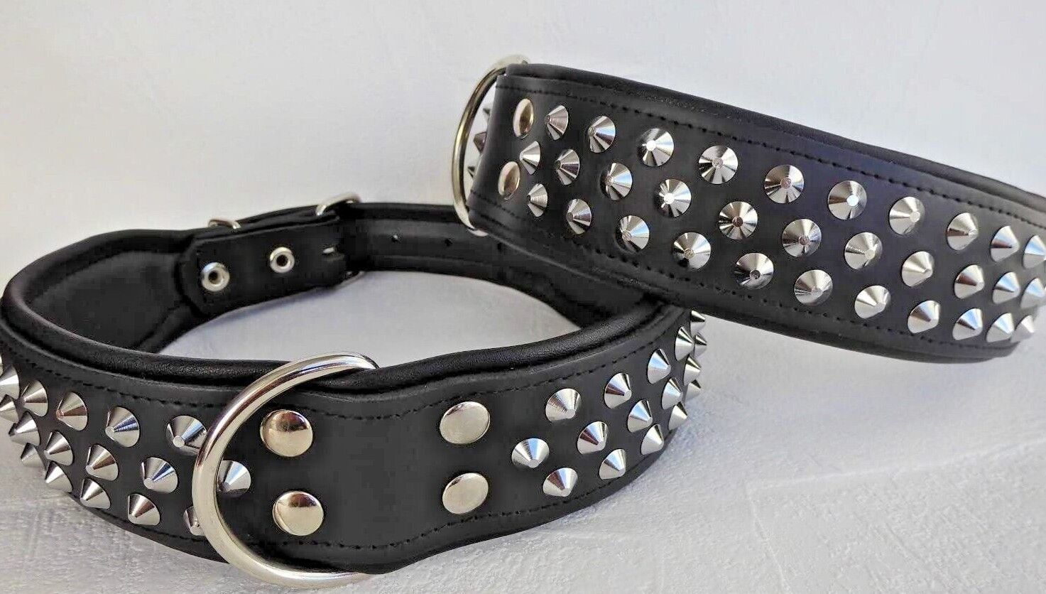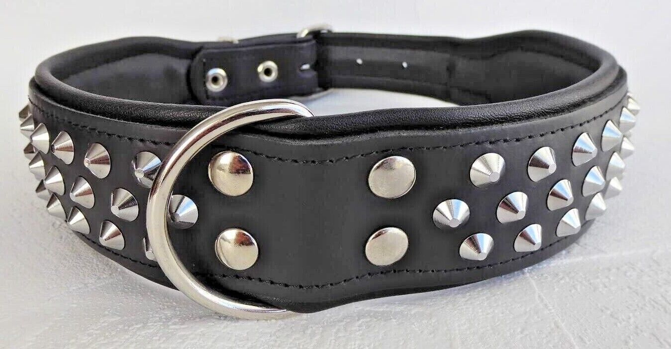 Hundehalsband, NIETEN, Halsumfang 60-71cm/50mm, Schwarz - Schwarz, NEU
