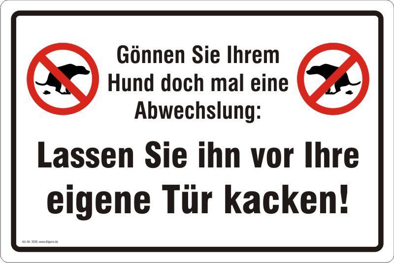 Hundehaufen Hundeklo Hier nicht Kot Kacke Schild Hinweisschild Art.-Nr. 3030