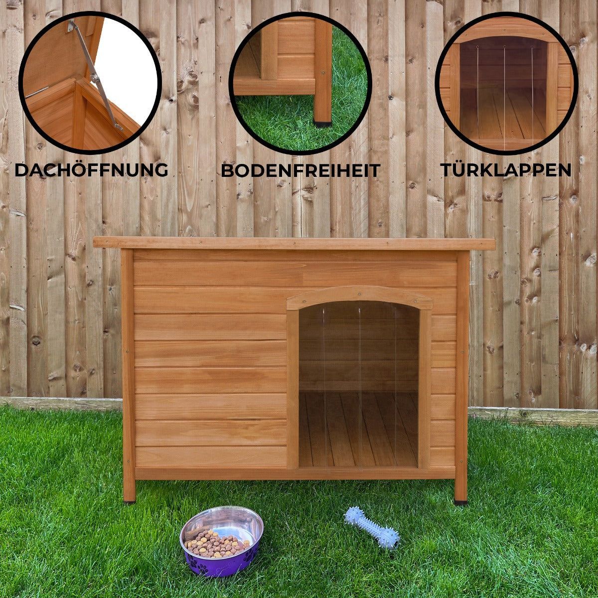 Hundehütte aus Holz Hundehaus Haustierhaus Draußen Klappbare Dach Erhöhten Boden