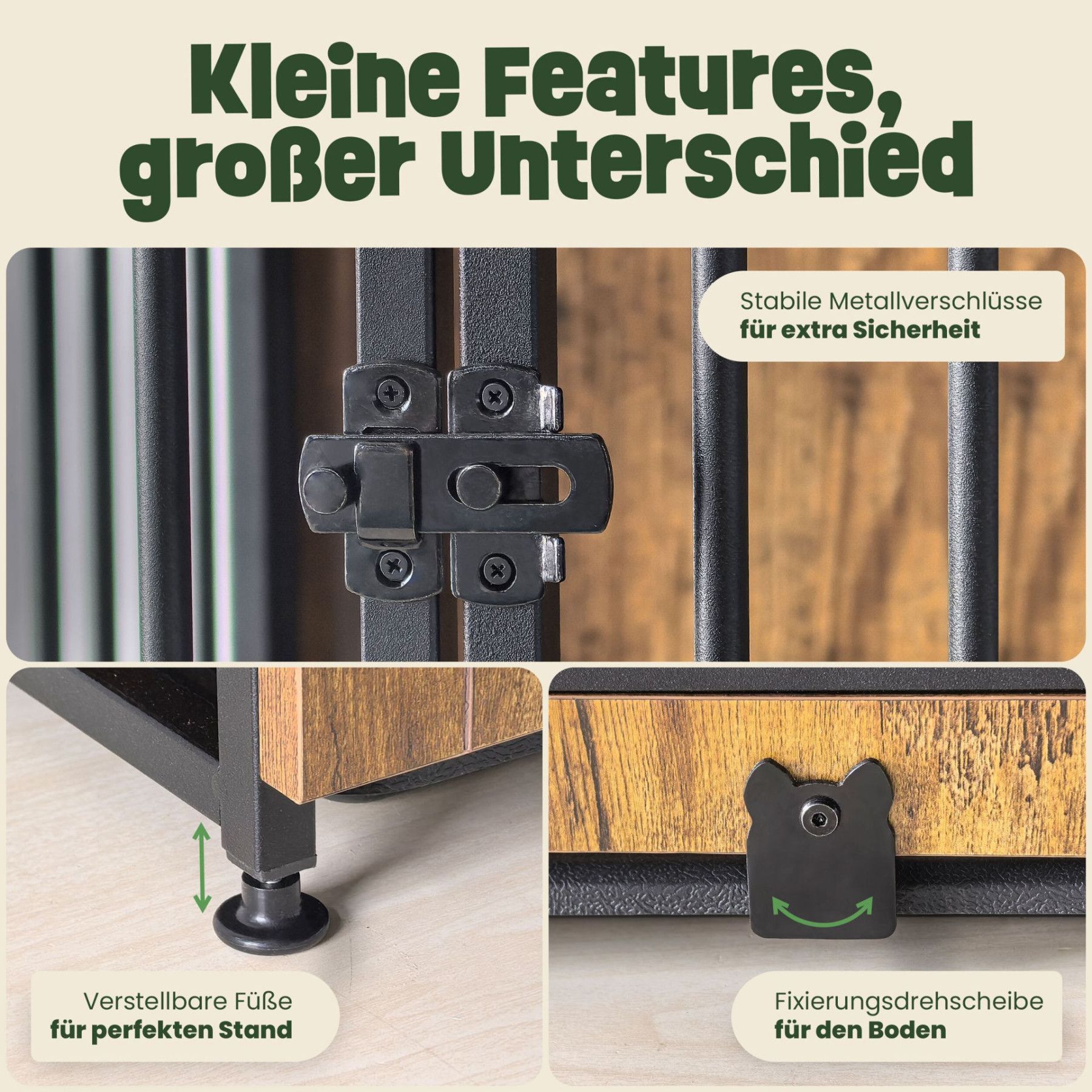 Hundehaus Max Das Hundehaus Max ist mehr als nur eine Hundebox – es ist Rückzugsort, Möbelstück und Wohnaccessoire zugleich. Mit rustikalem Holzdesign und stabilem Metallrahmen fügt es sich harmonisch in jedes Zuhause ein und bietet deinem Hund einen sicheren und gemütlichen Platz zum Entspannen. Of