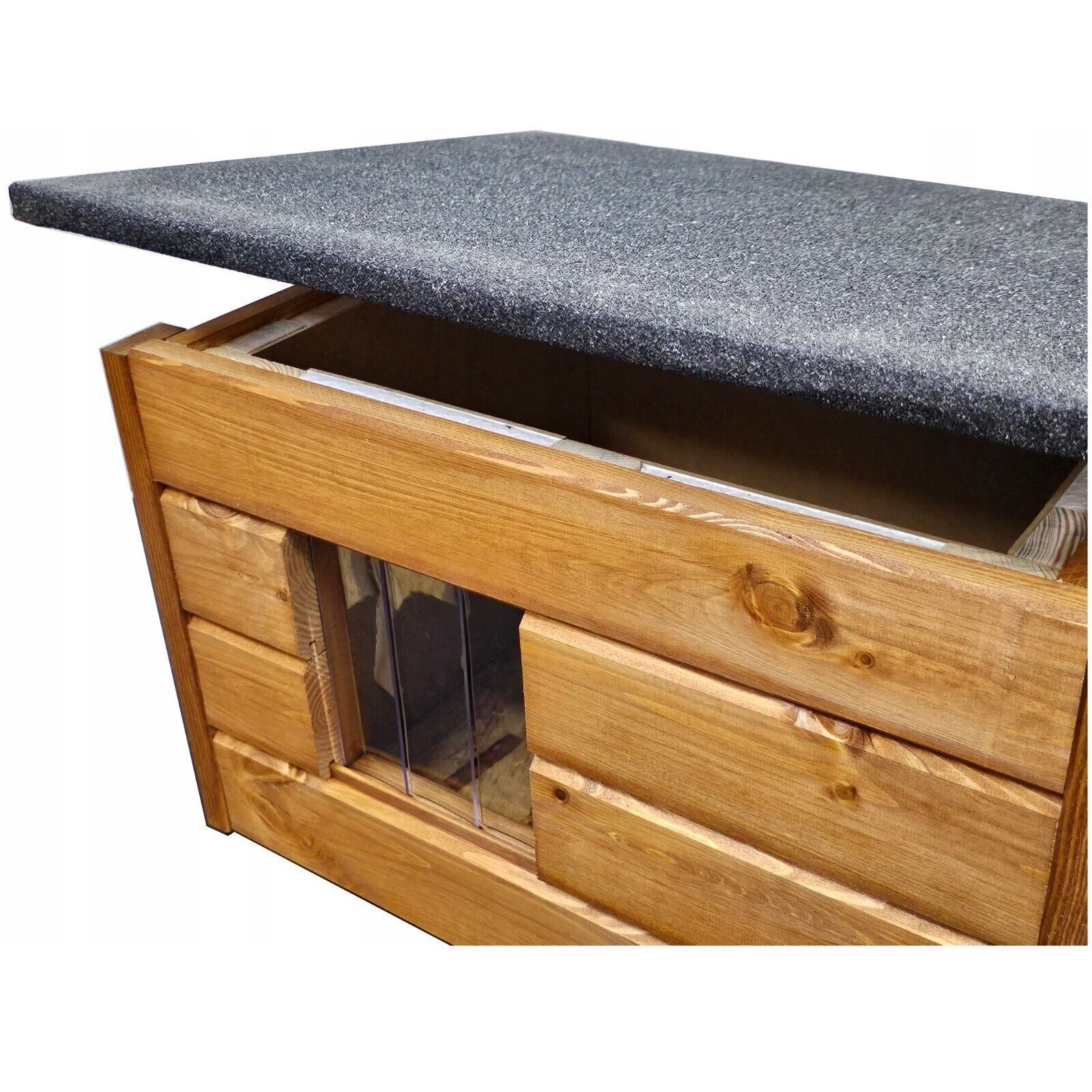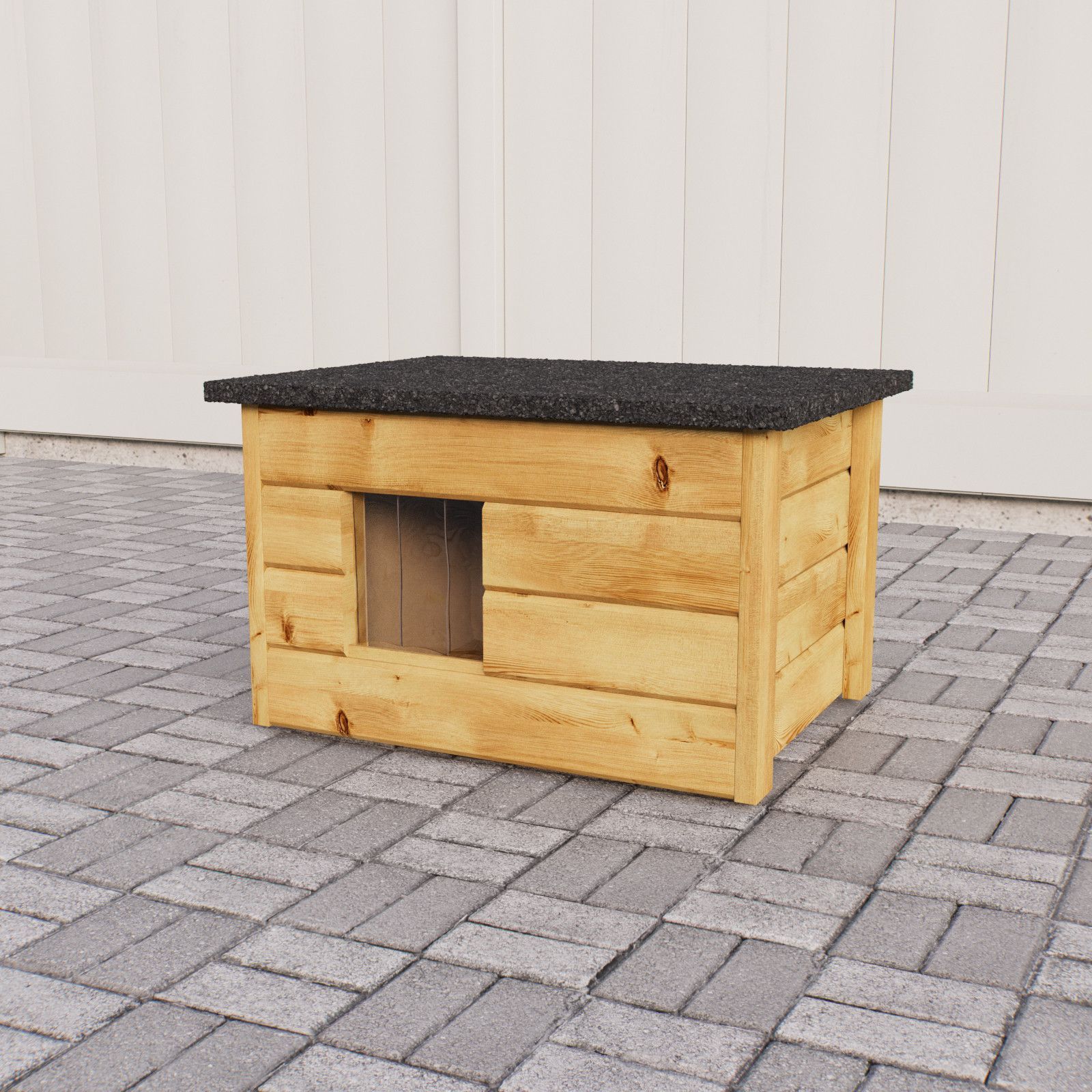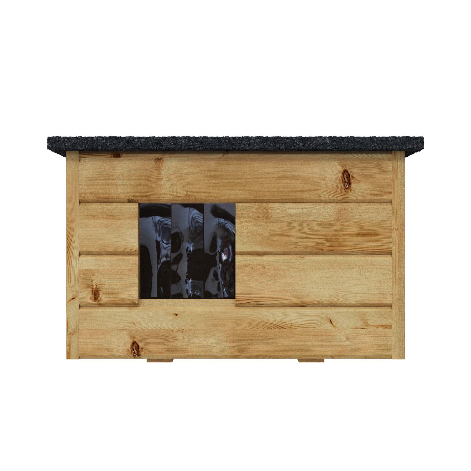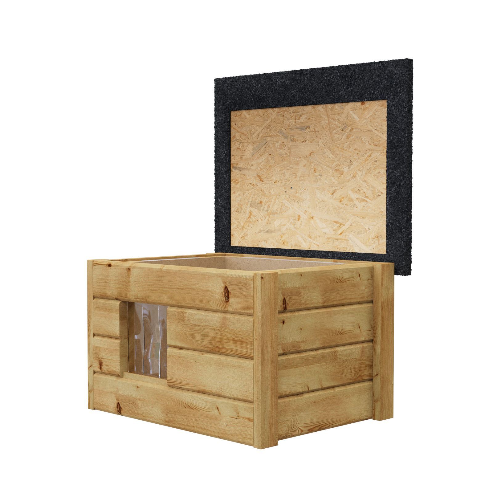 QLS Hundehütte Wetterfest Hundehaus Hundehöhle Winterfest Isoliert Holz 57x44 cm 10335