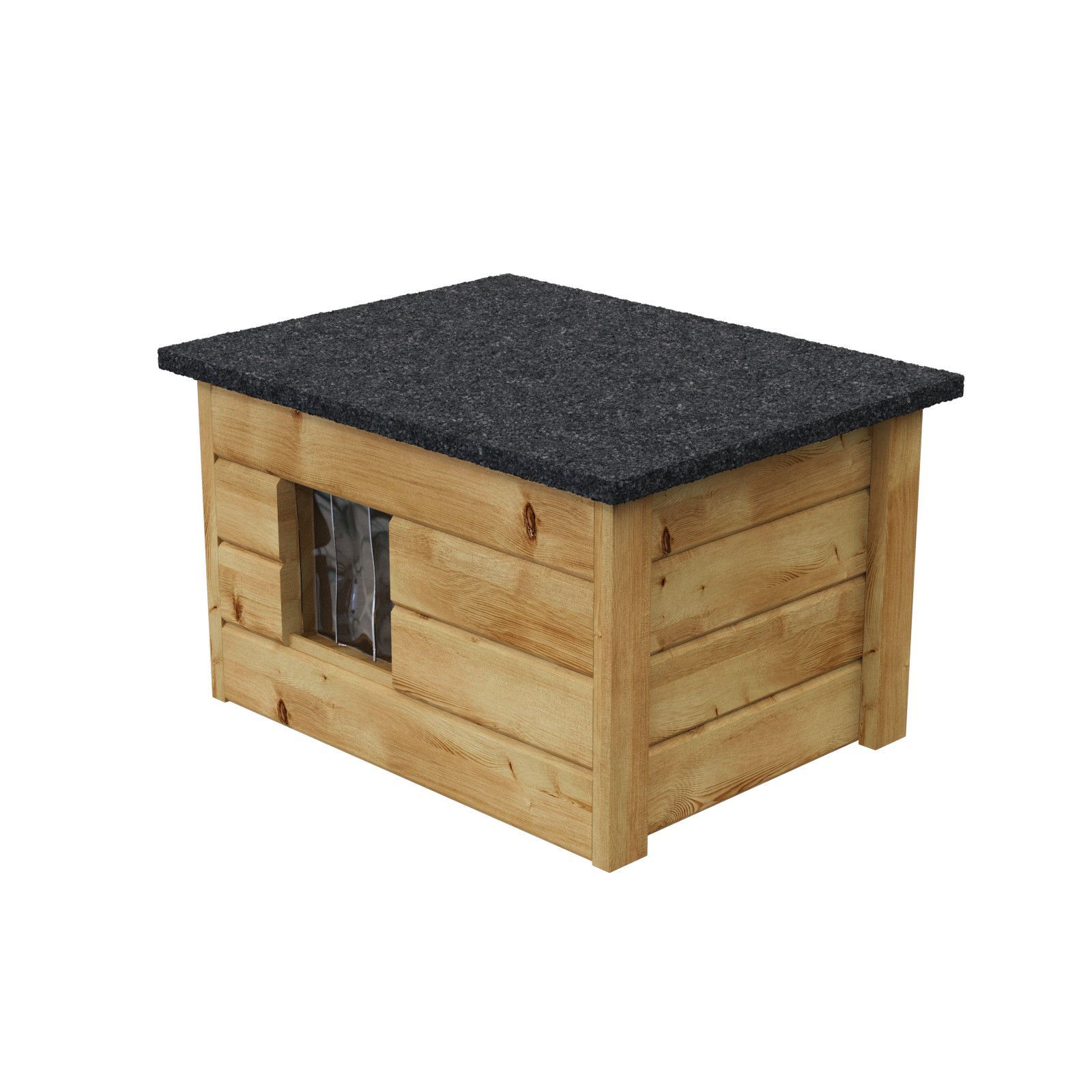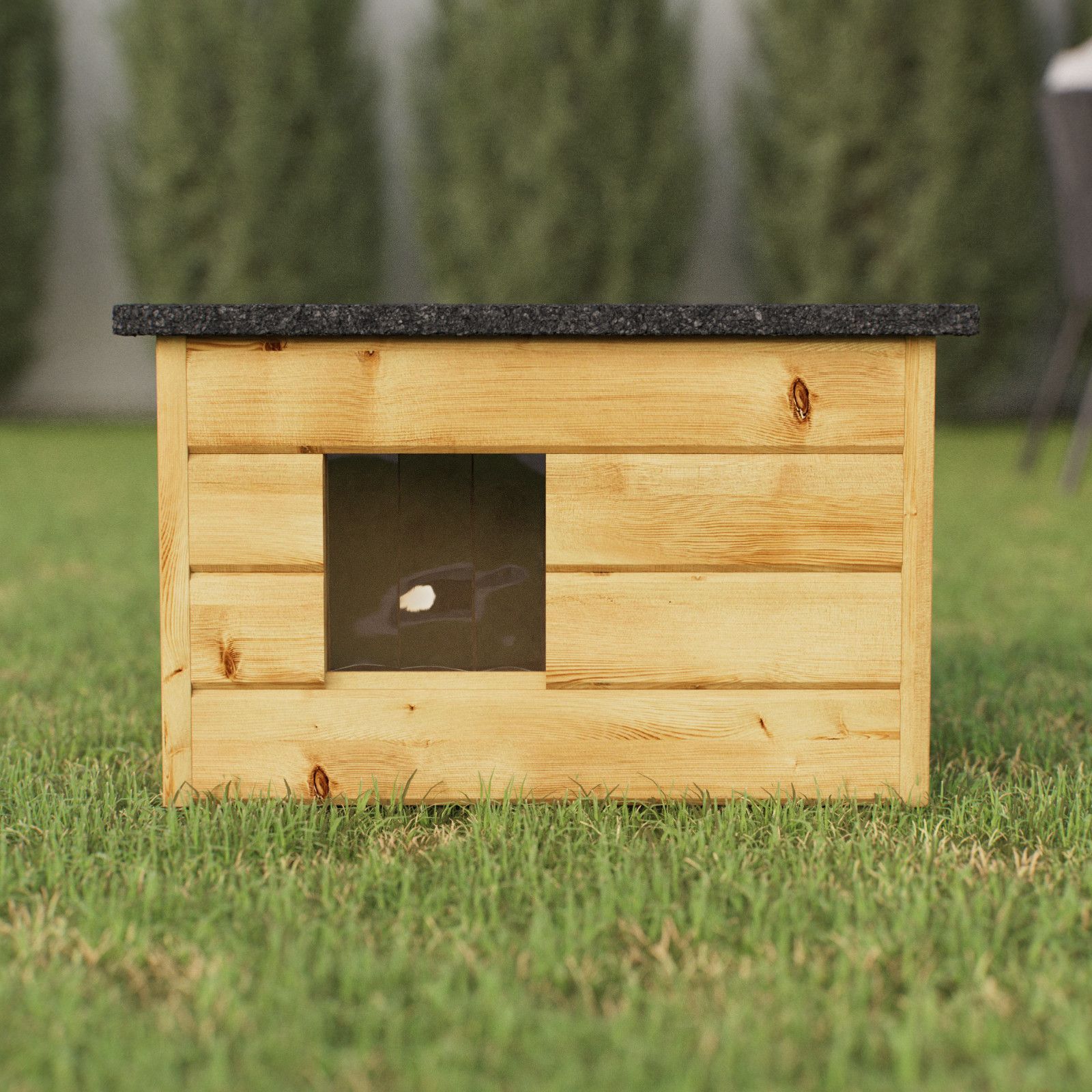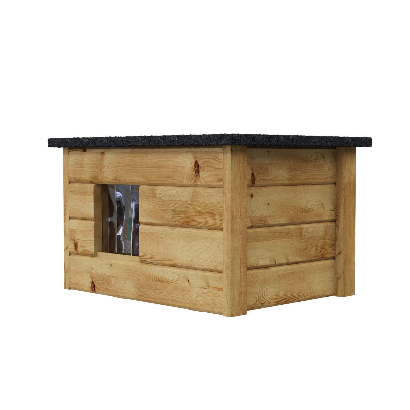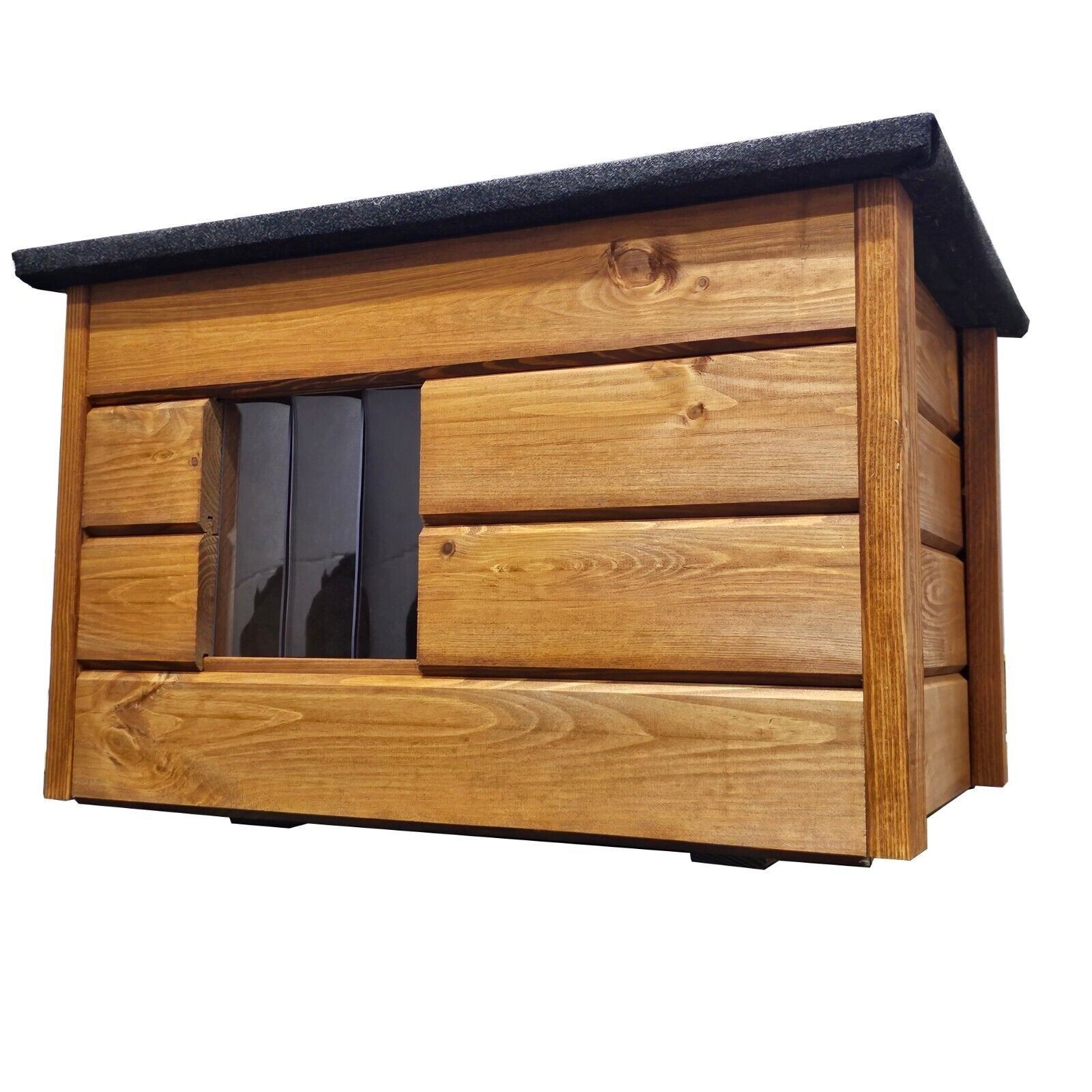 QLS Hundehütte Wetterfest Hundehaus Hundehöhle Winterfest Isoliert Holz 57x44 cm 10335