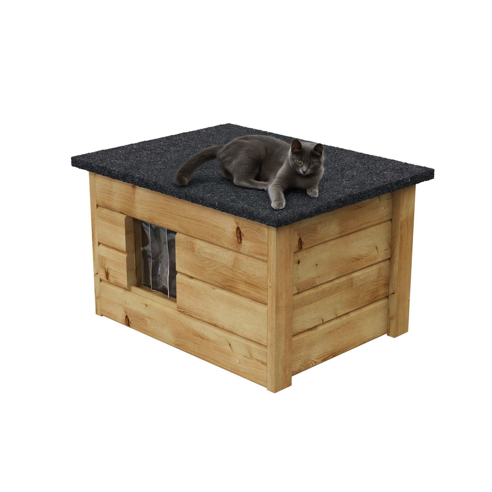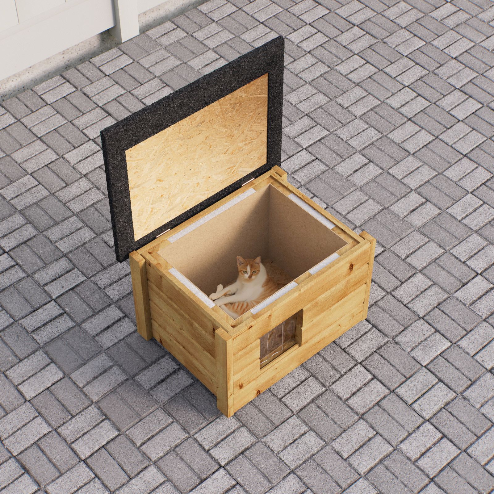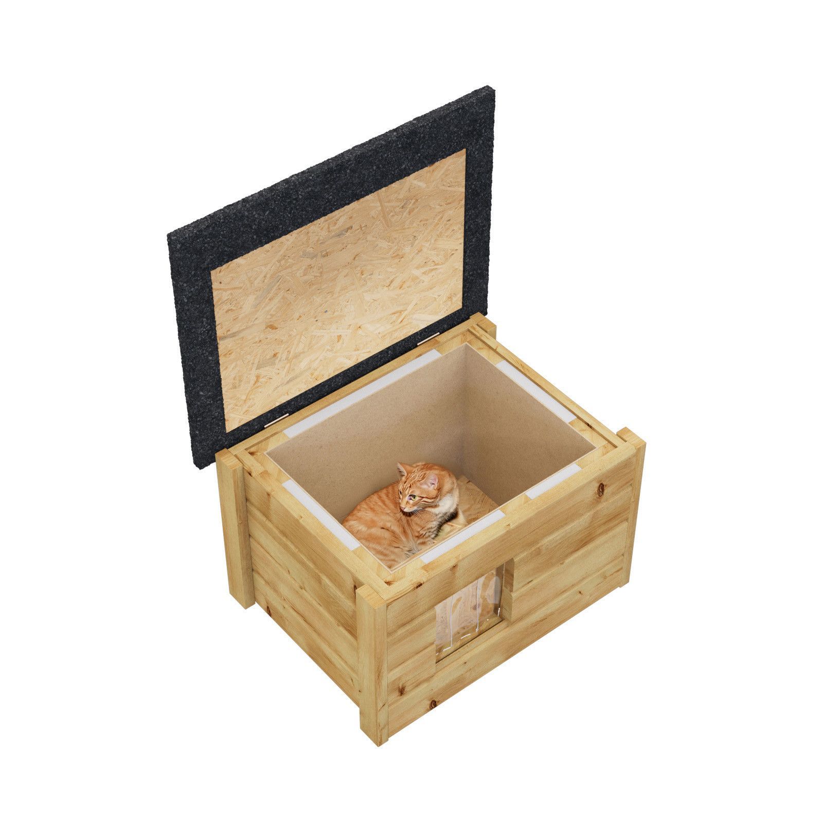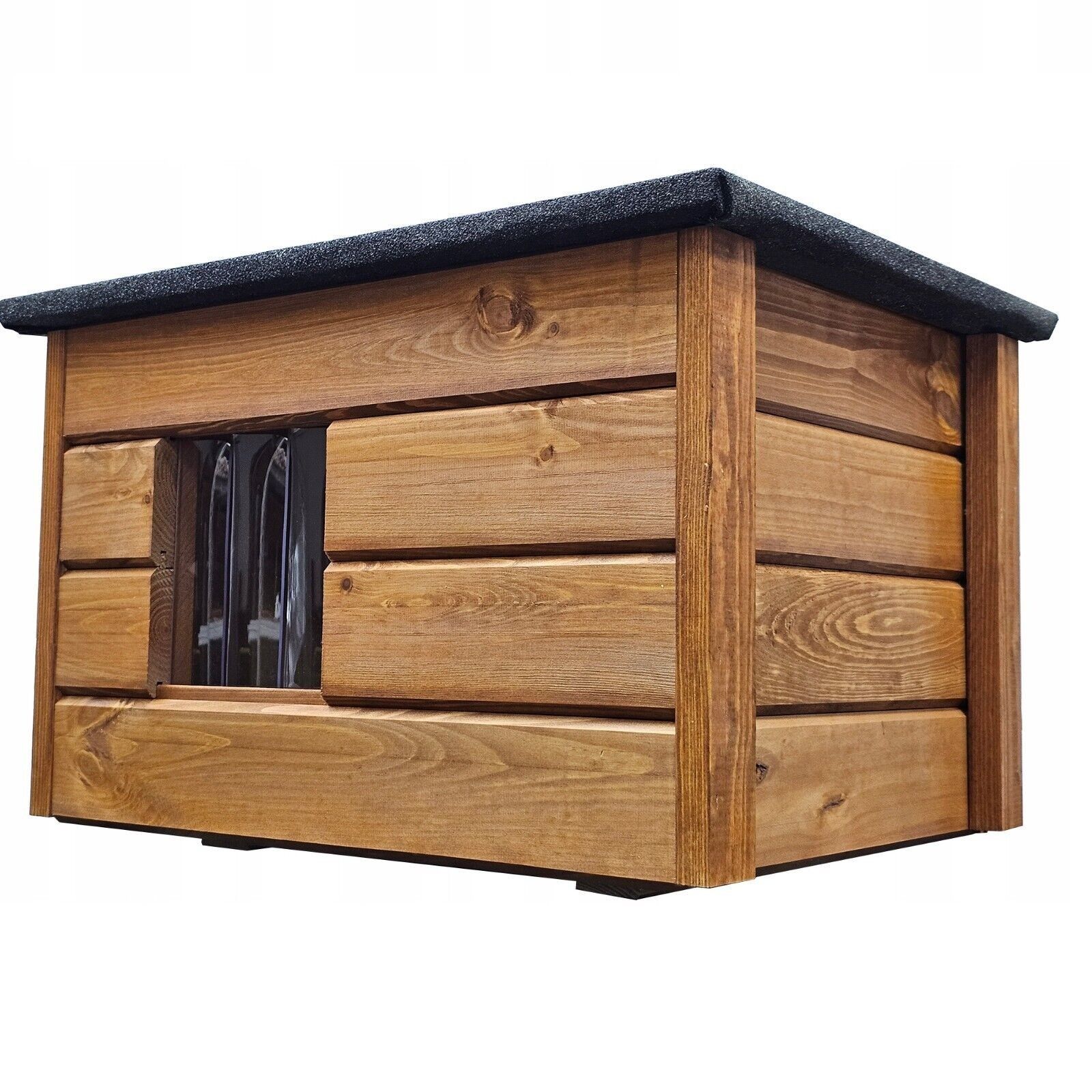 QLS Hundehütte Wetterfest Hundehaus Hundehöhle Winterfest Isoliert Holz 57x44 cm 10335