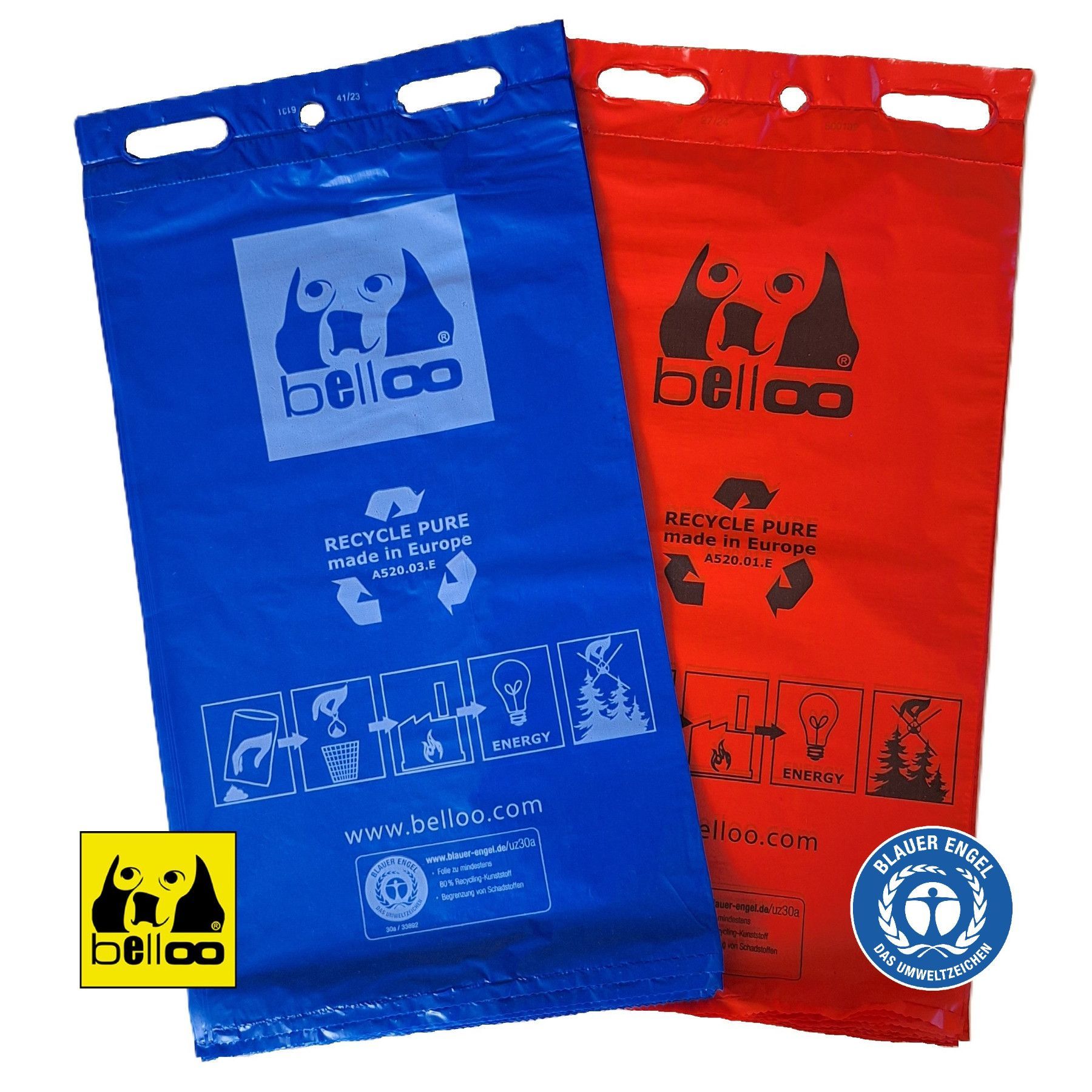 Hundekotbeutel mit Recycling-Anteil - Rot Blau Schwarz - Reißfest Umweltfreundlich