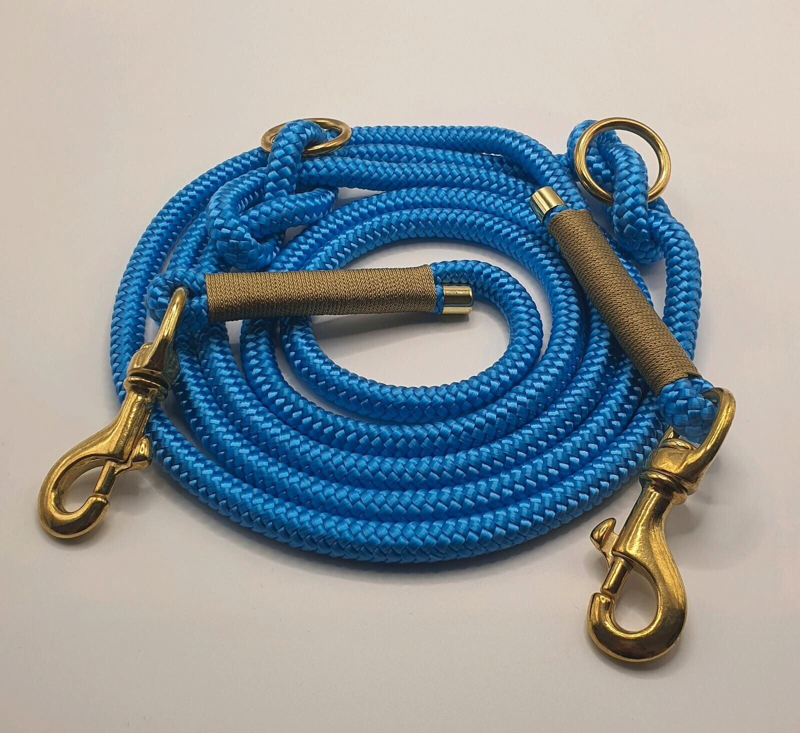 Die handgefertigte Leine in blau ist 2,5 m lang und 3-fach verstellbar. Sie sorgt für ein angenehmen Spaziergang mit deinem Liebling. Die Hundeleine ist aus PPM-Seil in der Stärke 10 mm hergestellt und somit perfekt für Hunde mit einem Gewicht ab 25 kg geeignet. Die robuste PPM-Leine hat eine seidig