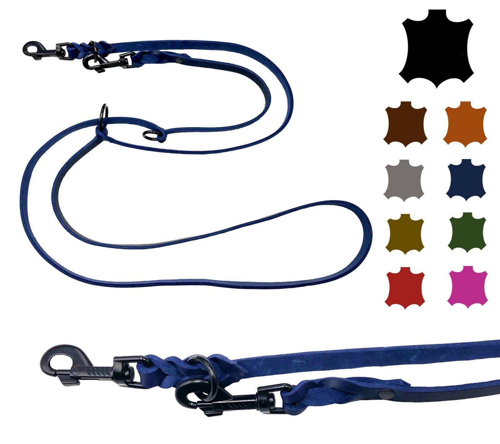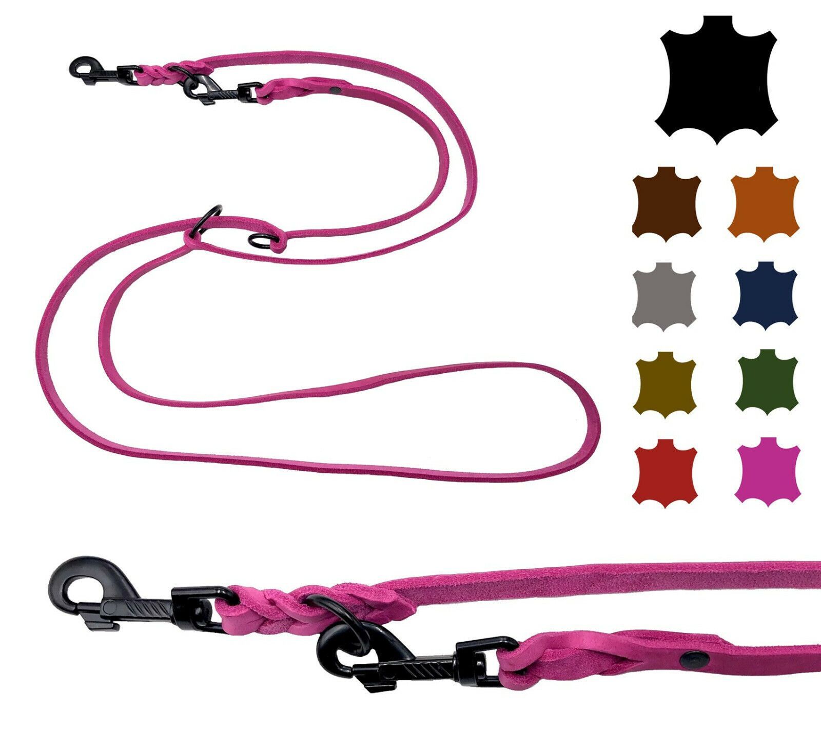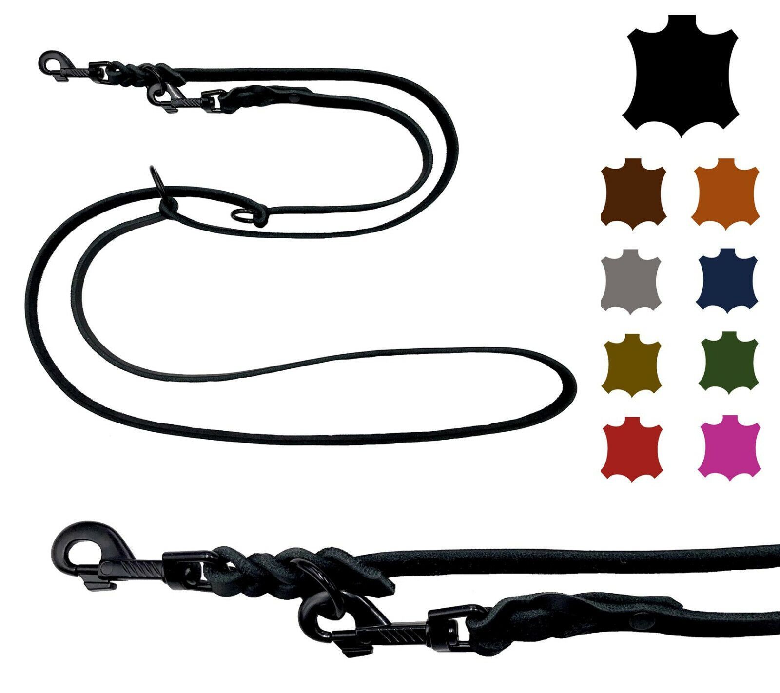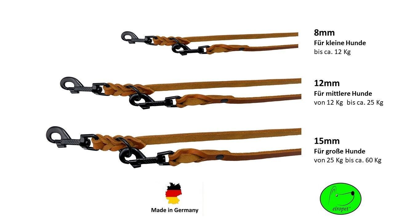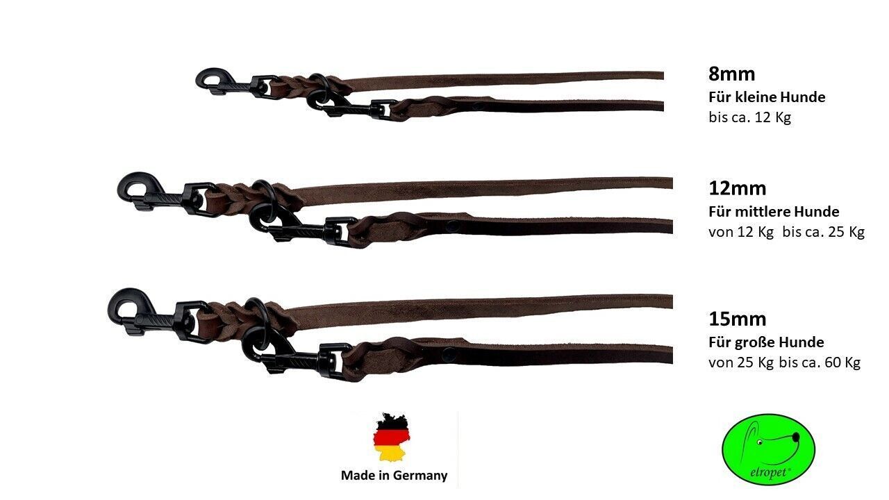 Hundeleine Fettleder kleine & große Hunde 2m / 2,4m / 2,8m / 3,5m / 5m Schwarzer