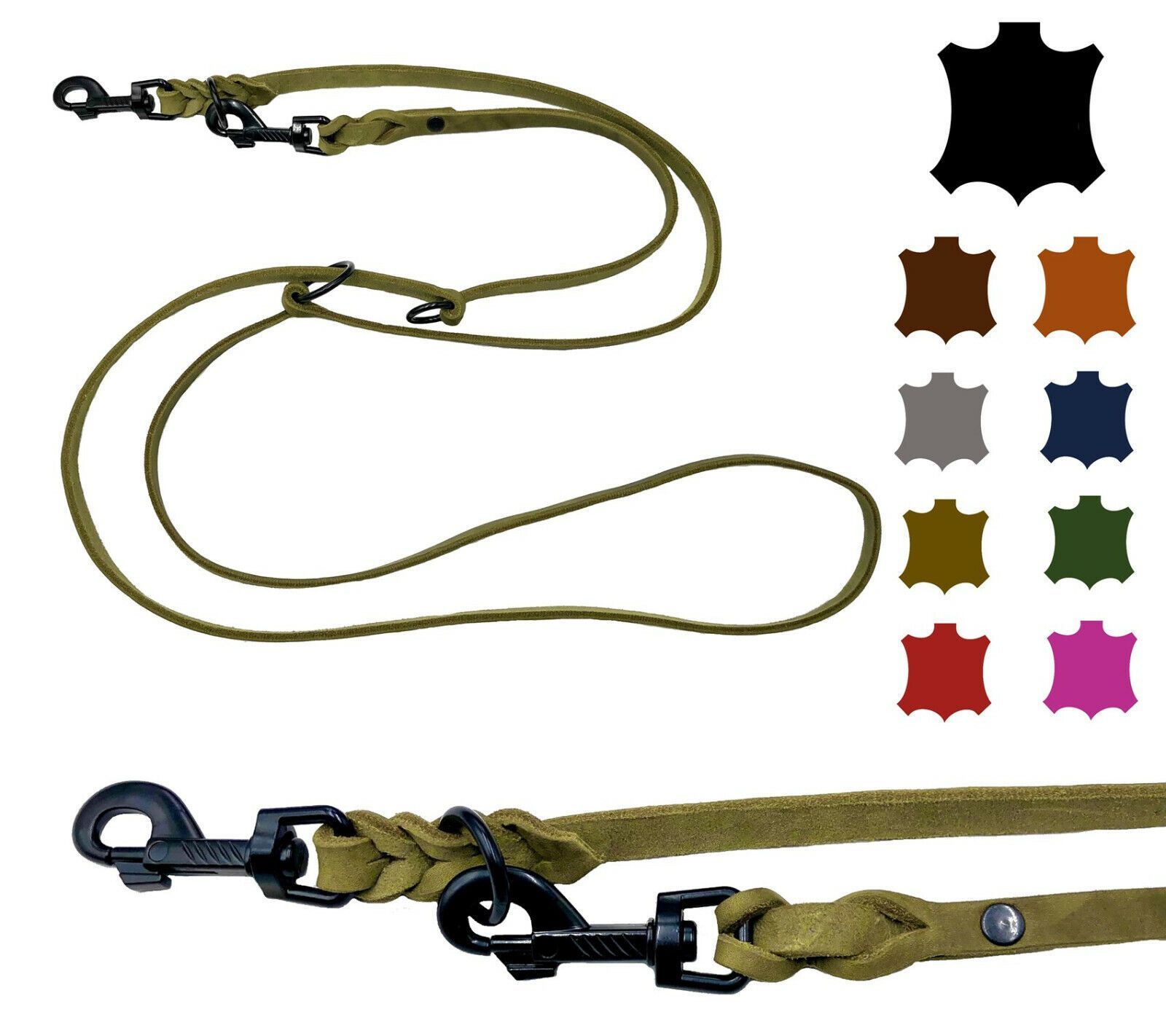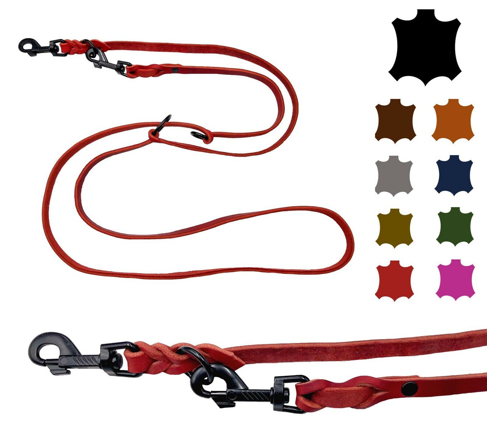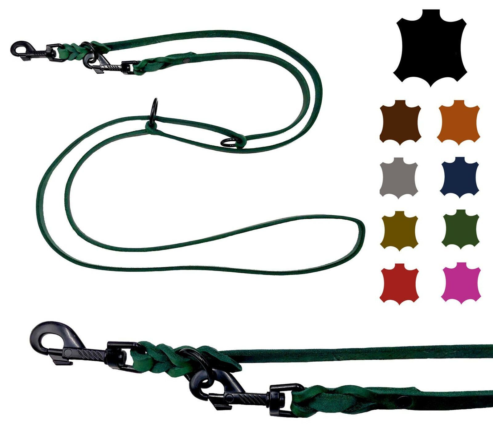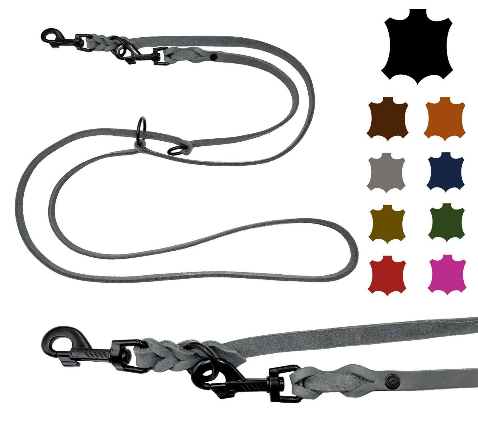 Hundeleine Fettleder kleine & große Hunde 2m / 2,4m / 2,8m / 3,5m / 5m Schwarzer
