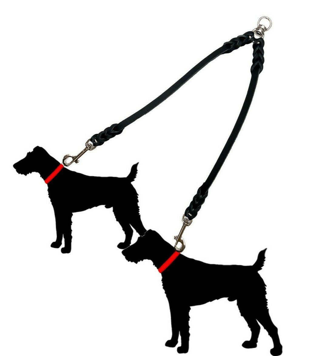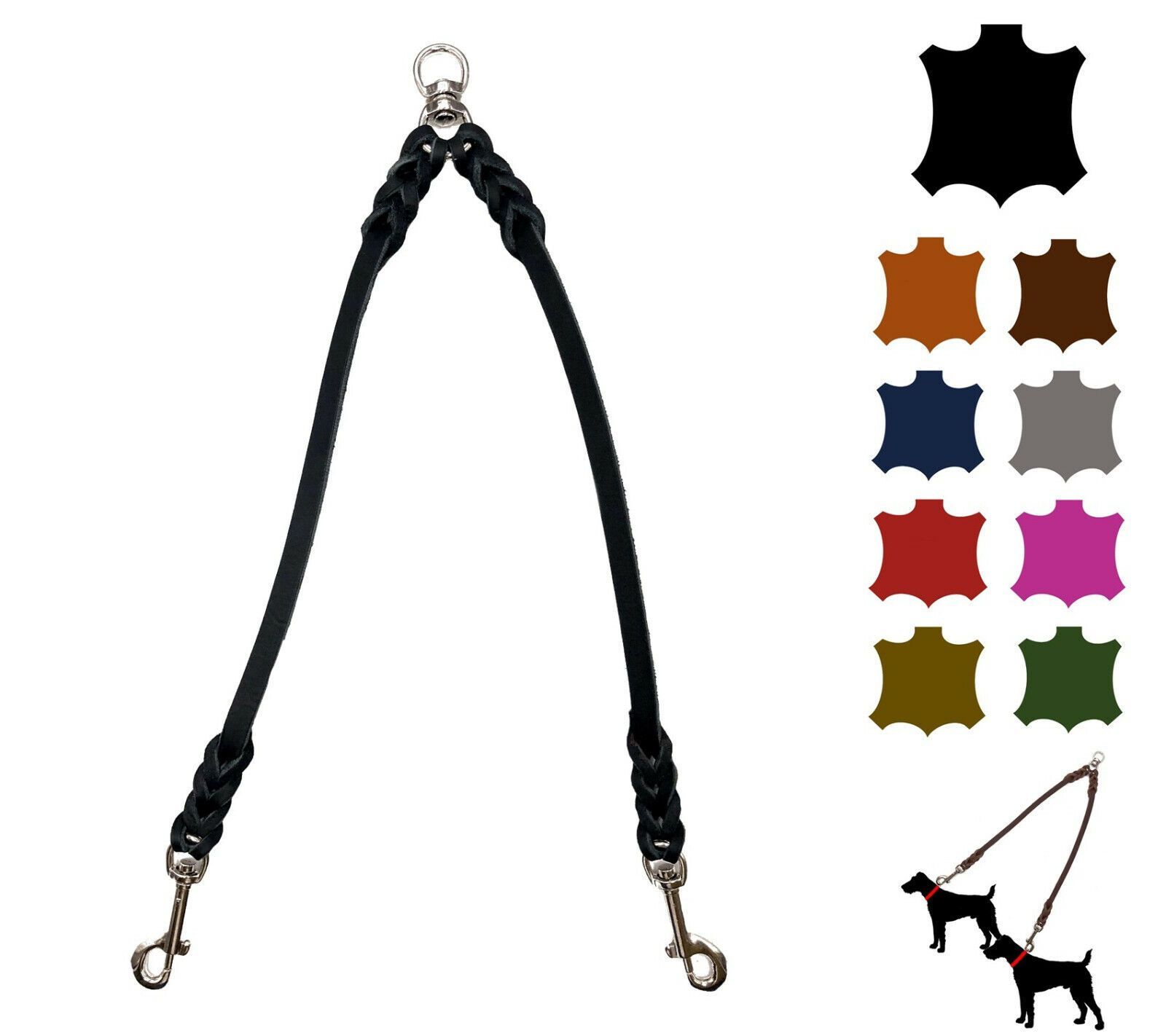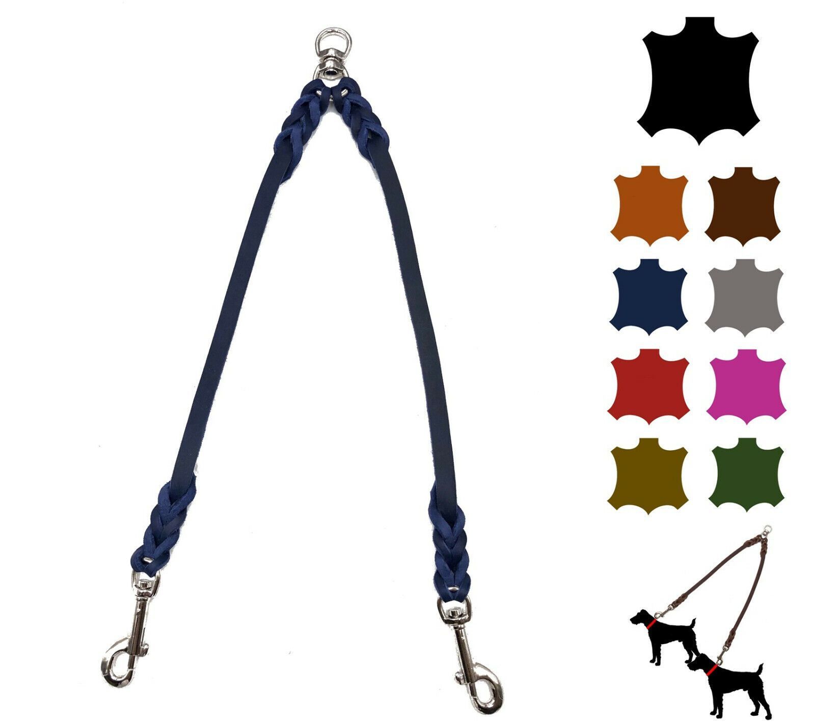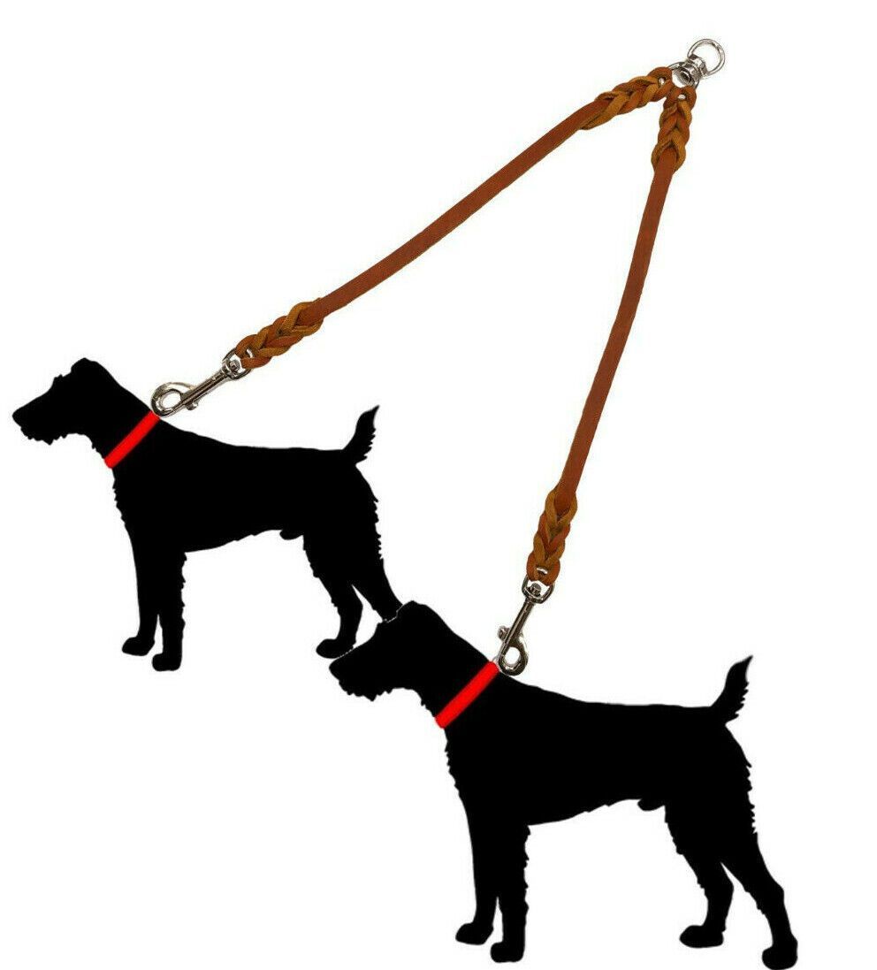 Hundeleine Fettleder Koppelleine 2 Hunde Verbindungsleine kleine & große Hunde