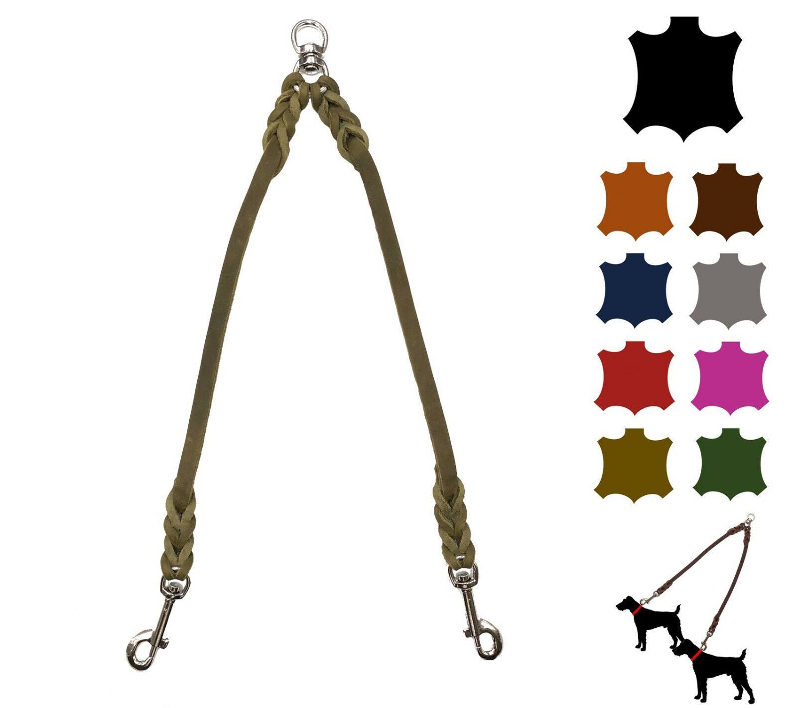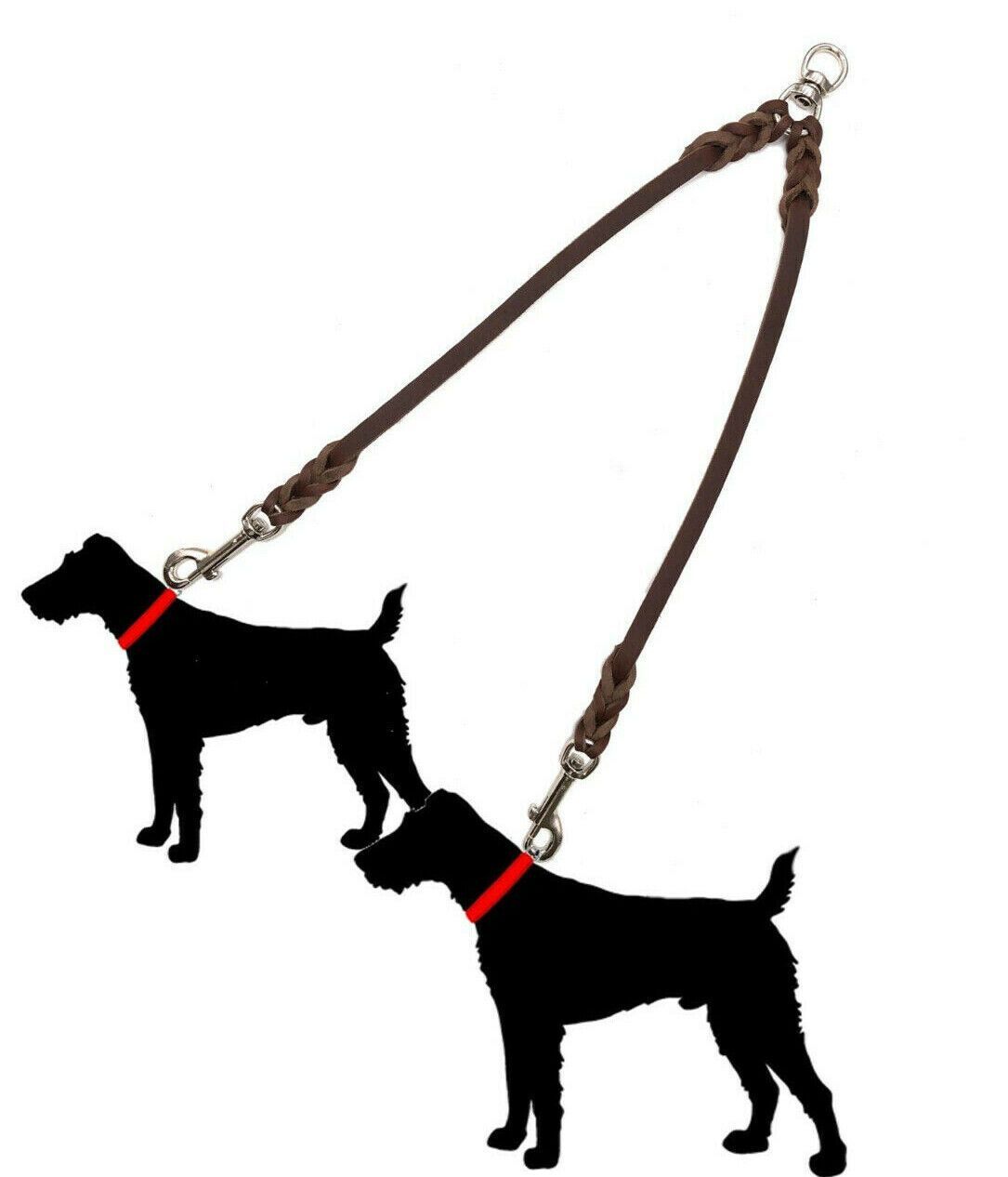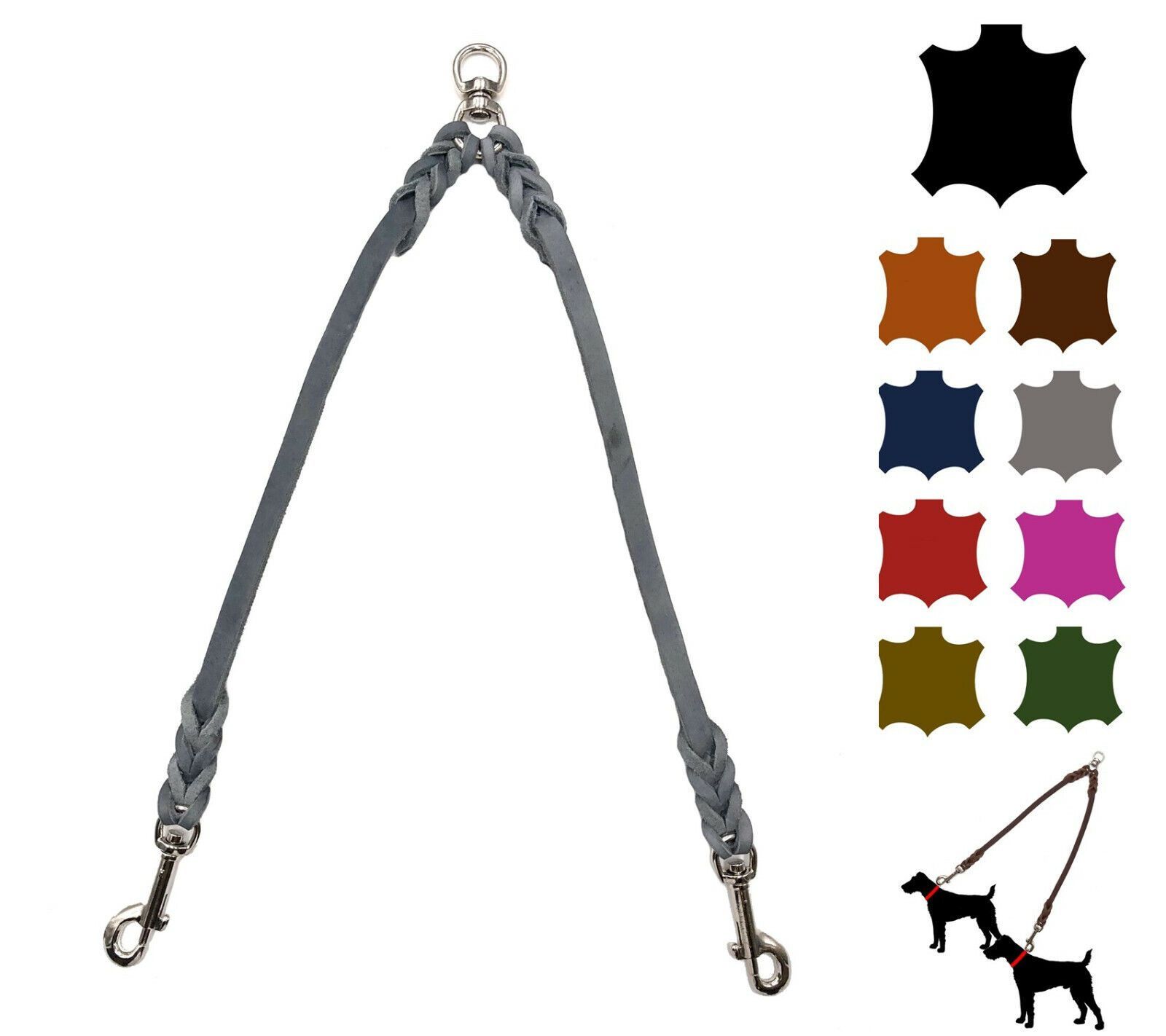 Hundeleine Fettleder Koppelleine 2 Hunde Verbindungsleine kleine & große Hunde