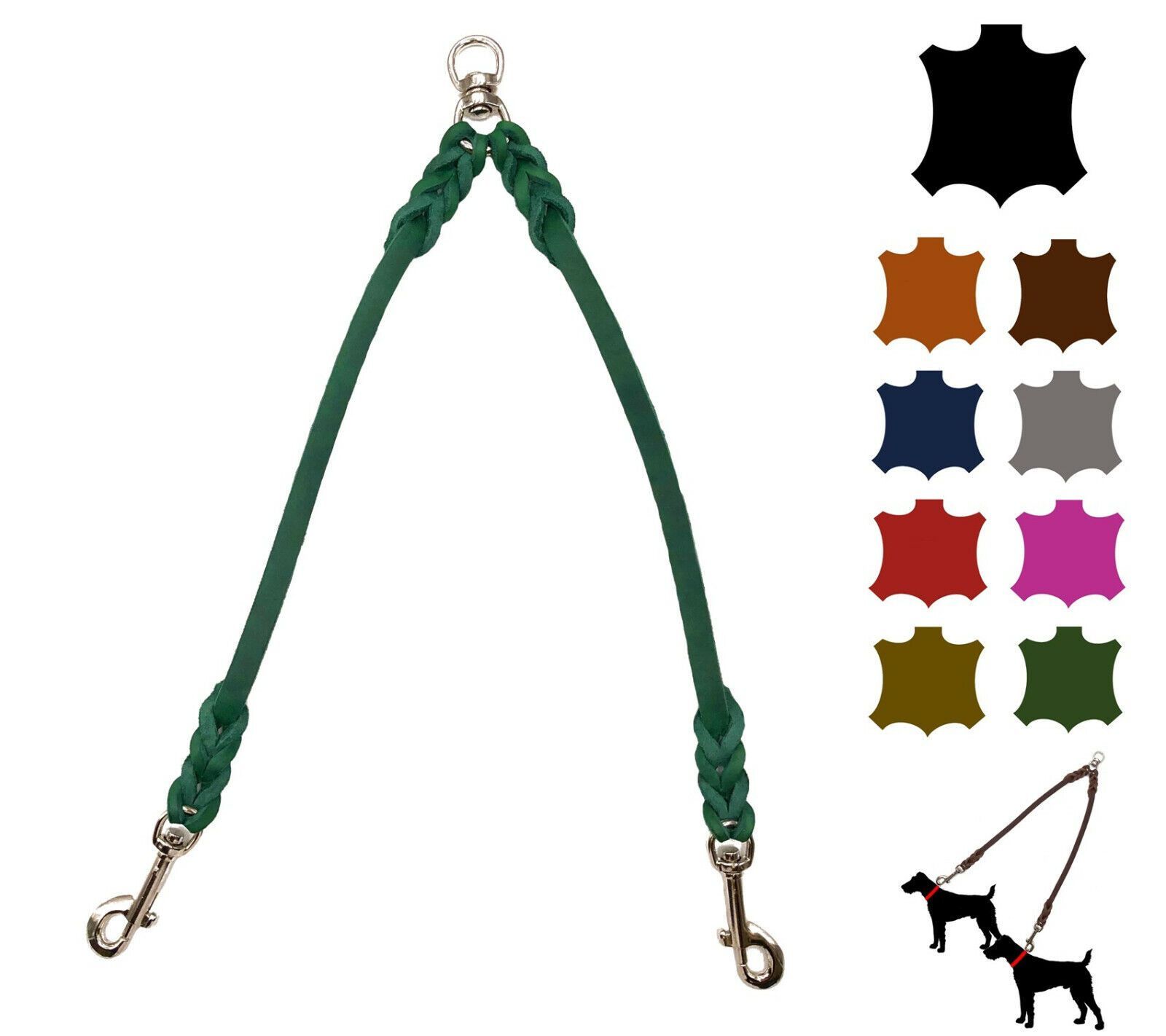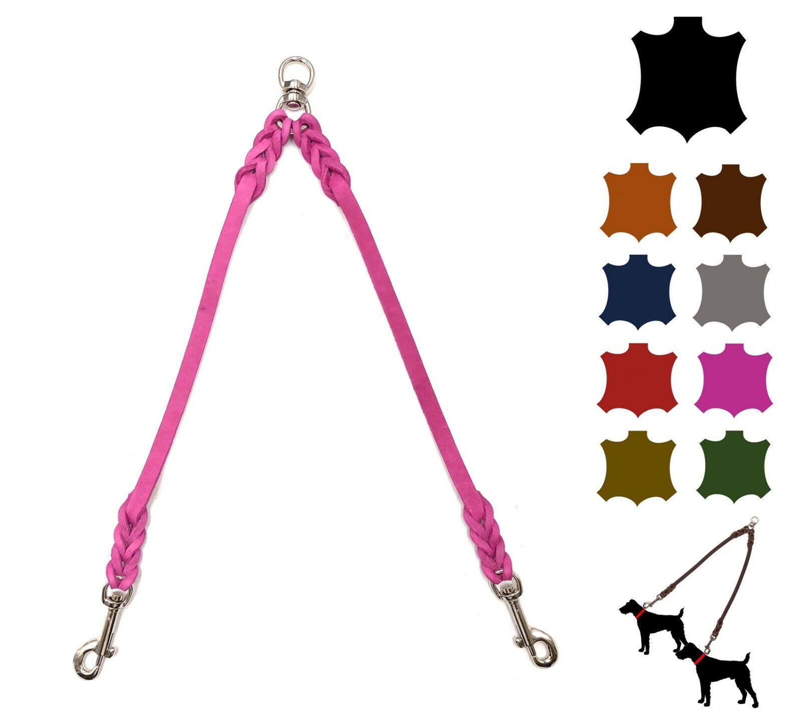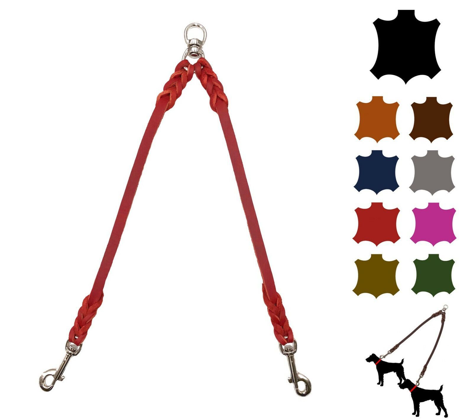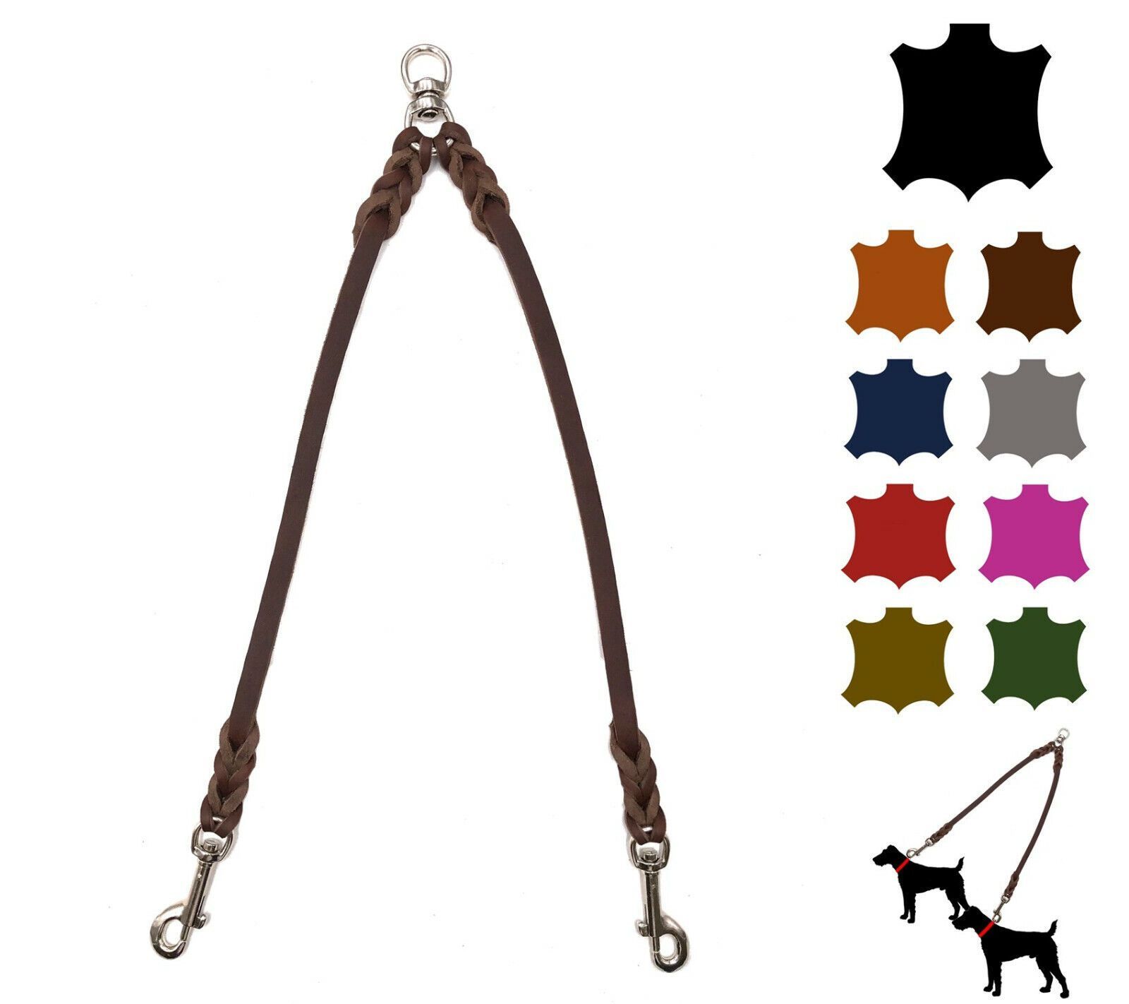 Hundeleine Fettleder Koppelleine 2 Hunde Verbindungsleine kleine & große Hunde