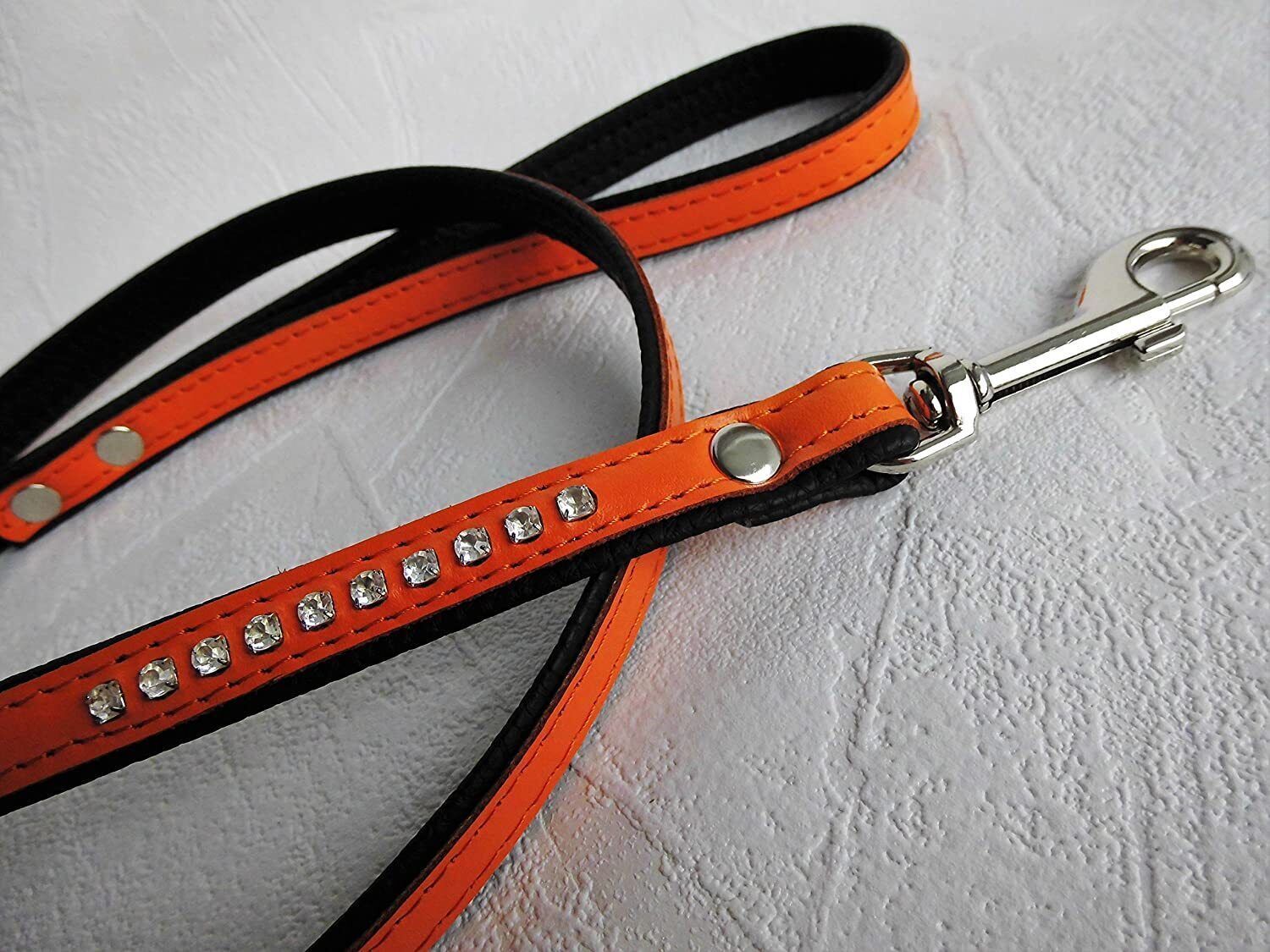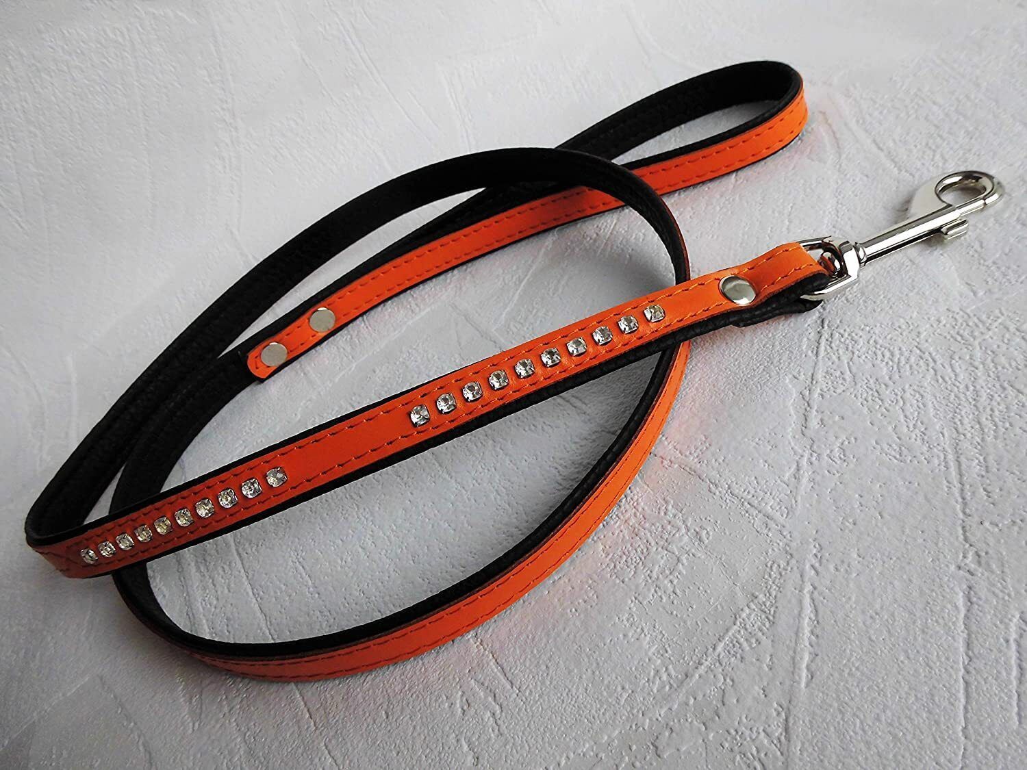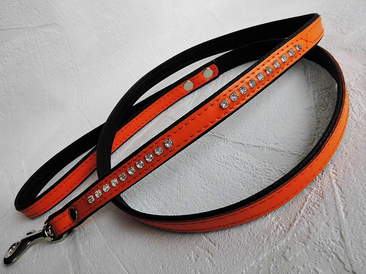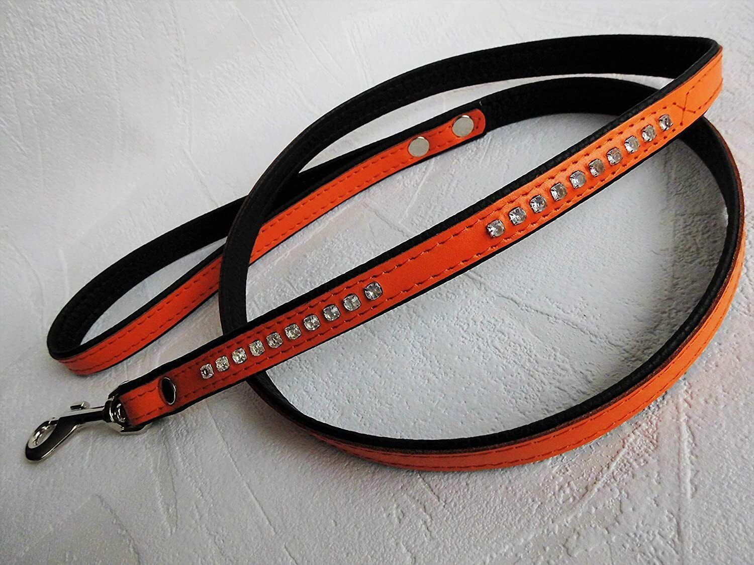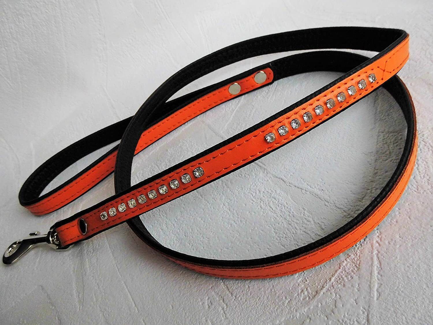 Hundeleine, Leine, 130cm/16mm Echt Leder + Strass, Orange, (447)