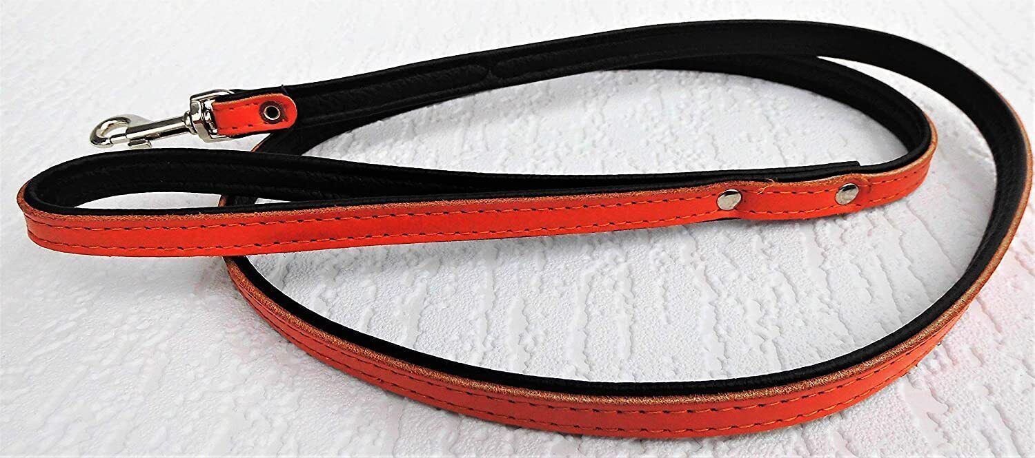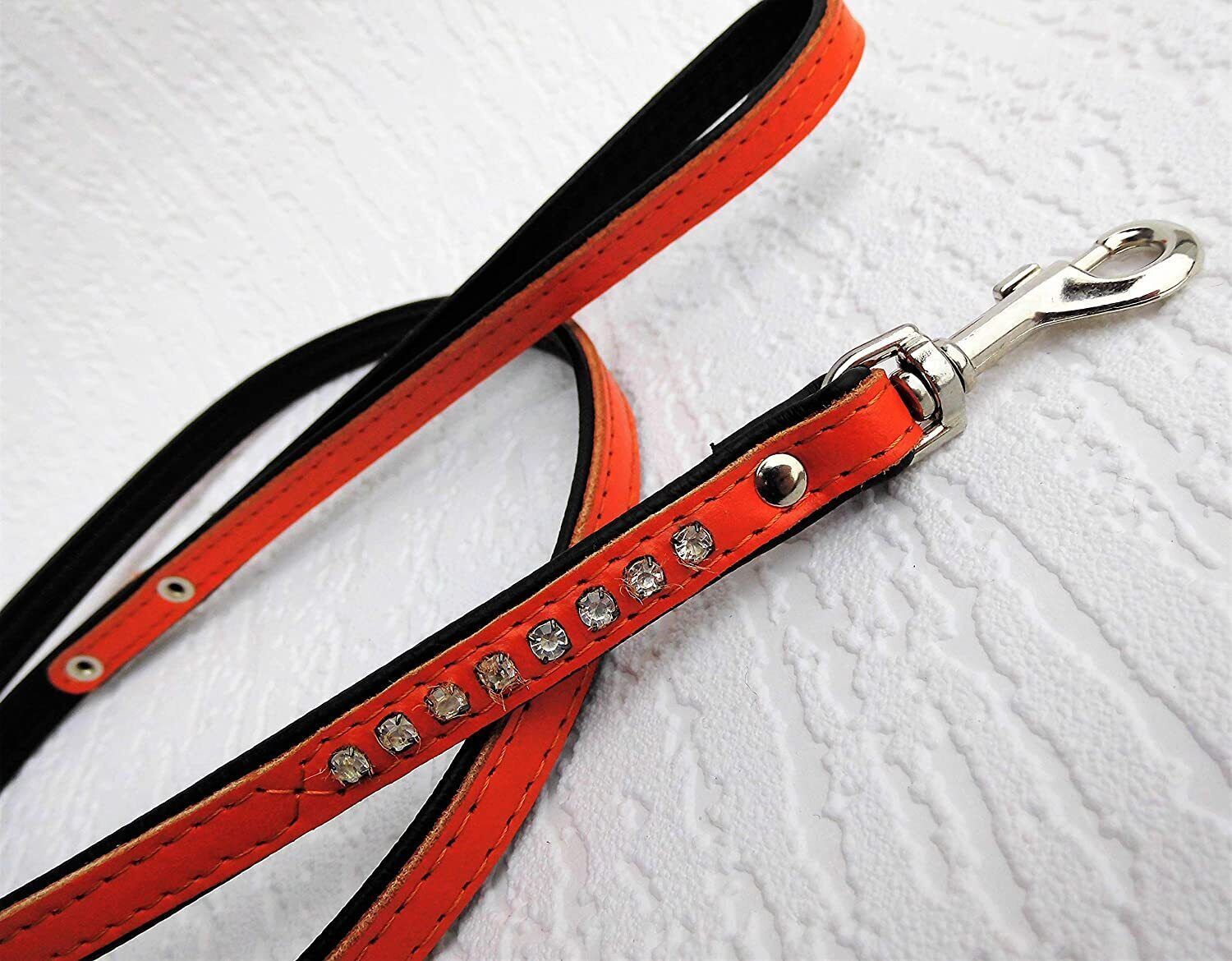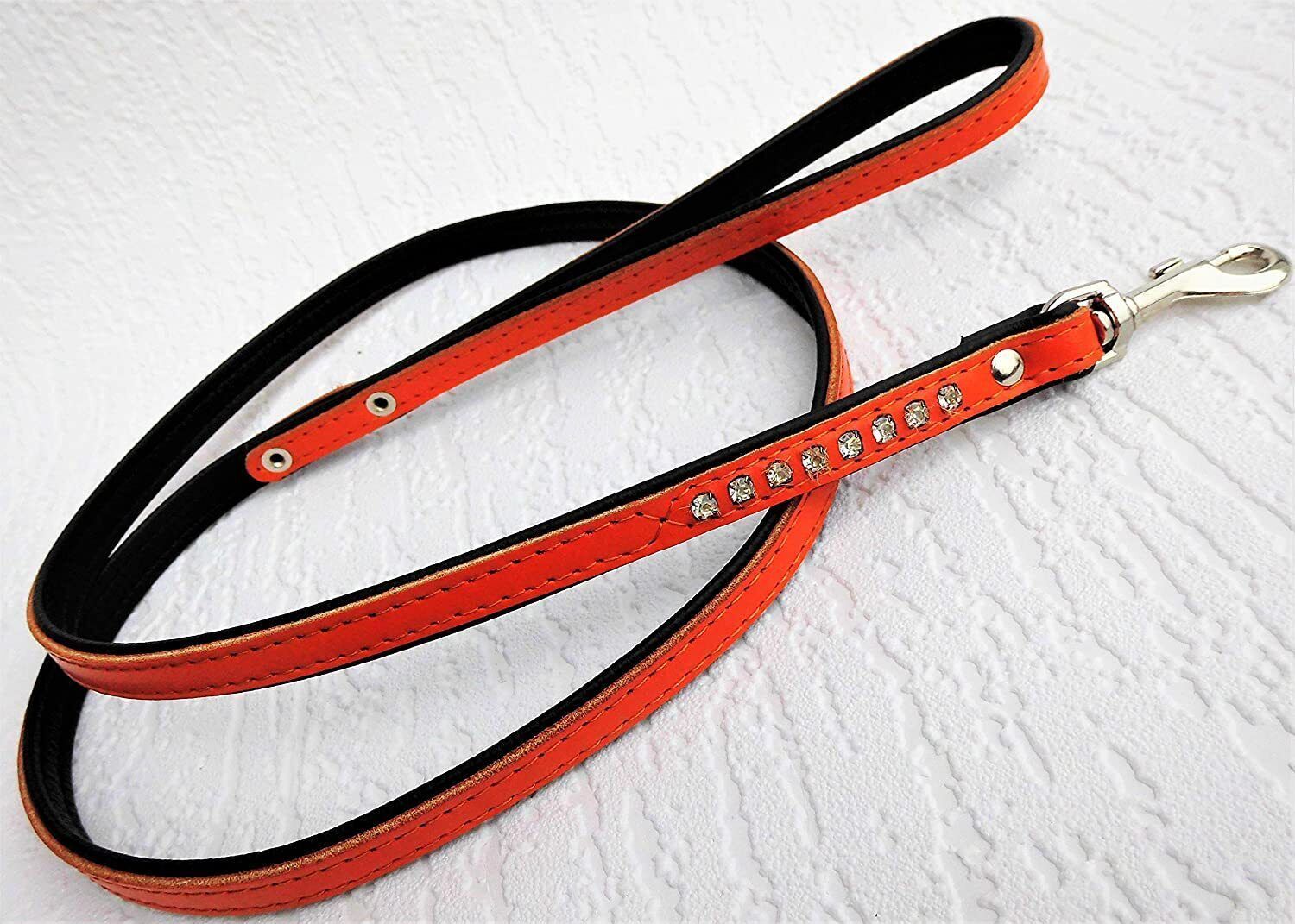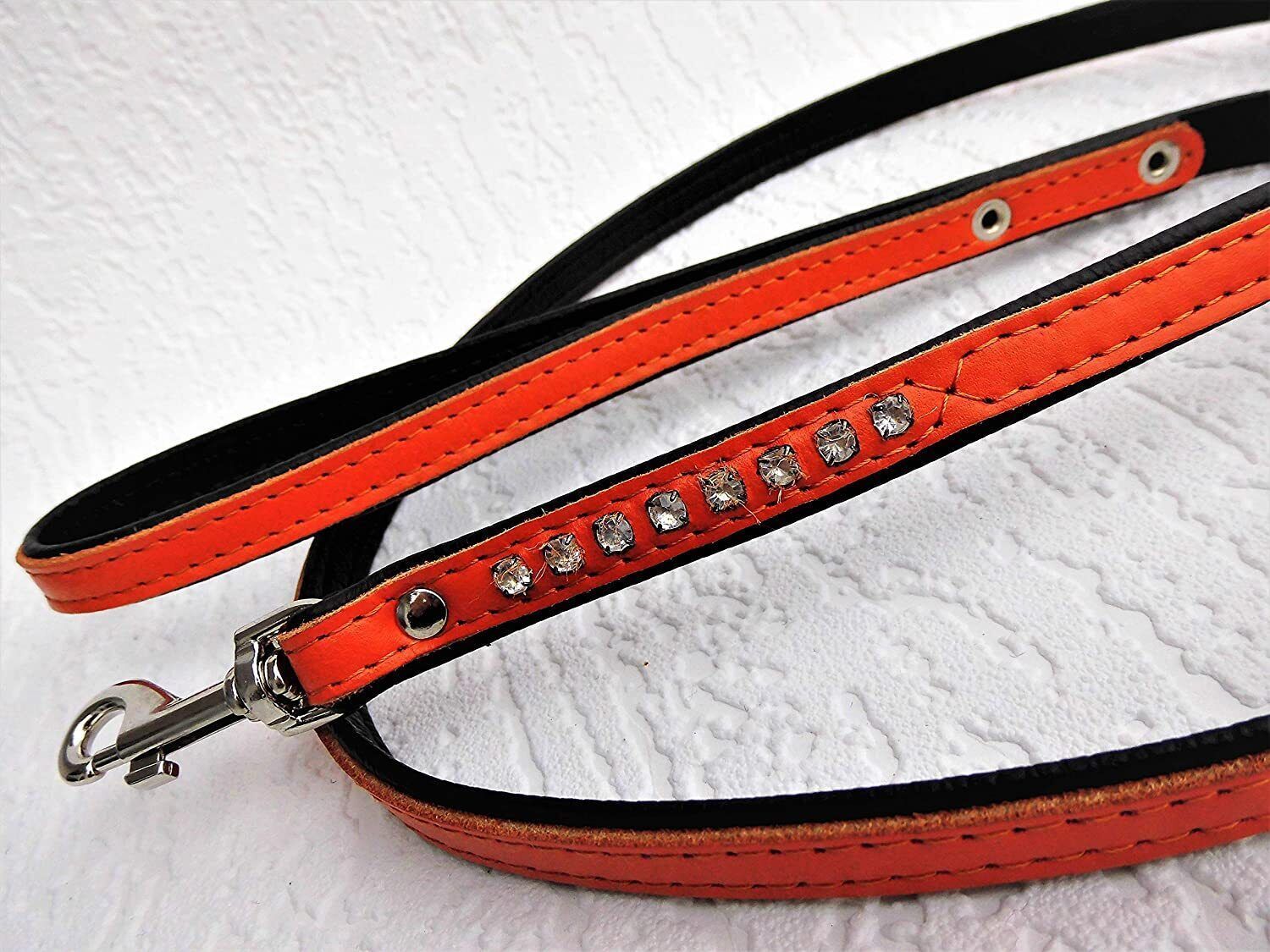 Hundeleine, Leine + Strass, Echt LEDER * 130cm/14mm, ORANGE
