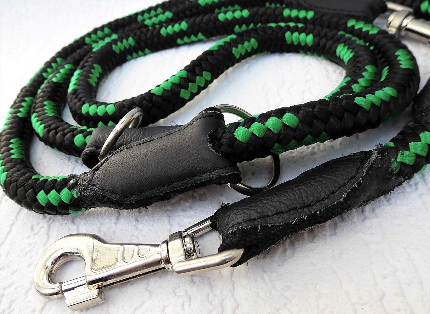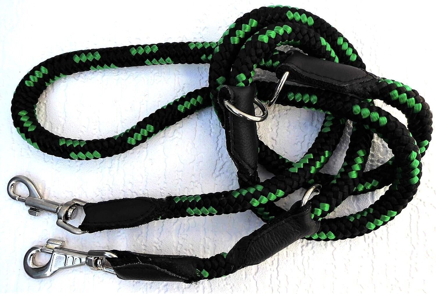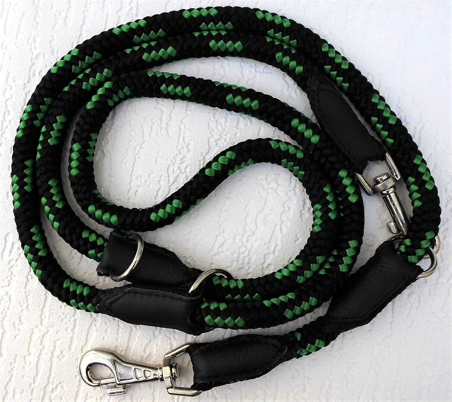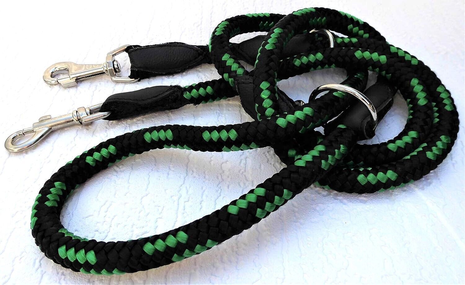 **** Führleine aus Flechtschnur 205cm 14 mm** verstellbare** ***Schwarz - GRÜN*** ***Maße: Gesamtlänge : 205 cm Breit (Seilstärke) : 14 mm (Durchmesser) ***Material - aus Poypropylen, sehr robust - Metallteile vernickelt - mehrfach verstellbar - Hergestellt in PL *** geeignet für sehr starke größere