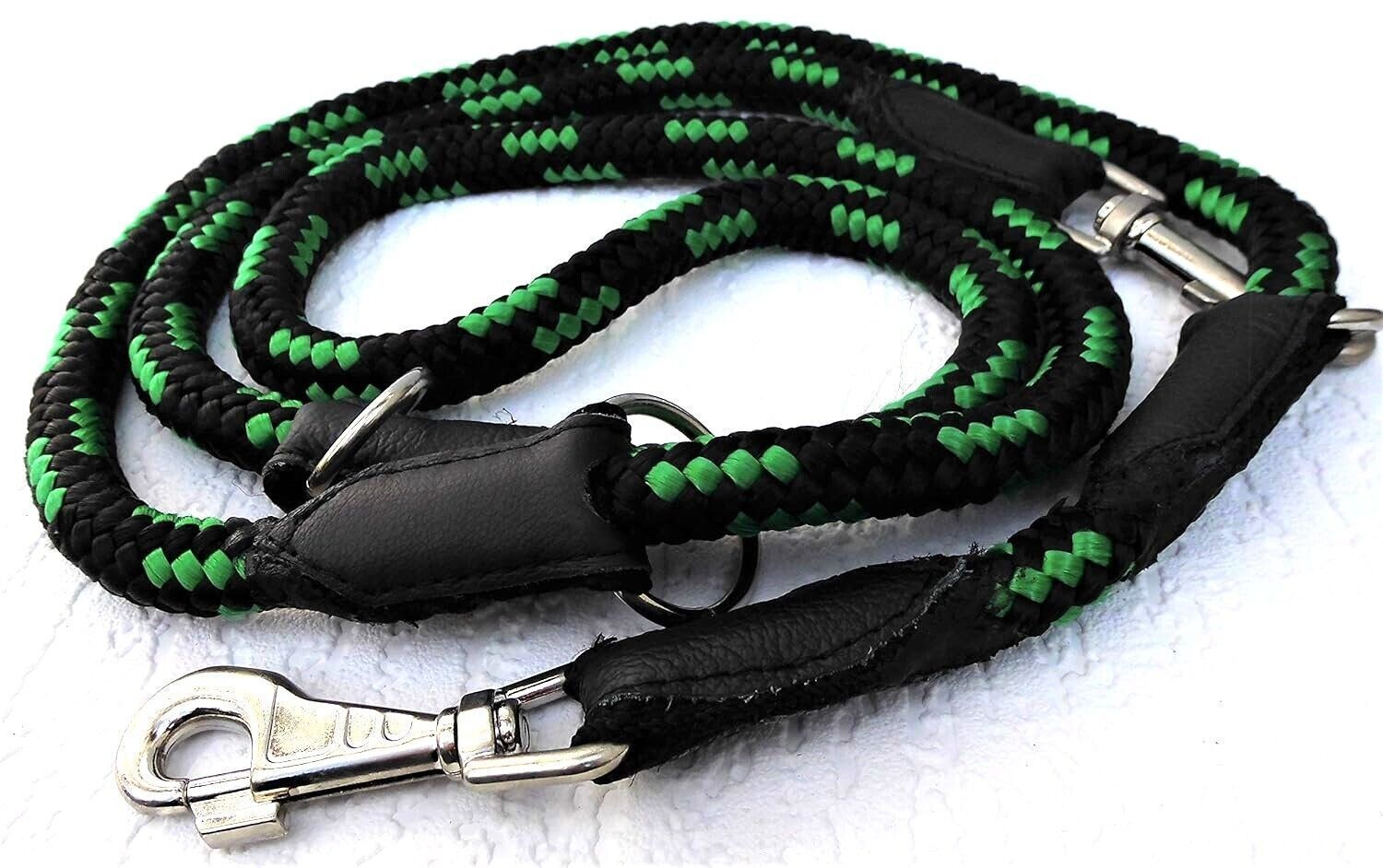 Hundeleine, Runde Leine, 205cm/14mm, Flechtschnur + Verstellbar * schwarz-GRÜN
