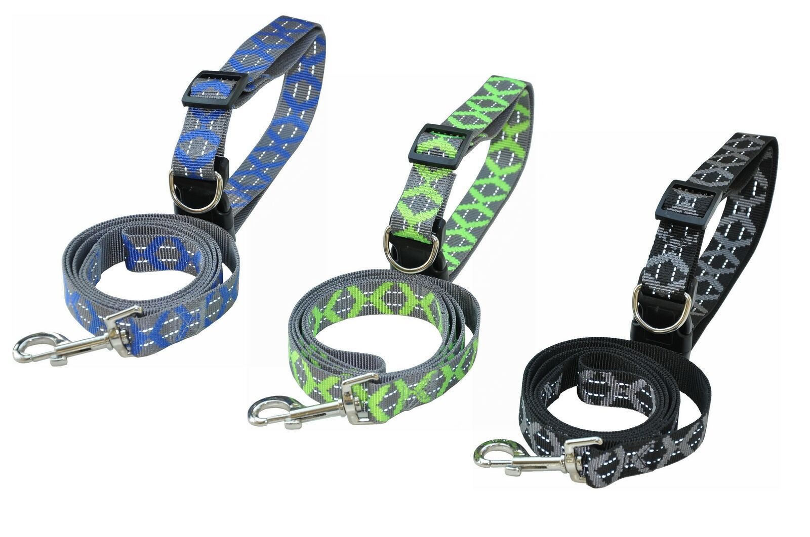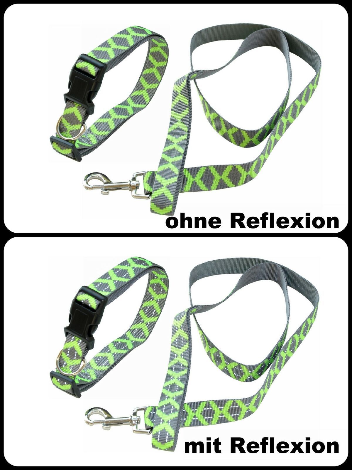 Nanook Hundeleinen Set Hundehalsband + Leine Nylon reflektierend blau grün grau nanook