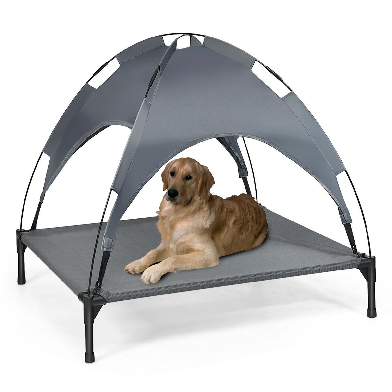 Hundeliege mit Sonnendach 105x86cm Hundebett Schlafplatz Outdoorliege Hundematte