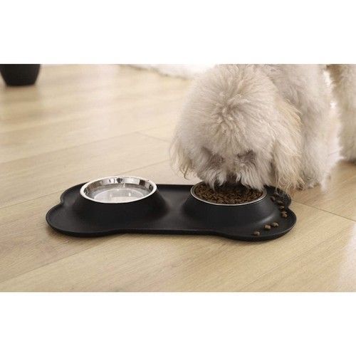 Hundenapf Doppelnapf Katzennapf Futternapf Wassernapf Edelstahl Silikon 2×450 ml