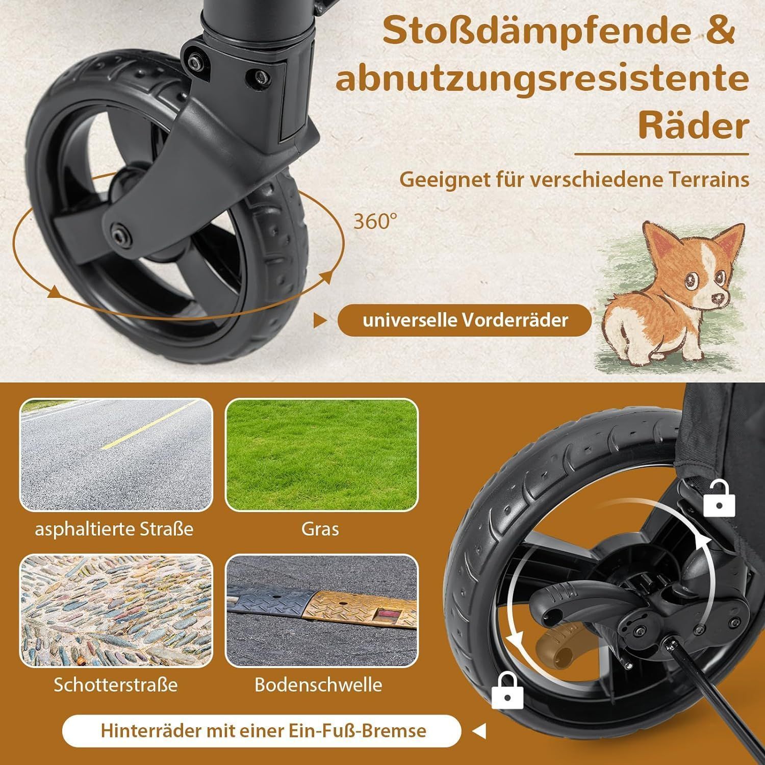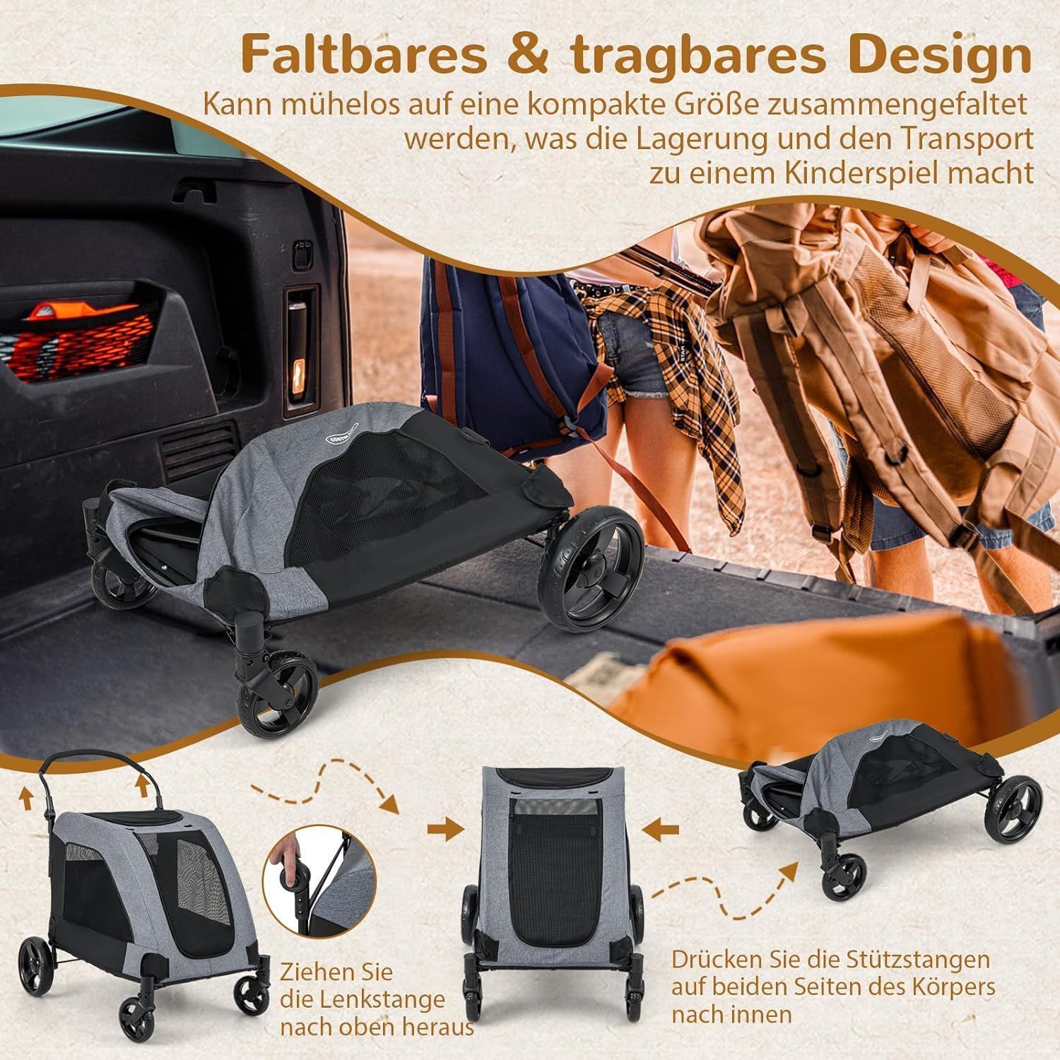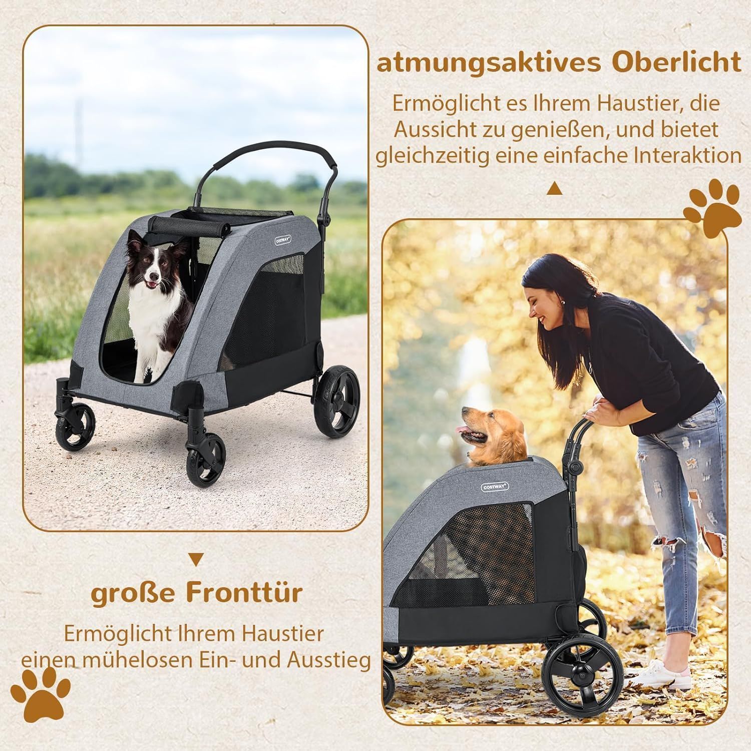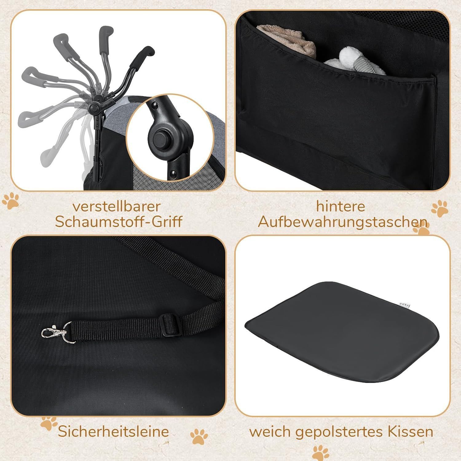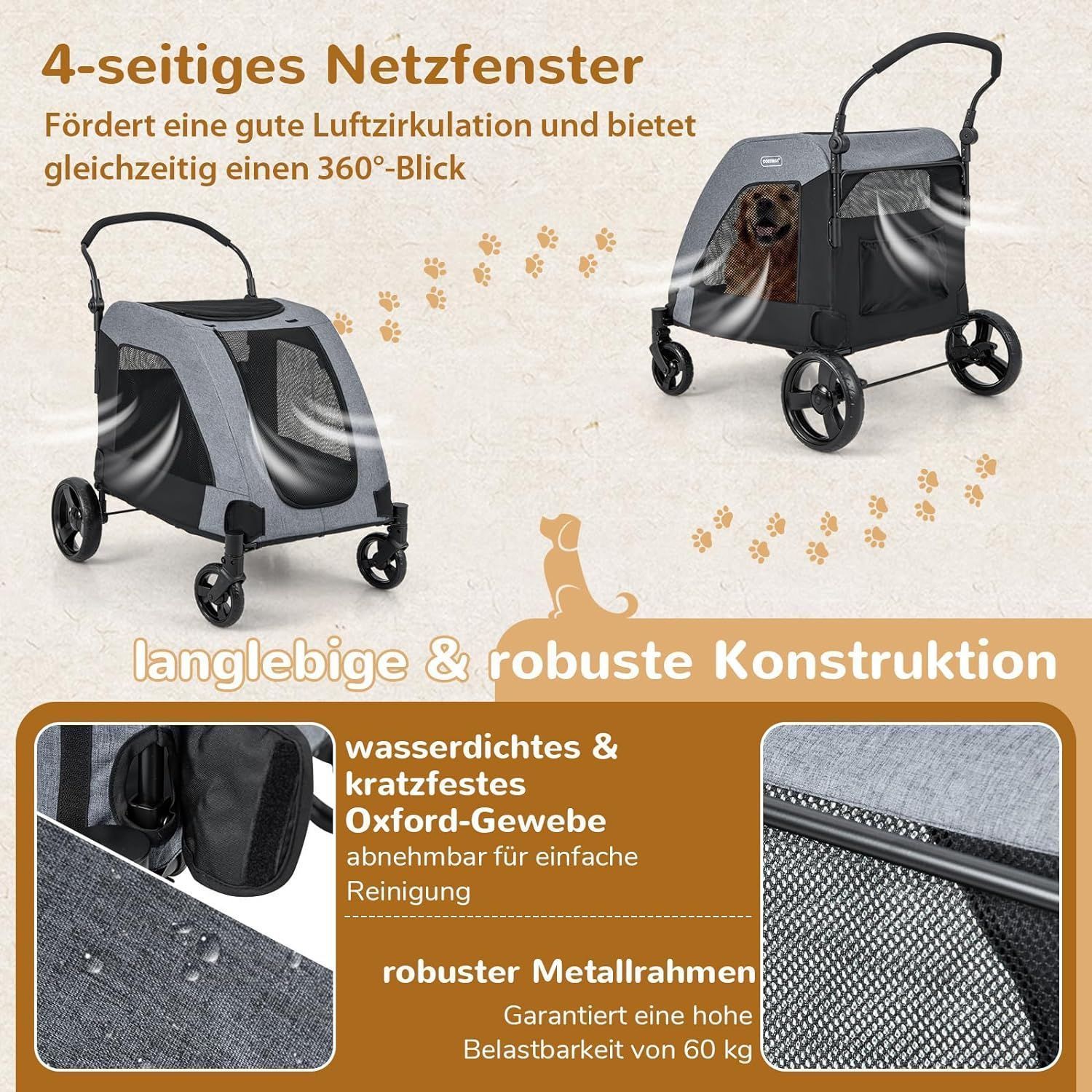 Hundewagen, Hundebuggy klappbar, bis 60 kg, Haustierwagen mit Vordertür & Kissen