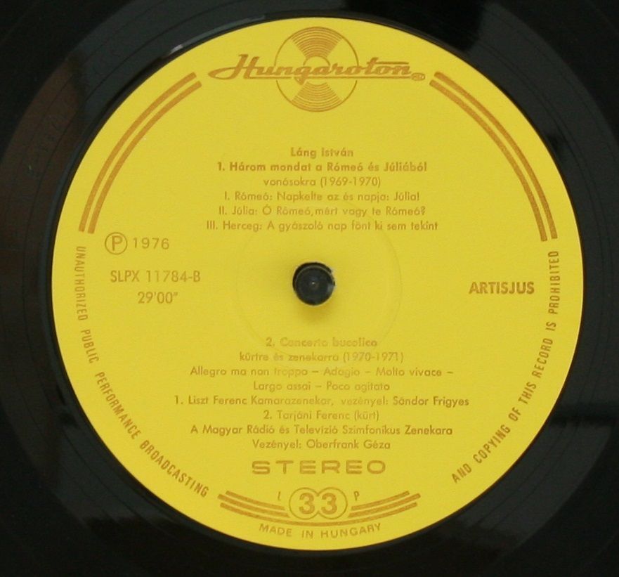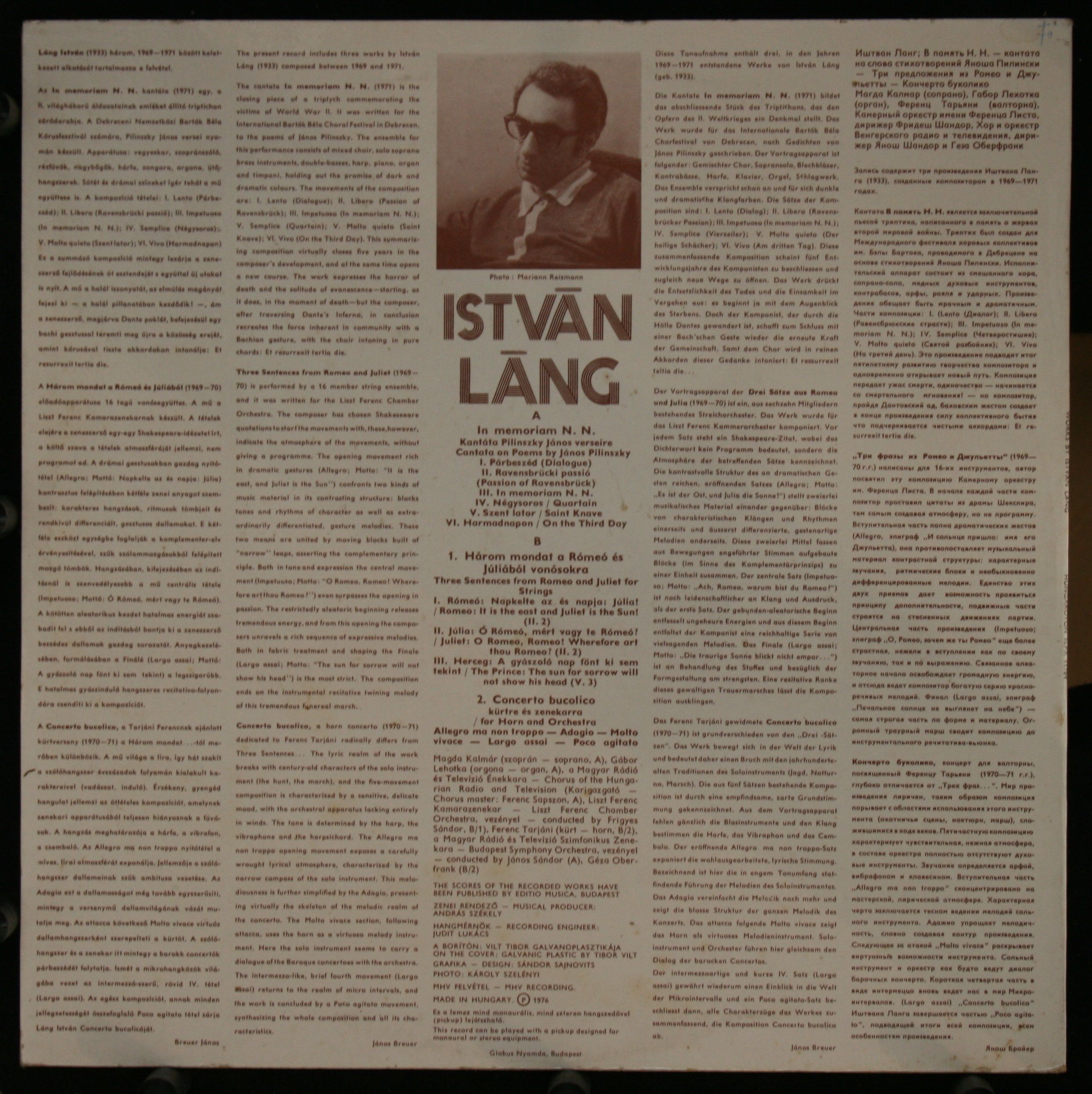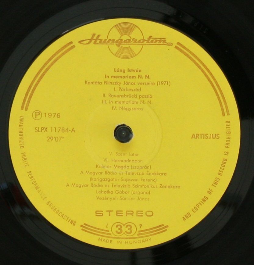 Hungaroton SLPX 11784 - Lang István - In Memoriam N.N. On Poems By János Pilin