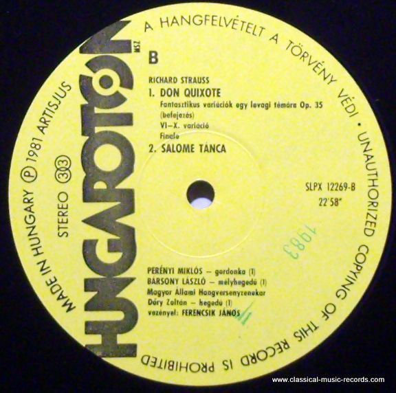 Hungaroton SLPX 12269 - Richard Strauss, Miklós Perényi, László Bársony, Hu