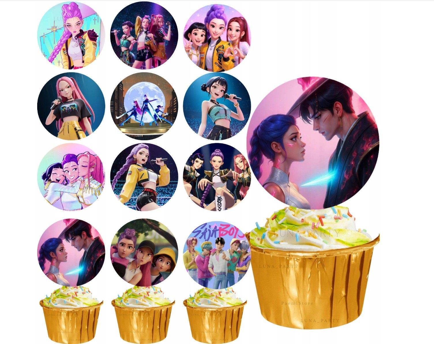 Huntr/x 12 Muffins Essbar 12 Muffin Zuckermasse Tortenbild Tortenaufleger K-Pop