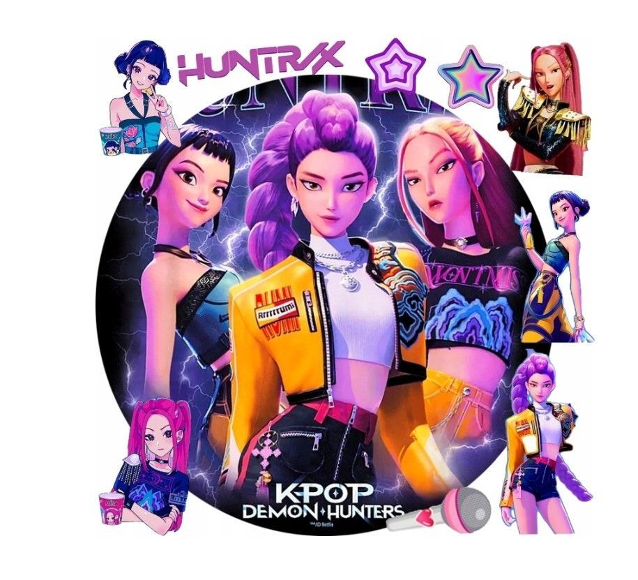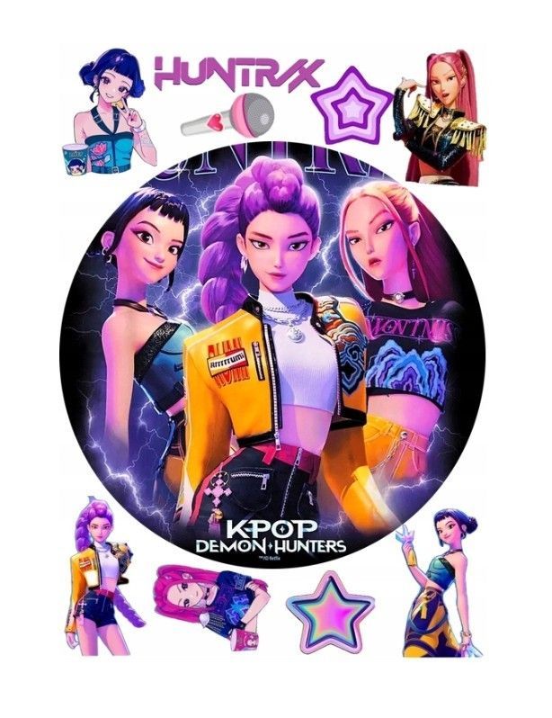 Huntr/x Essbar Dämonenjägerin Zuckermasse Tortenbild Tortenaufleger + 4 Muffin f3