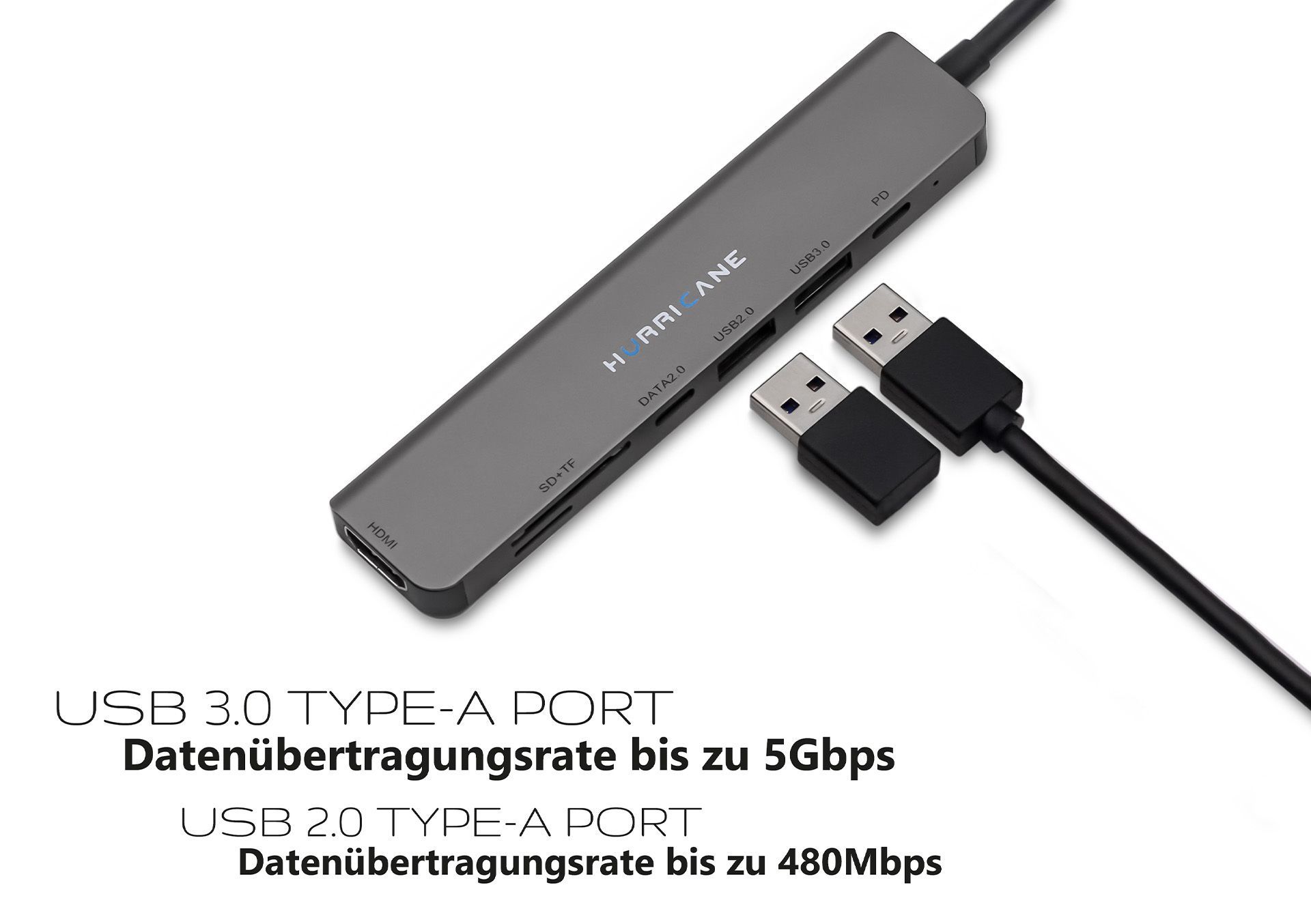 Hurricane C0914 7-in-1 USB Type C HUB Dock 4K HDMI Kartenleser Cardreader für MacB