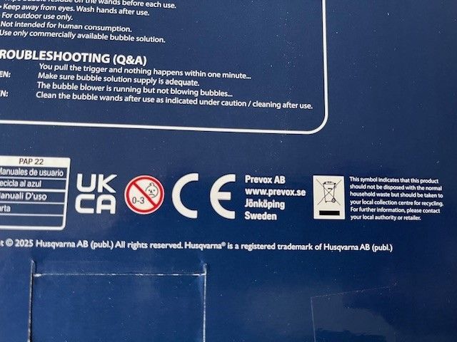Husqvarna Spielzeug Rückentragbares Kinder Blasgerät mit Seifenblasen