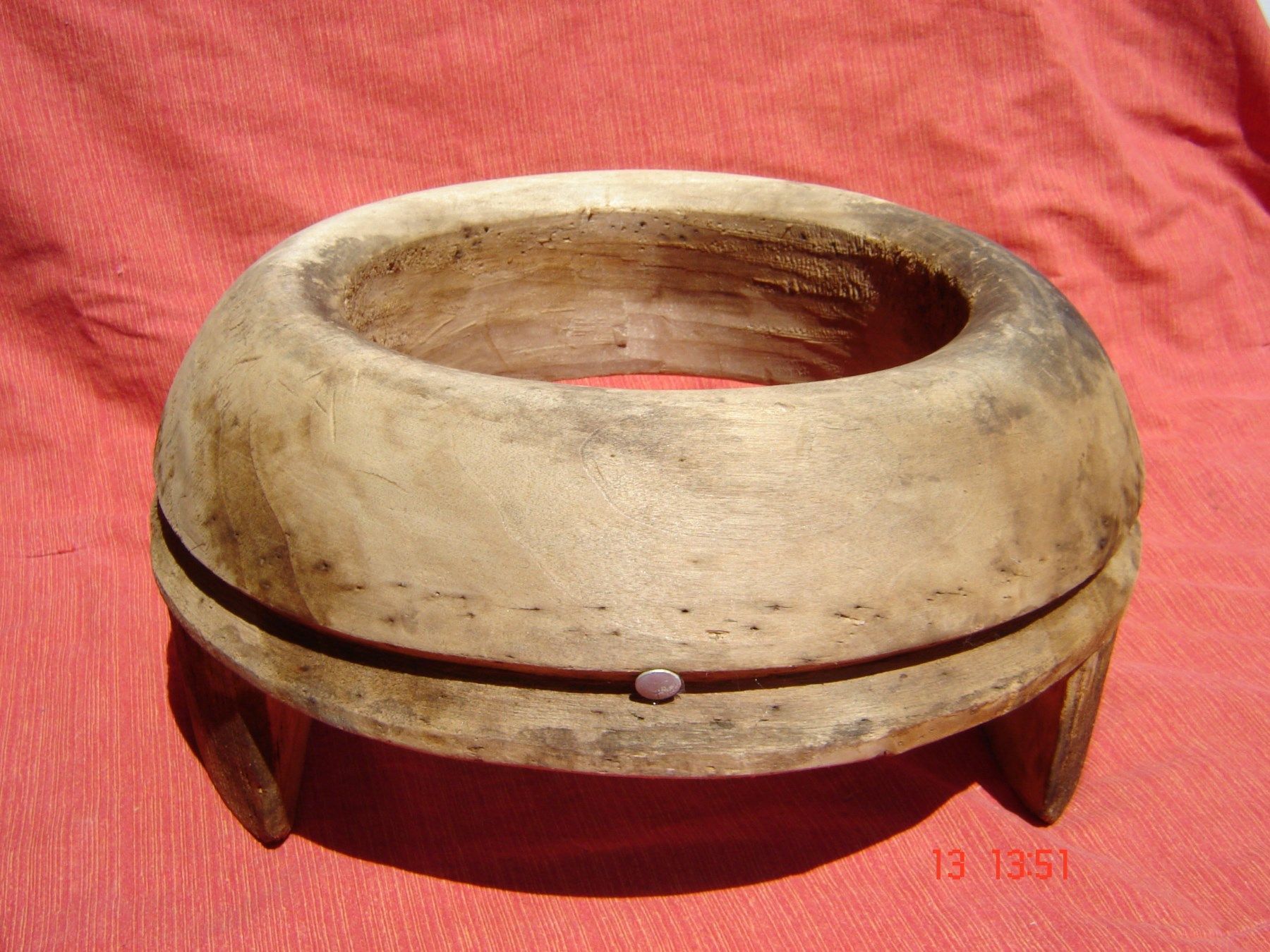 . wir brauchen ein bißchen Platz , alles was doppelt ist, muß raus ich biete hier einen Damenhutrand Matritze mit Füßchen aus Holz wir brauchen ein bißchen Platz , alles was doppelt ist, muß raus Aufschlag bzw Topfhut Holzrand rundum aufgeschlagen viel benützt aber nicht beschädigt , die Oberfläche
