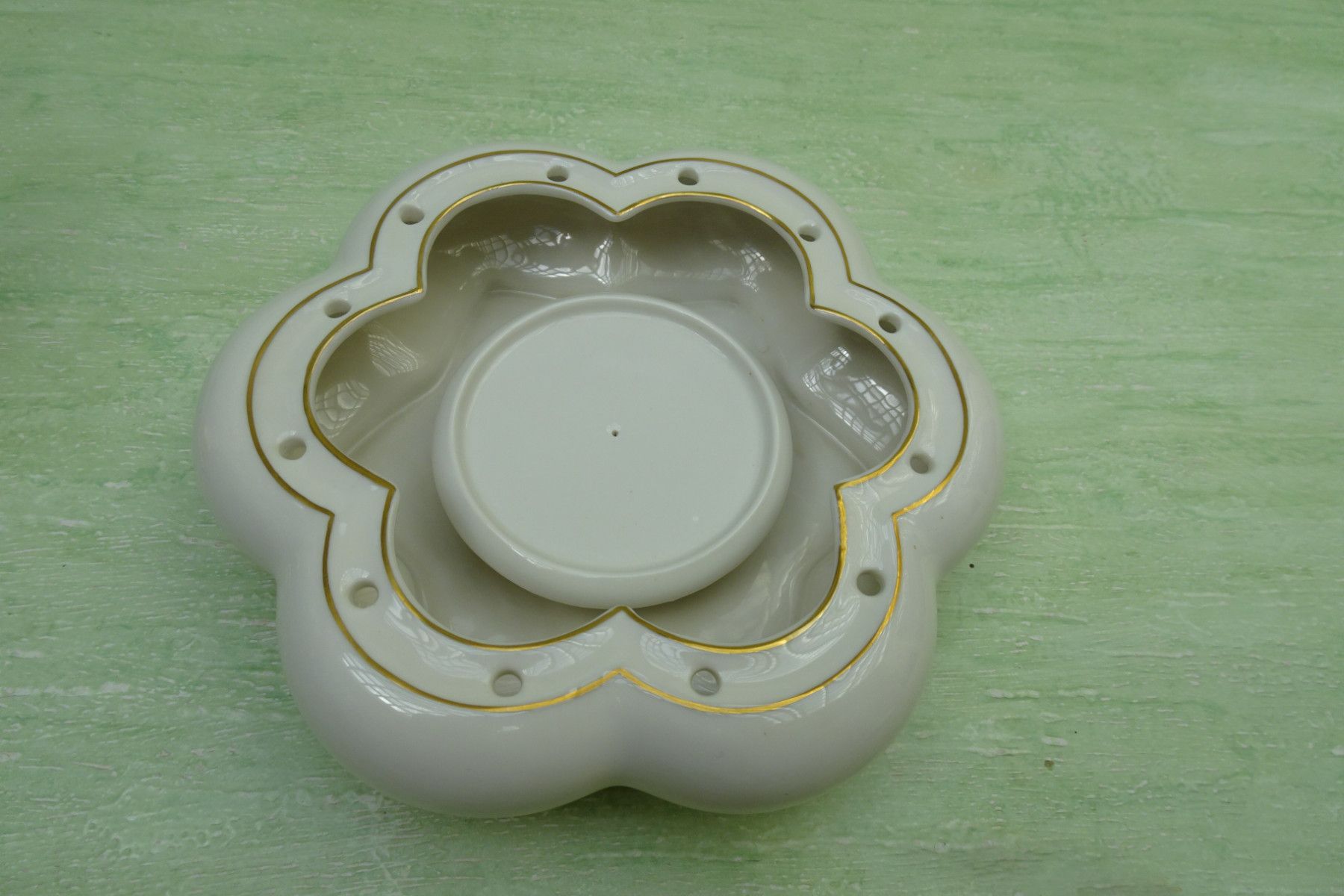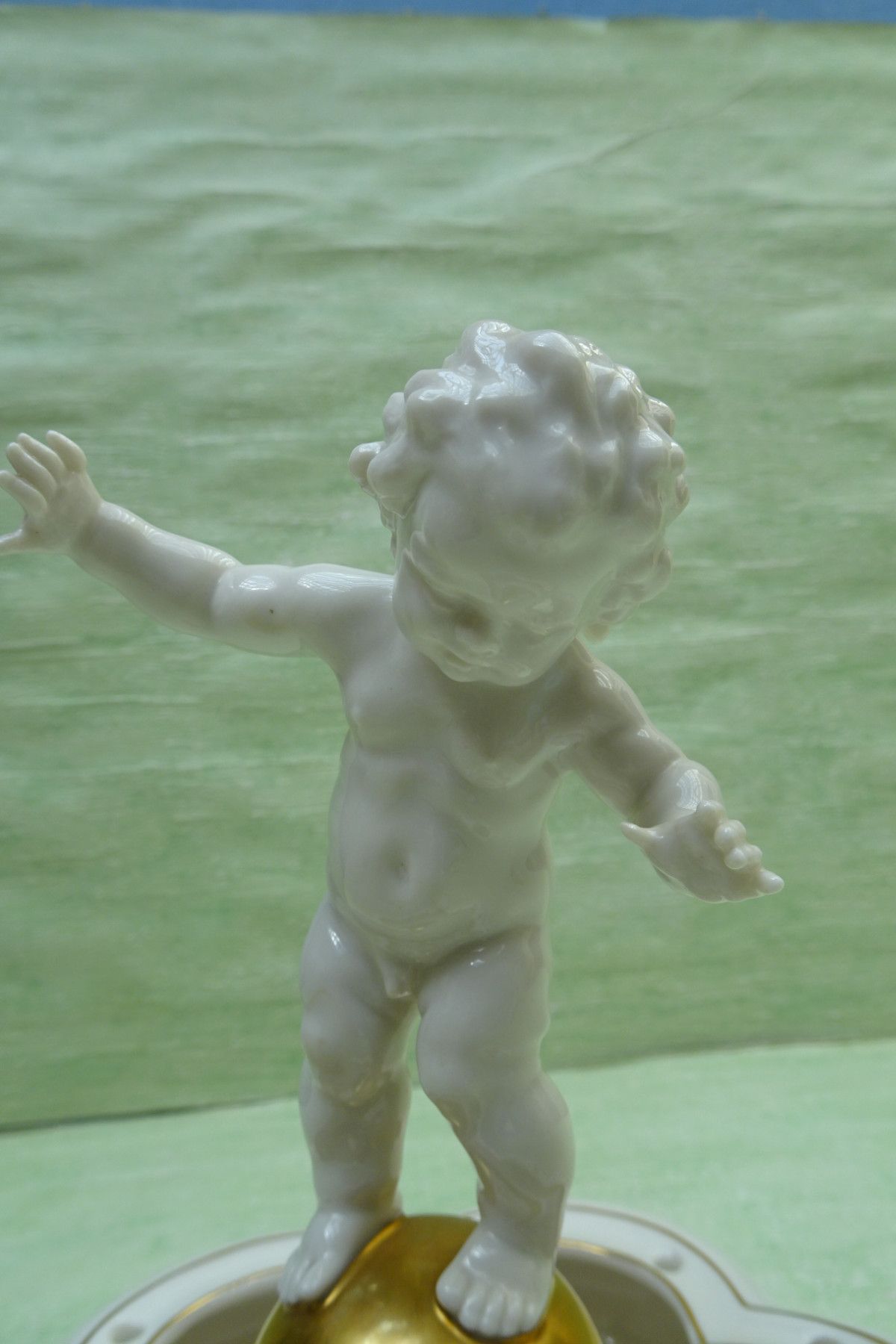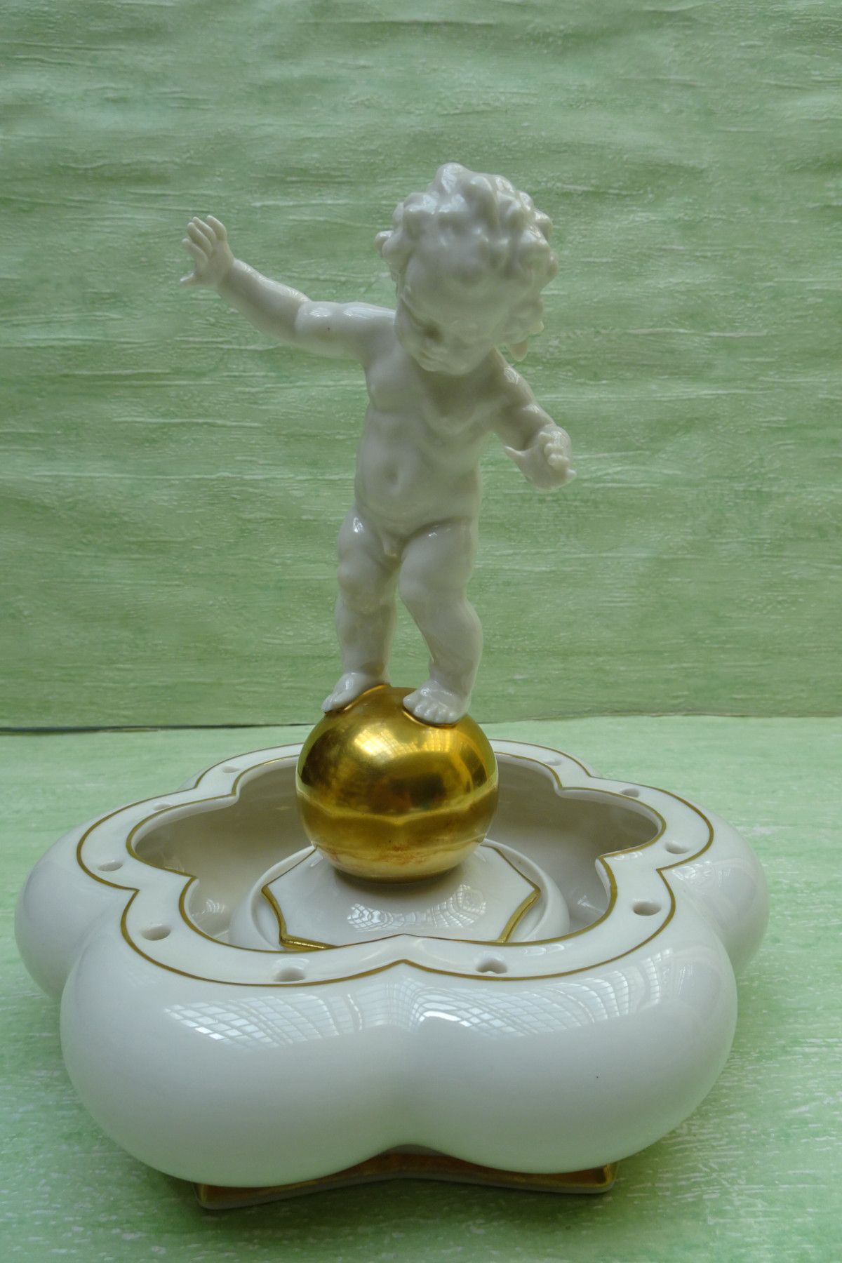 Hutschenreuther Selb Kunst US-Zone Tutter Blumensteckschale Putte Engel Goldkugel