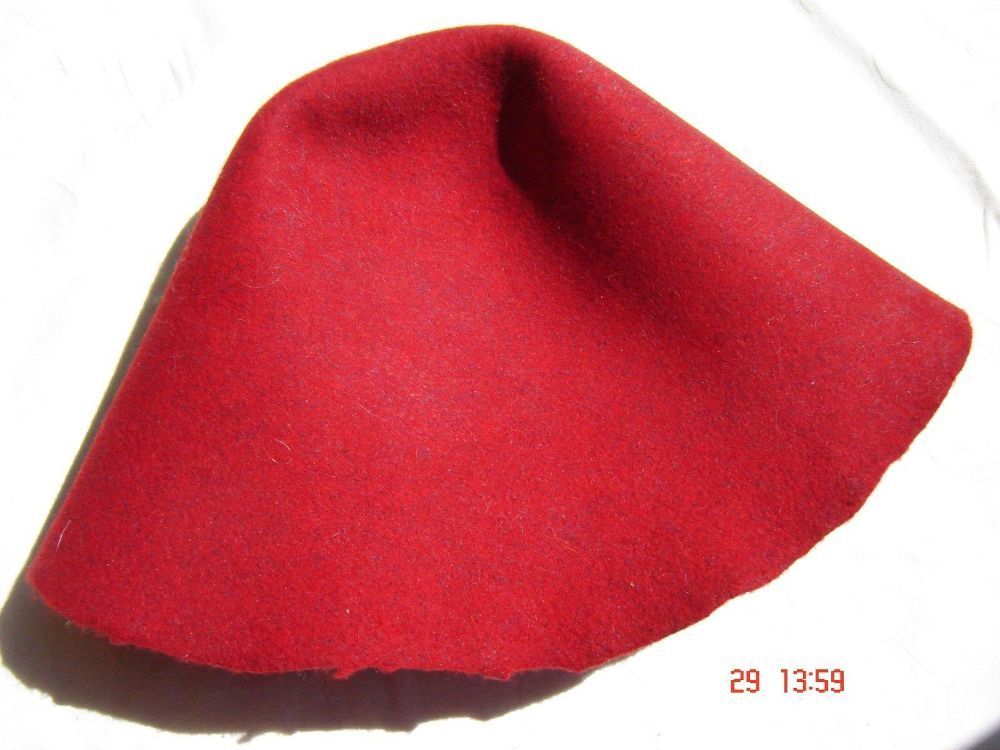 Hutstumpen Modist Zubehör Stumpen feste Wolle rot mit blau eingearbeitet 30-5