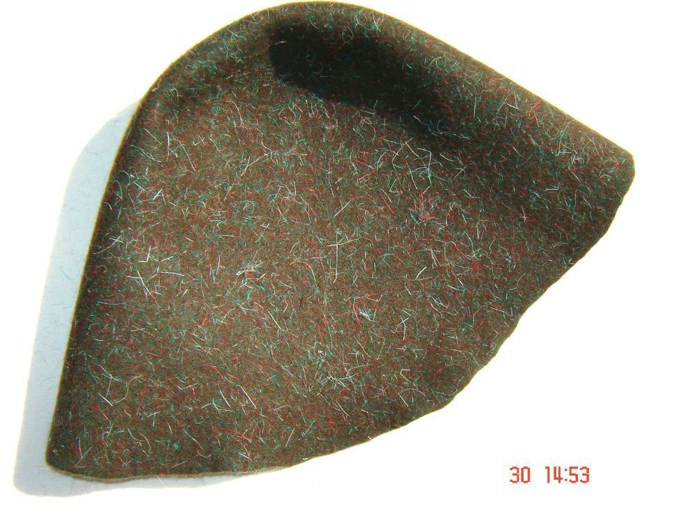 Hutstumpen Wolle Filz Modist Zubehör Stumpen oliv mit bunten Haaren 1-19