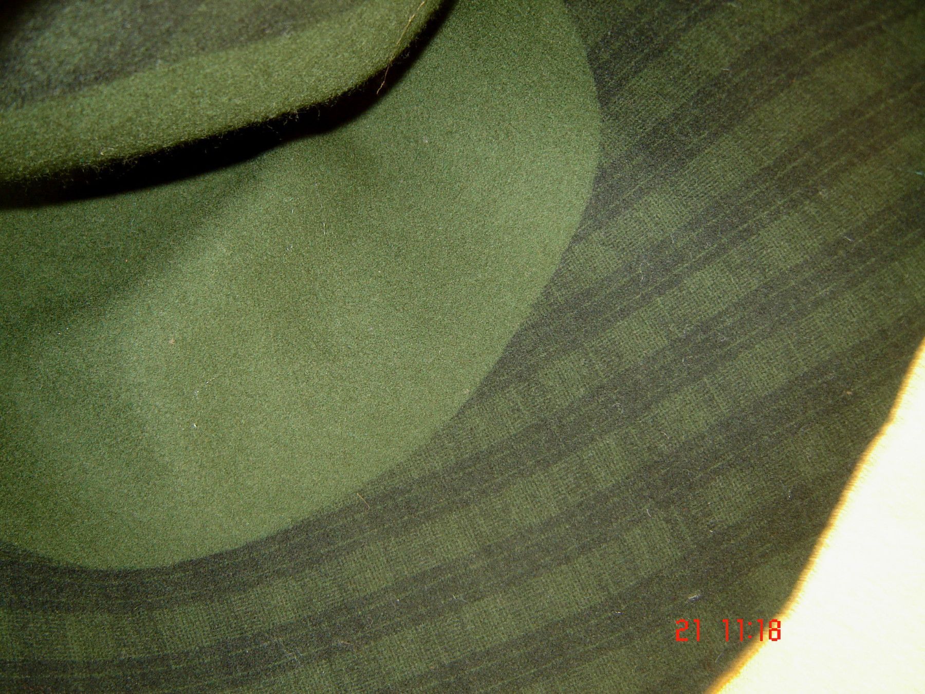 Hutstumpen Wolle Stumpen bedruckt dunkel oliv schwarz Karo 90 gr Ü 50 Rd 84cm Stu758