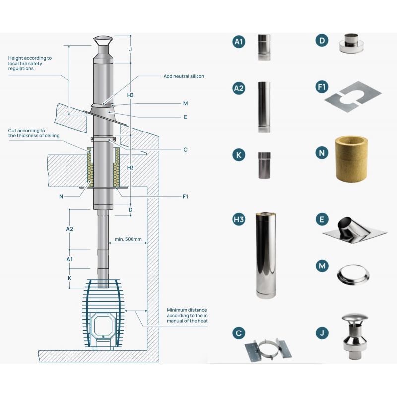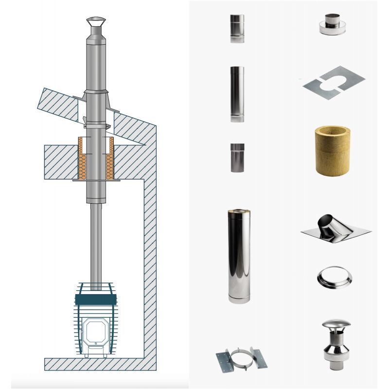 HUUM Schornstein Set für holzbefeuerte Saunaöfen Kamin-Set für Sauna Holzofen