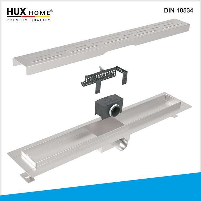 Komplettset Ablaufrinne Abfluss Duschablauf Edelstahl Bodenablauf - Maximale Sicherheit & Funktionalität für Ihr Badezimmer Die HUX HOME® PREMIUM Duschrinne mit rechteckiger Abdeckung wurde für die flexible Montage frei im Duschbereich entwickelt. Hochwertiger V2A-Edelstahl sorgt für maximal