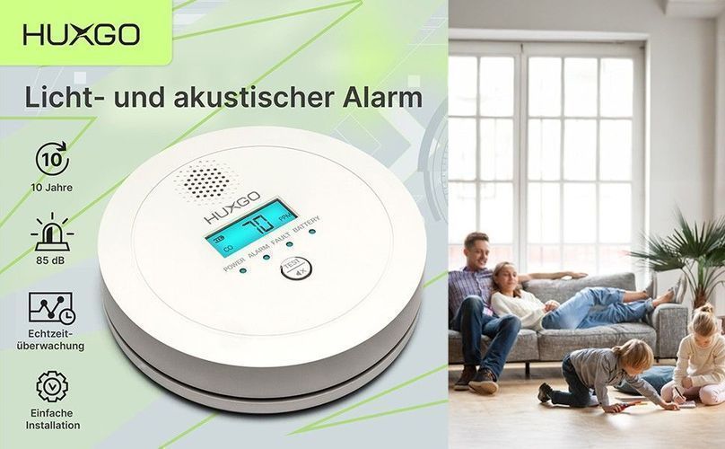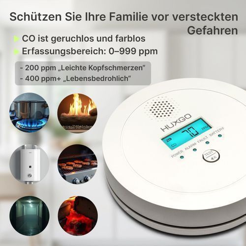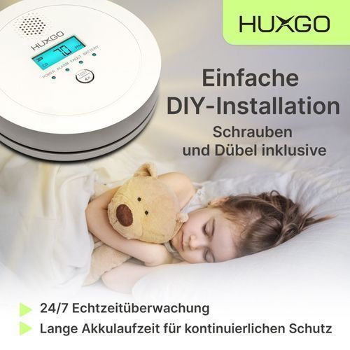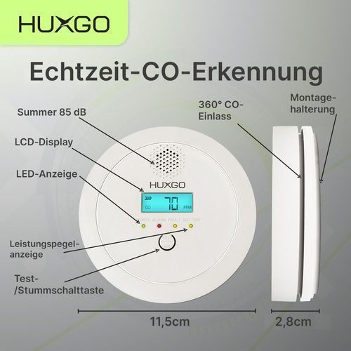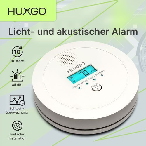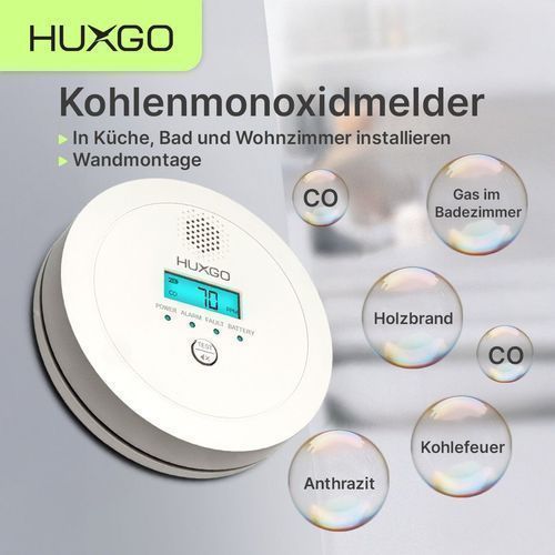 HUXGO HUXGO® Kohlenmonoxid Melder HXAC03 |Batteriebetriebener CO-Alarm für Zuhause