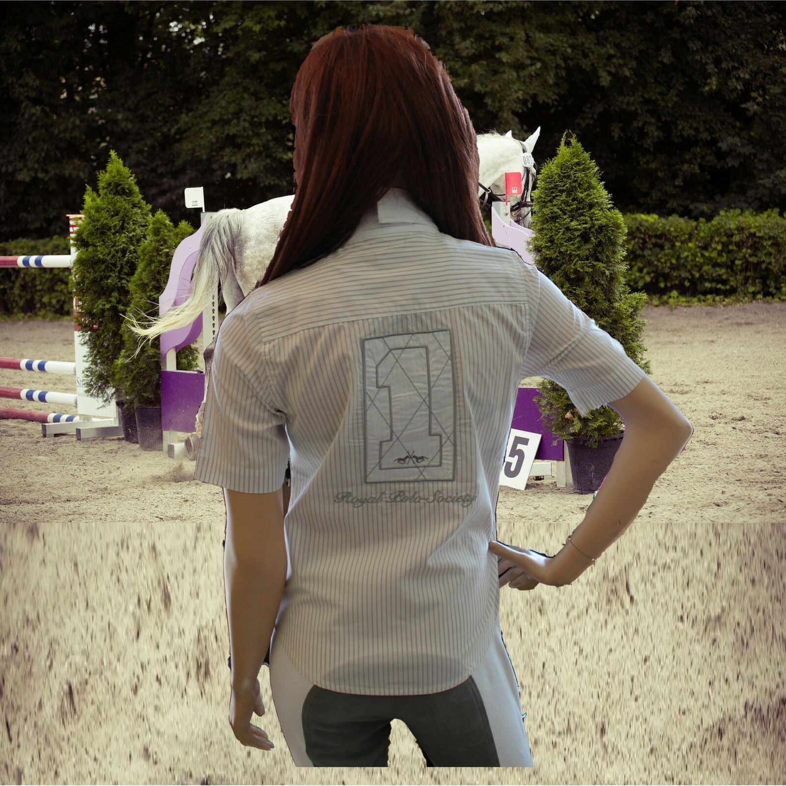 HV Polo Damen Turnier Bluse Roveda, Beige Streifen, Turnierbekleidung