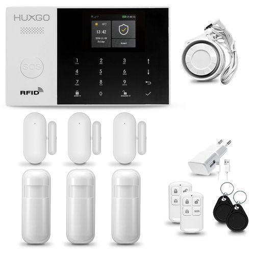 HUXGO HXA005 2G Alarmanlage fürs Haus mit 3x Bewegungssensor, 3x Fensteralarm, App. TUYA
