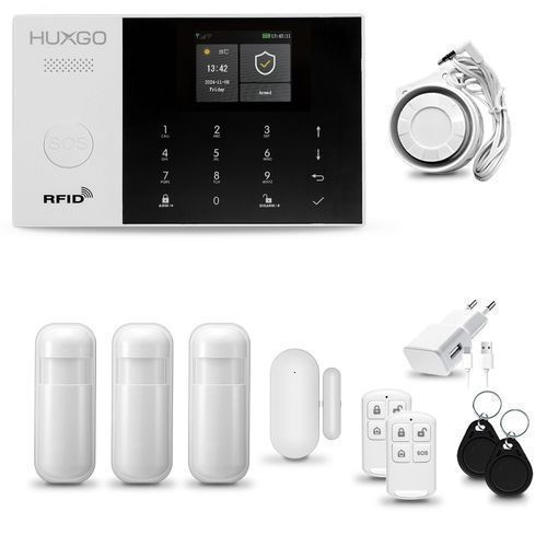 HUXGO HXA005 Alarmanlage Haus WiFi + GSM 4G LTE mit Sirene, 3x Bewegungsmelder, Tuya Smart